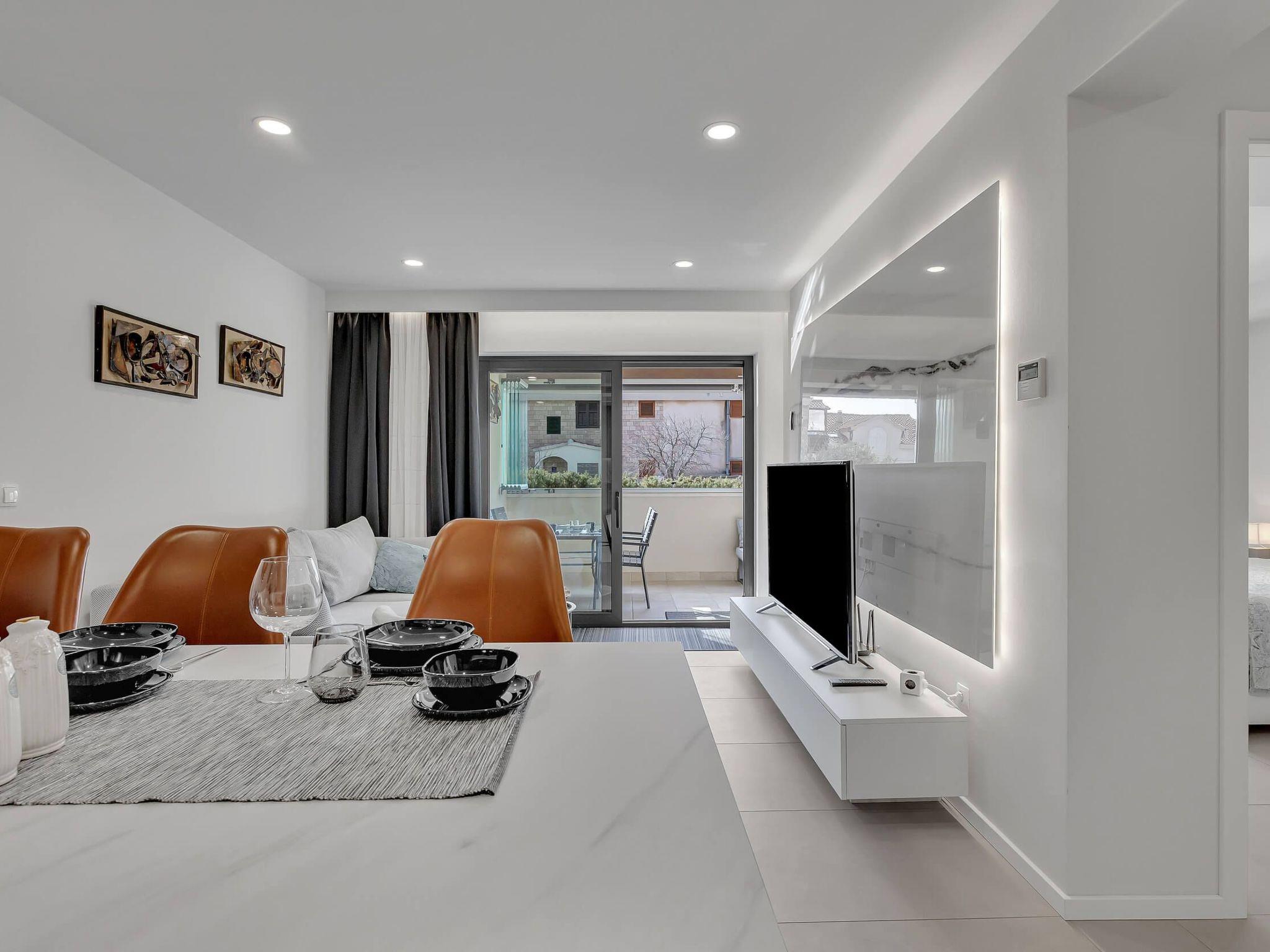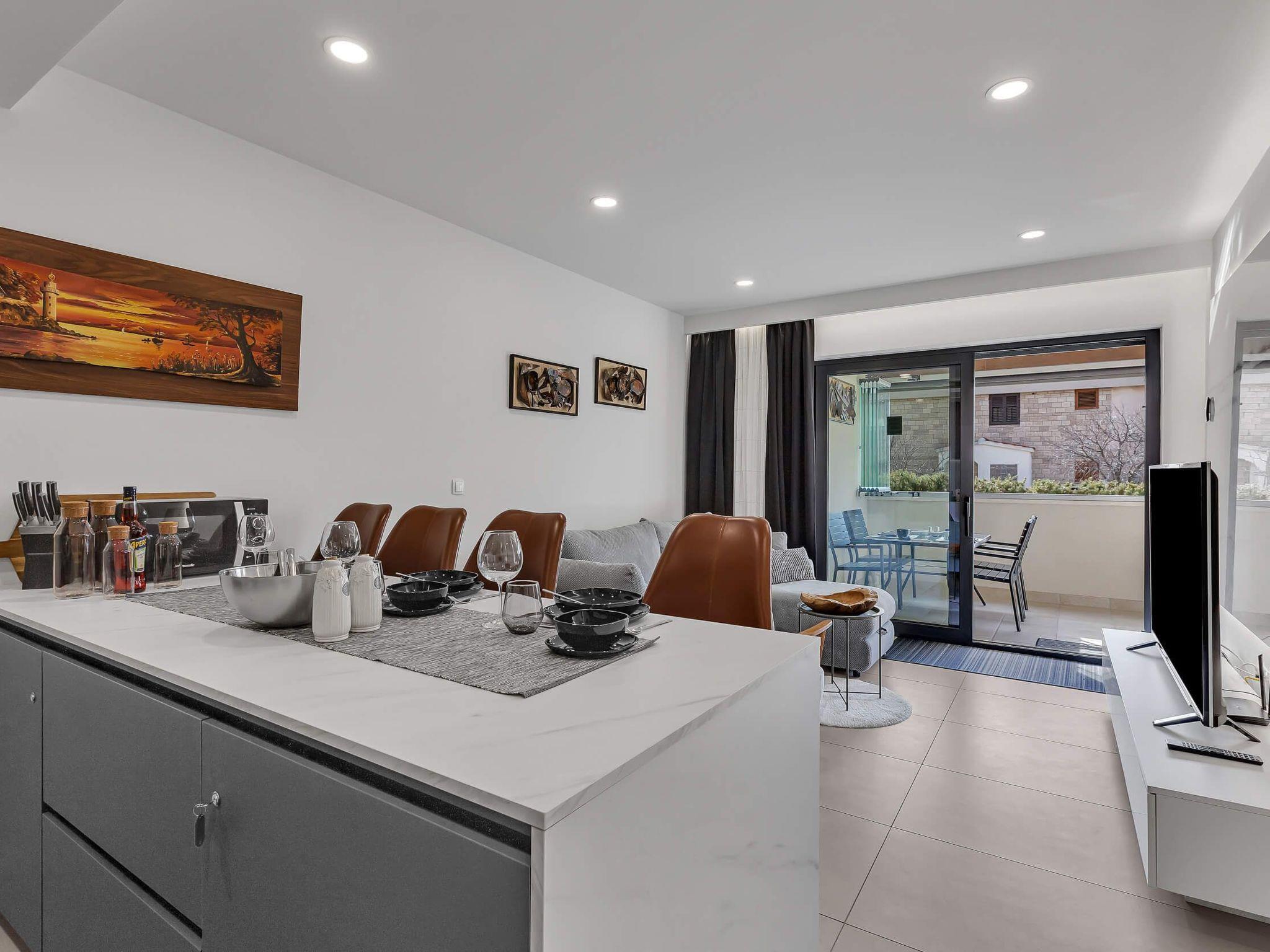 Venturing outside, the expansive terrace emerges as the heart of this coastal abode. It's a versatile space that invites you to unwind, dine alfresco, or simply enjoy the tranquil atmosphere of Puharici. The terrace acts as a private oasis where you can soak up the vibrant energy of Dalmatia, making every moment of your stay memorable.