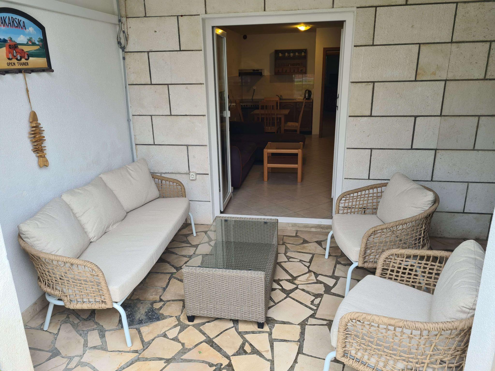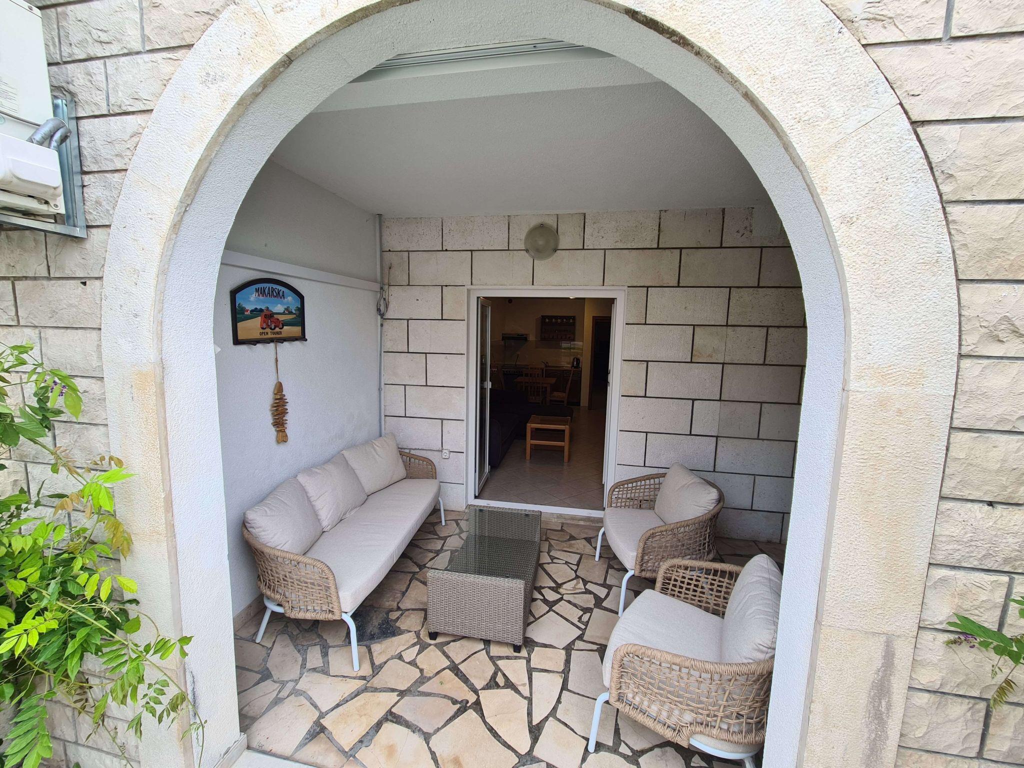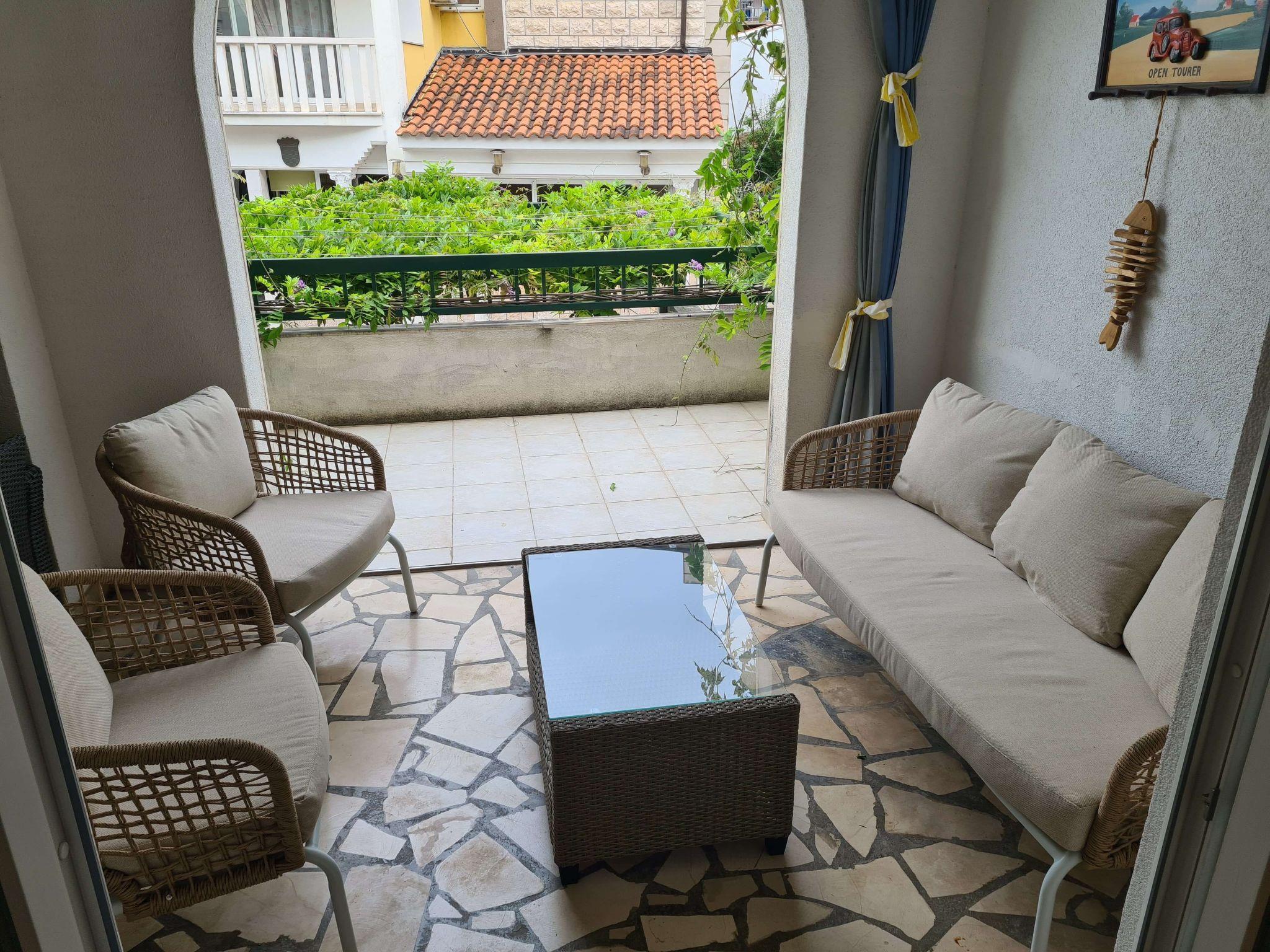 Step outside onto the terrace, and you'll find a charming seating area where you can unwind and soak up the atmosphere of Makarska. It's the perfect spot for enjoying leisurely mornings with a cup of coffee or relaxing after a day of exploring. The terrace acts as your private outdoor sanctuary, offering a peaceful escape from the world.