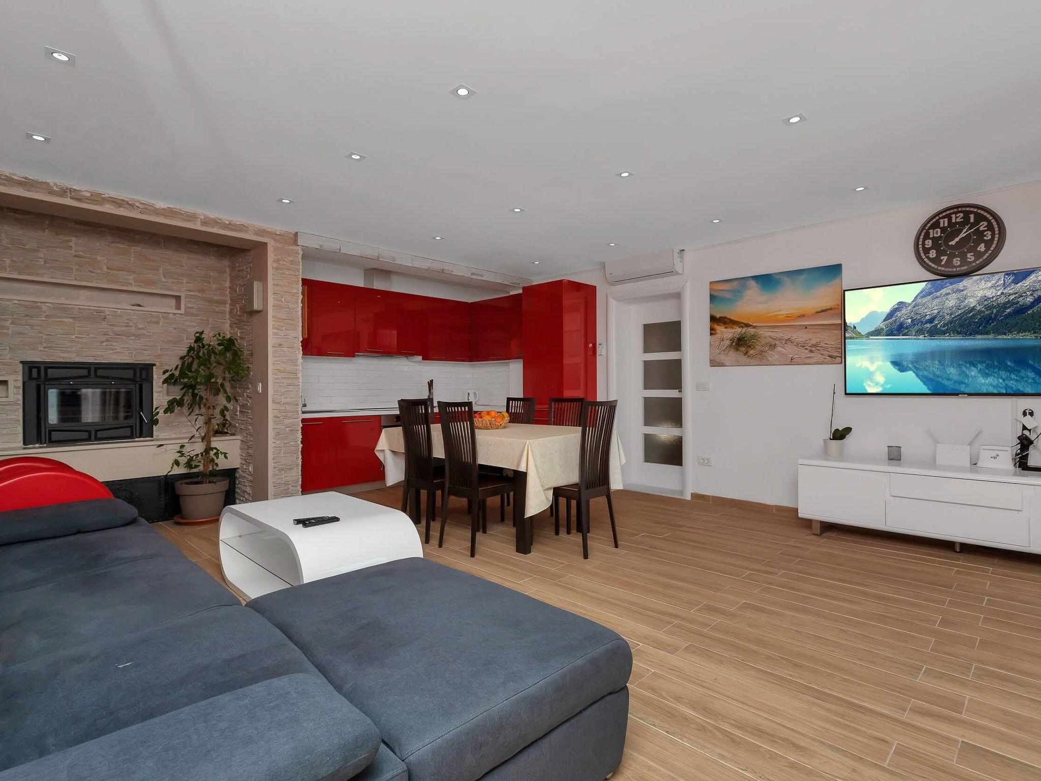 Villa Infinite Joy is a modern villa with a beautiful sun-kissed pool deck and an amazing view of the sea. It is located 2000 meters from the beach and the city centre of Makarska. Its location under the Biokovo mountain is perfect for experiencing the overwhelming presence of a looming mountain from one side, and calming perfection of calm, crystal clear sea from the other.