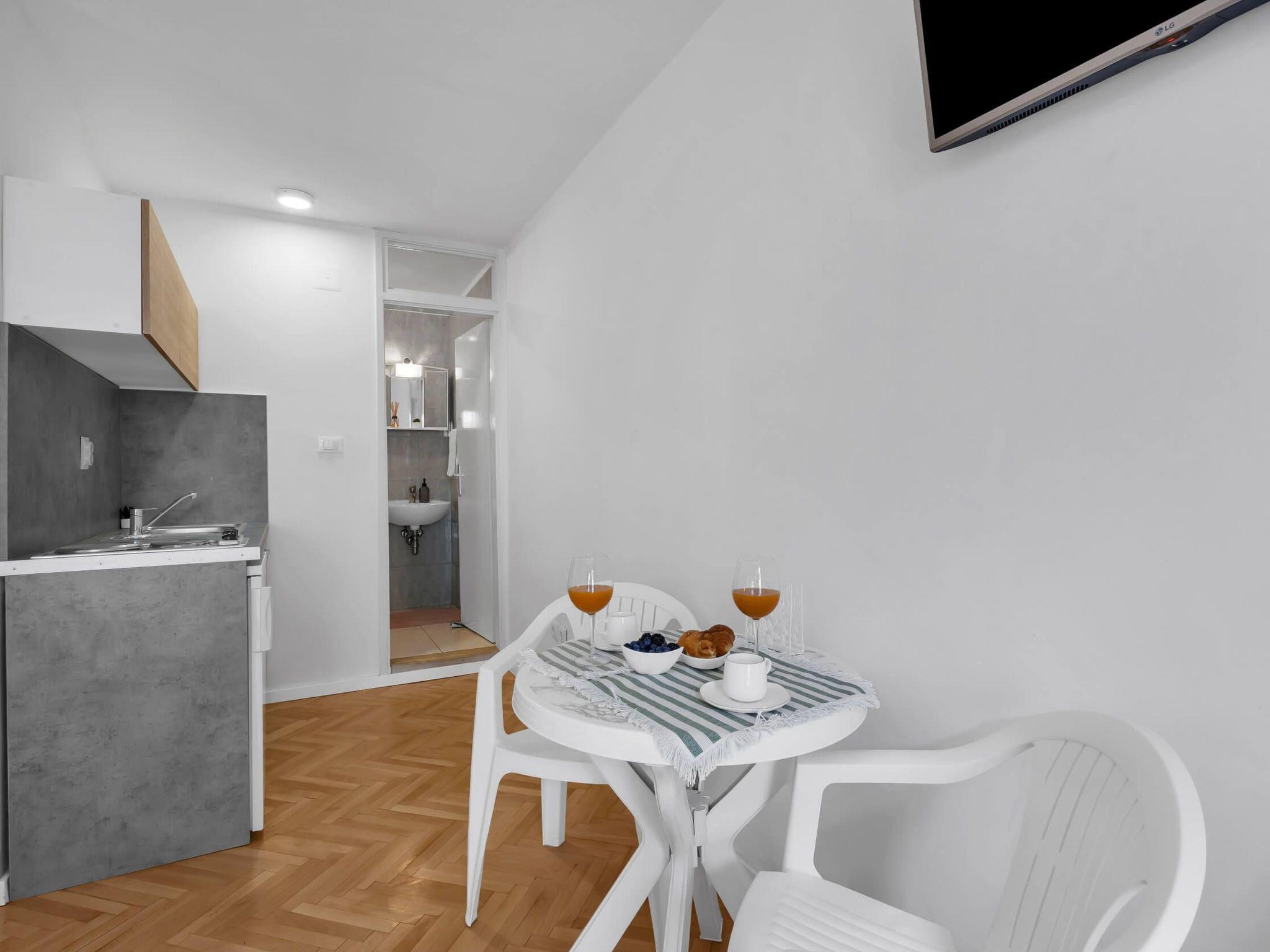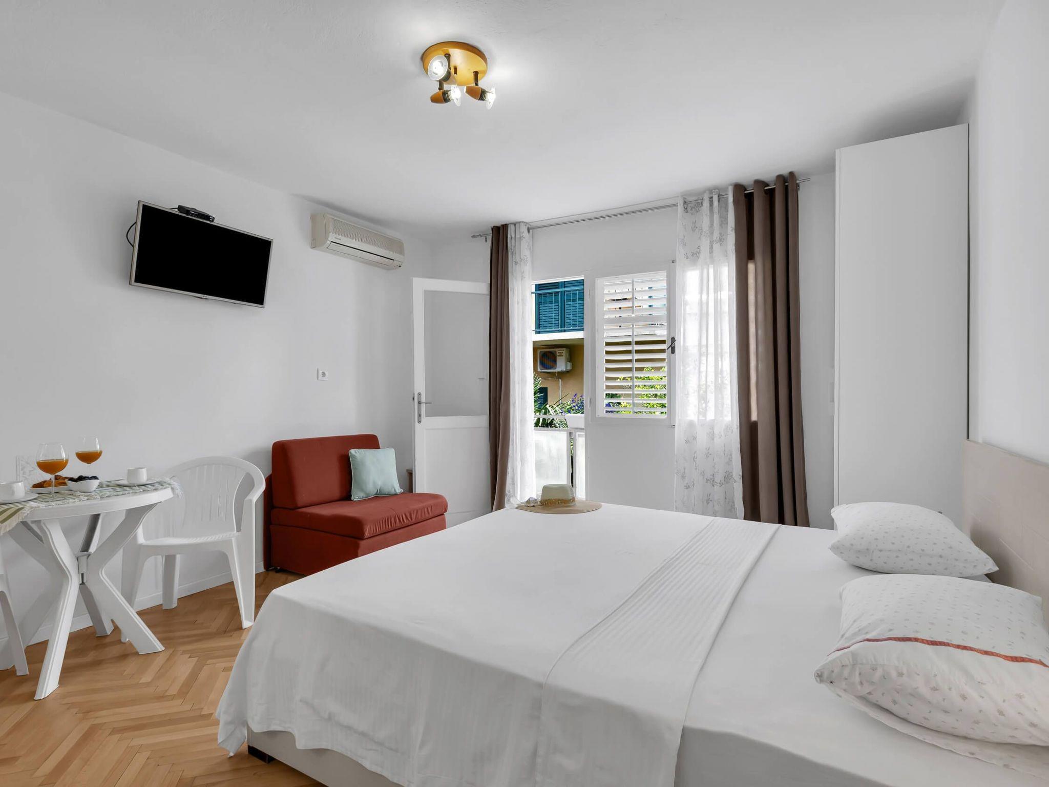 This apartment comes equipped with essential amenities designed for your comfort. It features air conditioning to keep you cool during those warm Mediterranean days and nights. The interior is thoughtfully arranged to include a cozy sleeping area with a sofa bed for one person, ensuring a restful night's sleep for all. Additionally, an electric kettle is available for your convenience, perfect for preparing morning coffee or tea before setting out to explore the stunning surroundings.