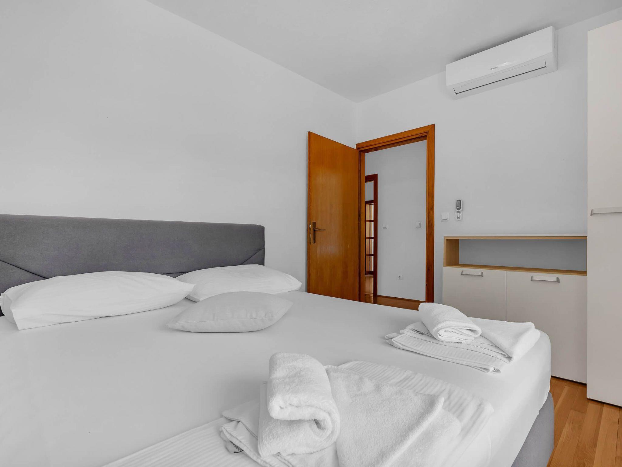 Apartment Marin A1 offers accommodation with a beautiful sea view. A fully equipped kitchen is at your disposal. (Kitchen Utensils and Tableware, Oven, Electric Stove Cooking Panel, Fridge, Freezer, Kettle)Free-extras include (Free parking, Free wi-fi, Free AC, Free final cleaning, Free towels and bed linen) . The maximum capacity of the accommodation unit is 8. In addition, we offer you free usage of barbecue on which you can make delicious meals and enjoy with your family and friends. The apartment equipment consists of (TV, SAT, Chairs).
