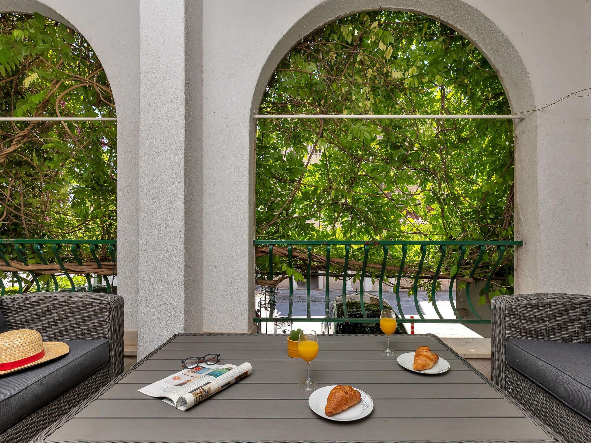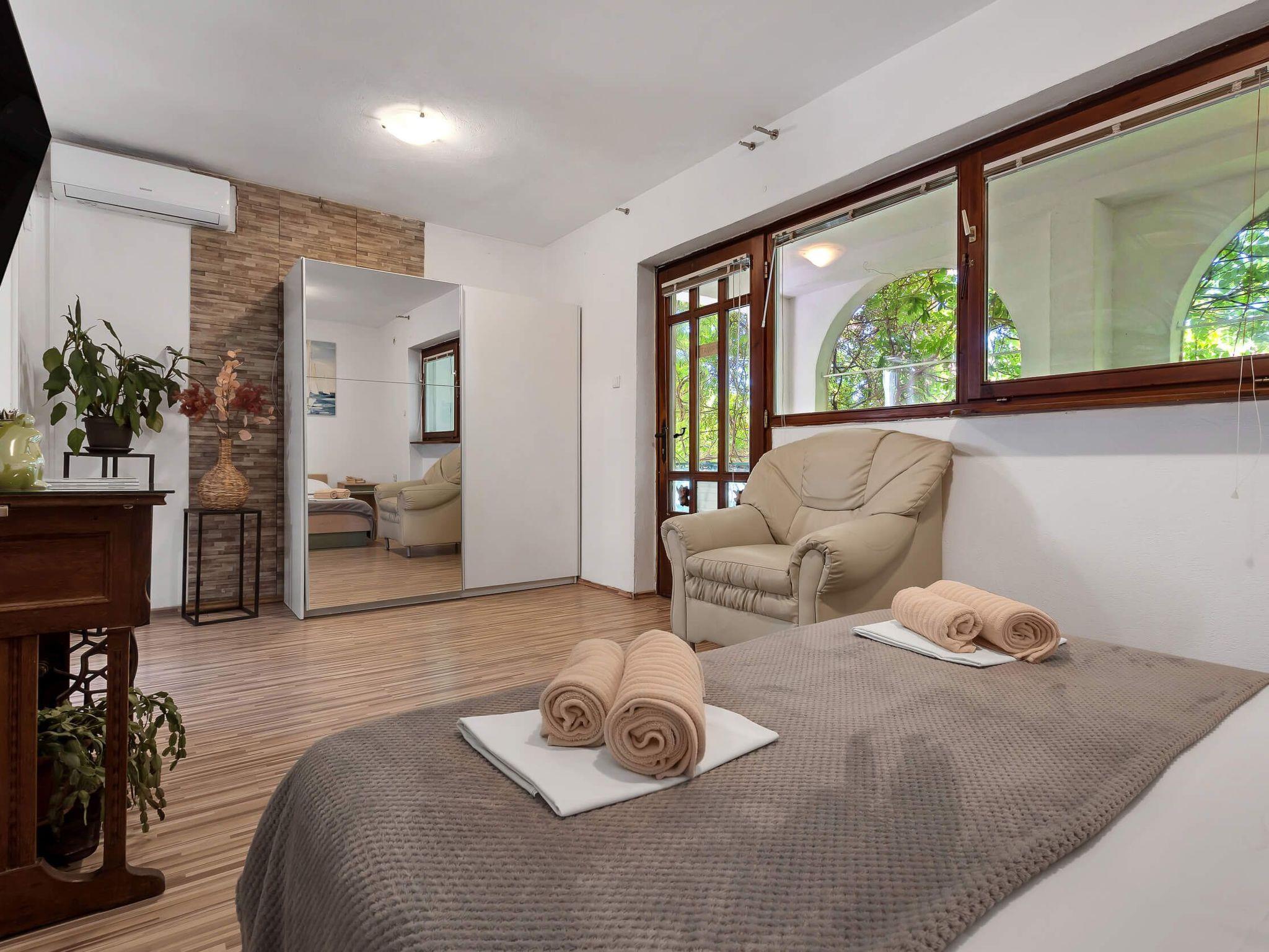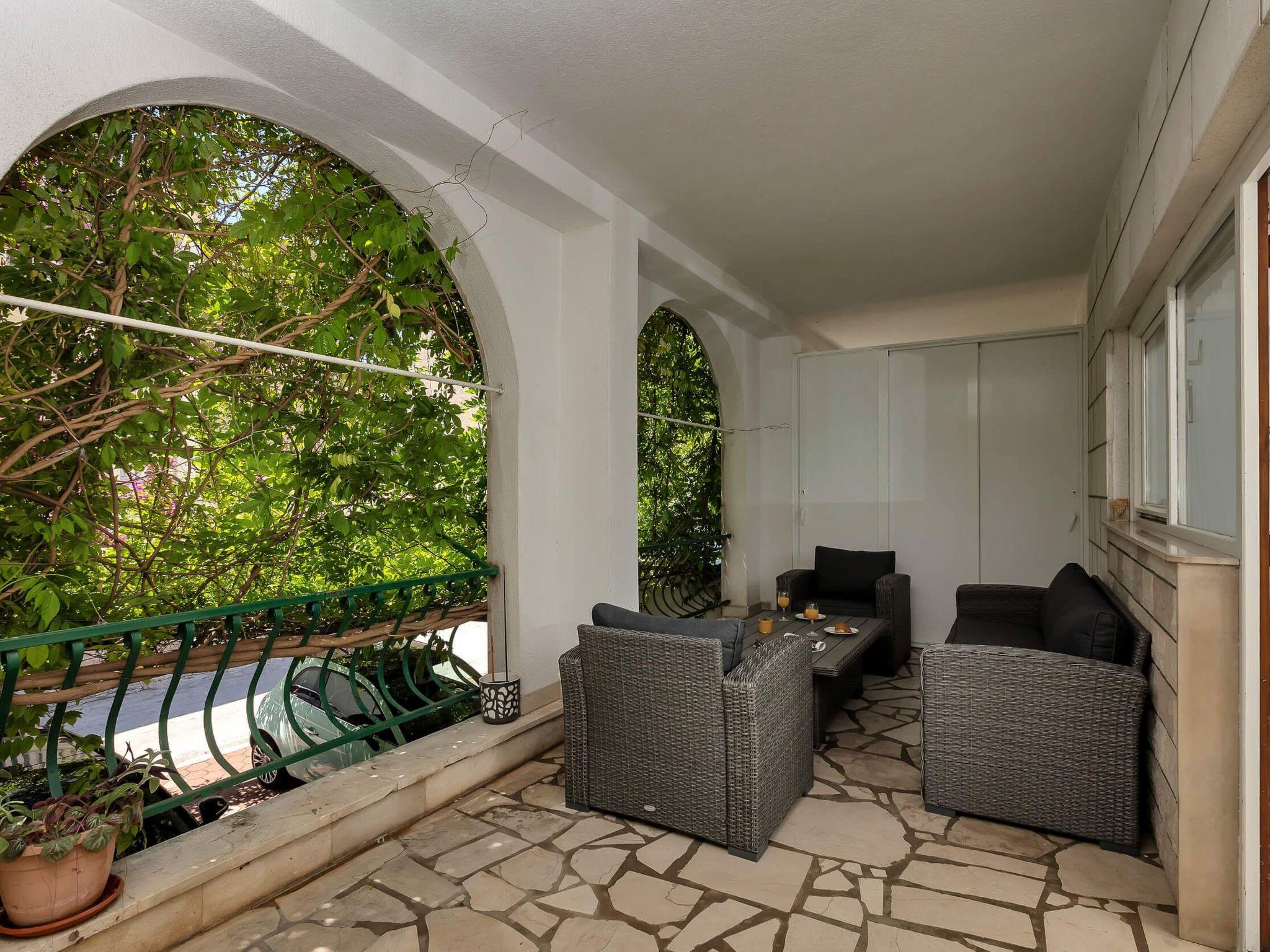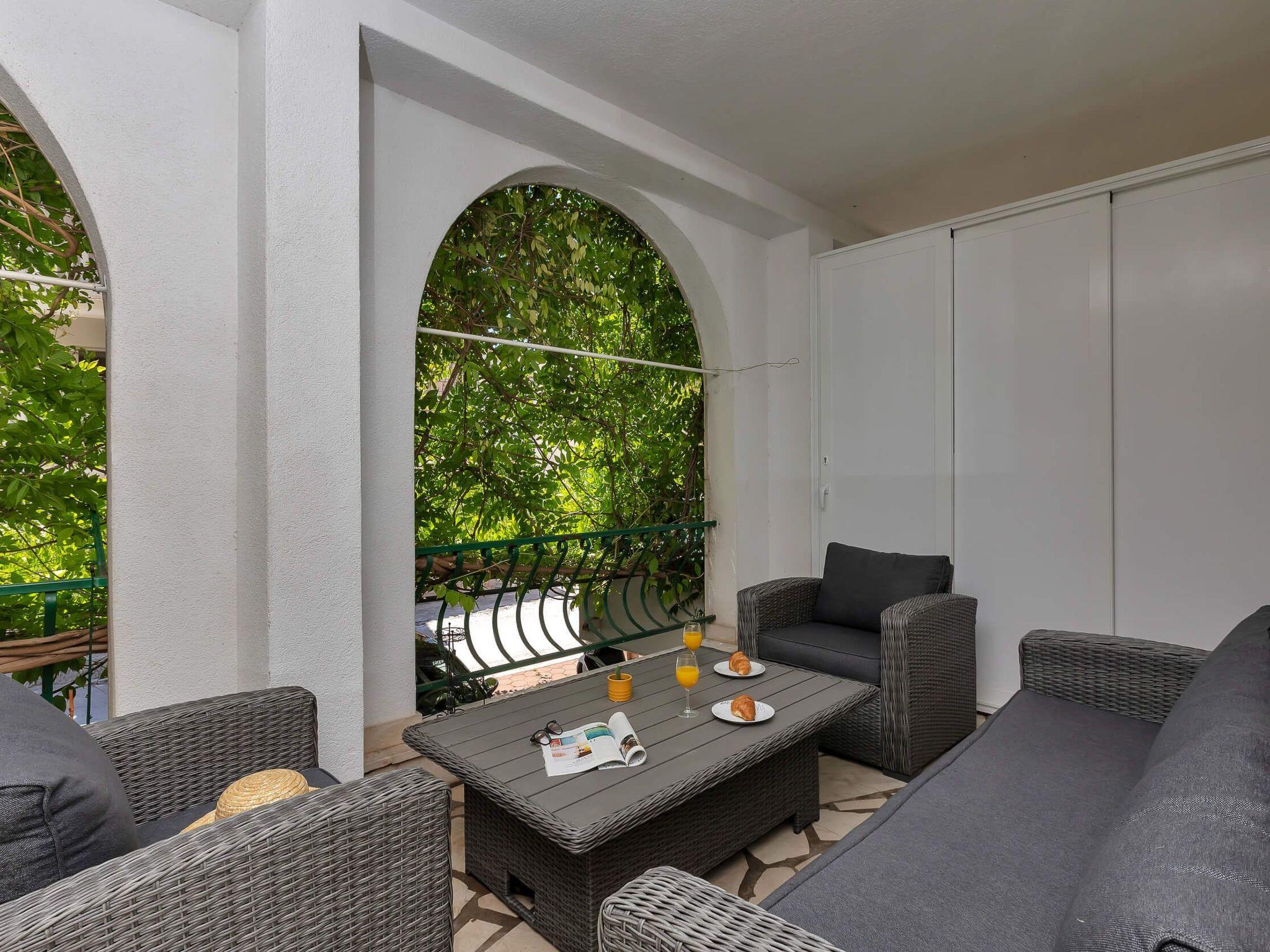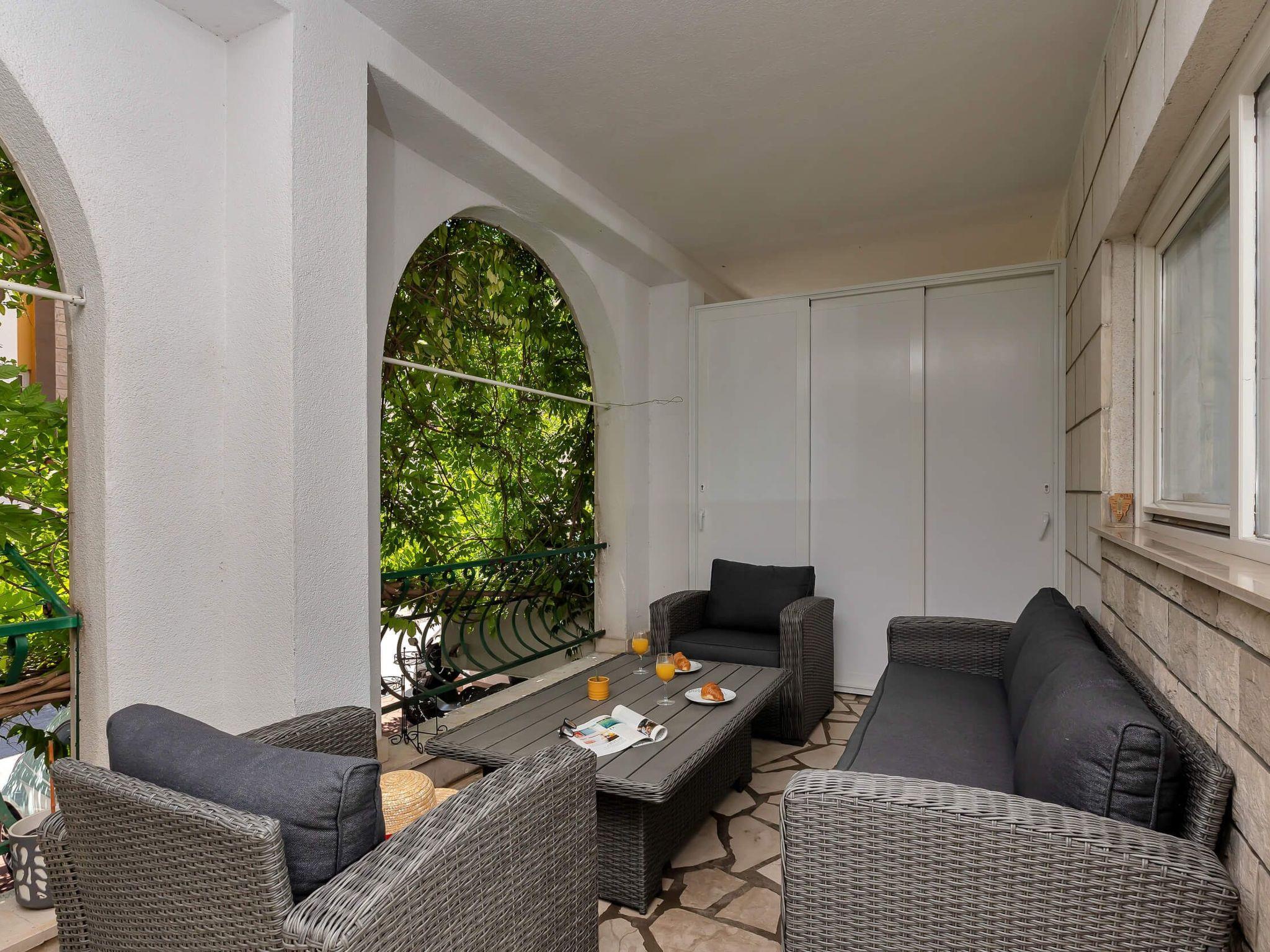 Step outside to discover the apartment’s charming terrace, an inviting outdoor space equipped with a seating area. This cozy nook is perfect for enjoying your morning coffee or unwinding in the evening with a refreshing drink, reveling in the tranquil ambiance that Makarska offers. It’s an ideal spot for relaxation, reading, or simply soaking up the atmosphere of this picturesque region.