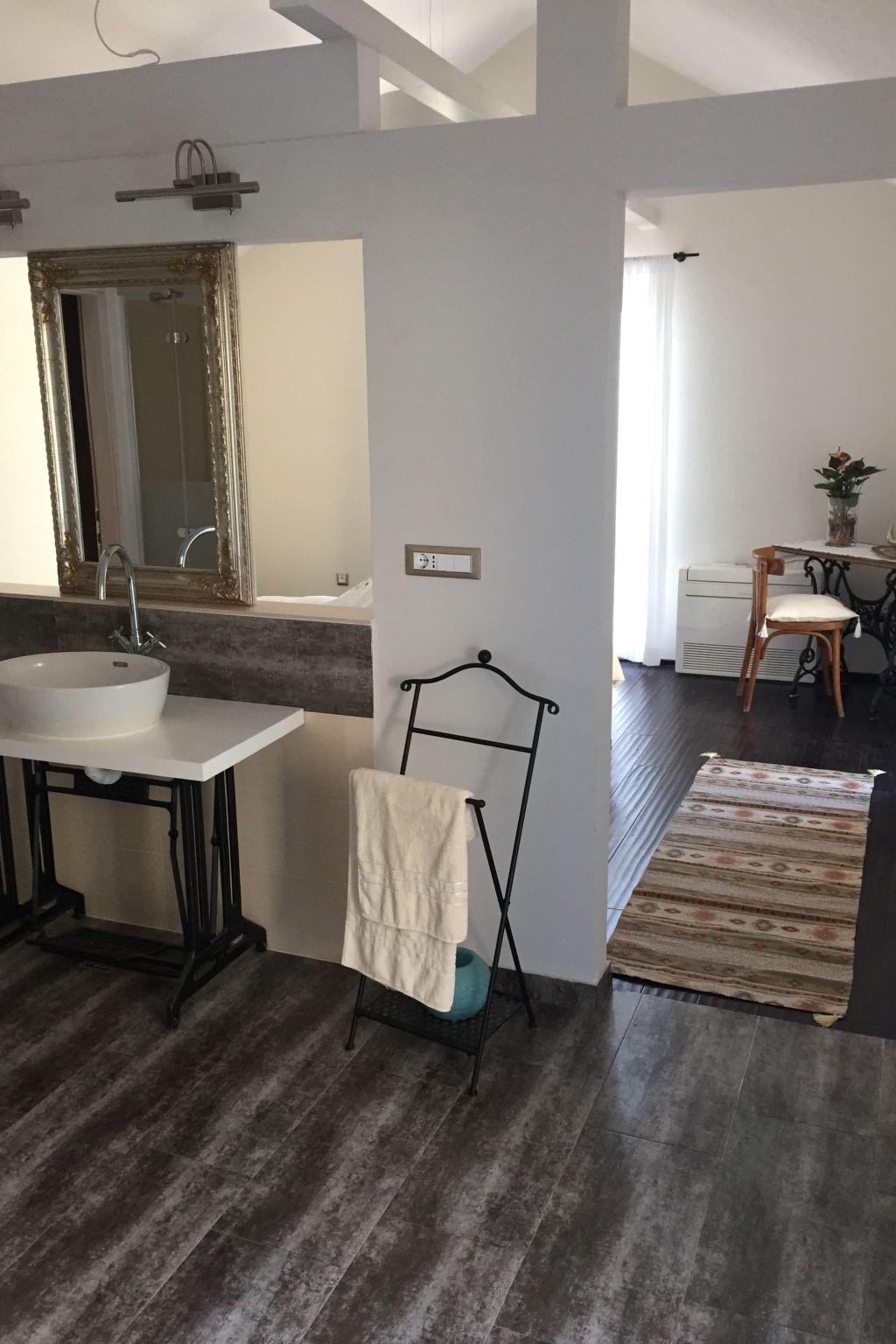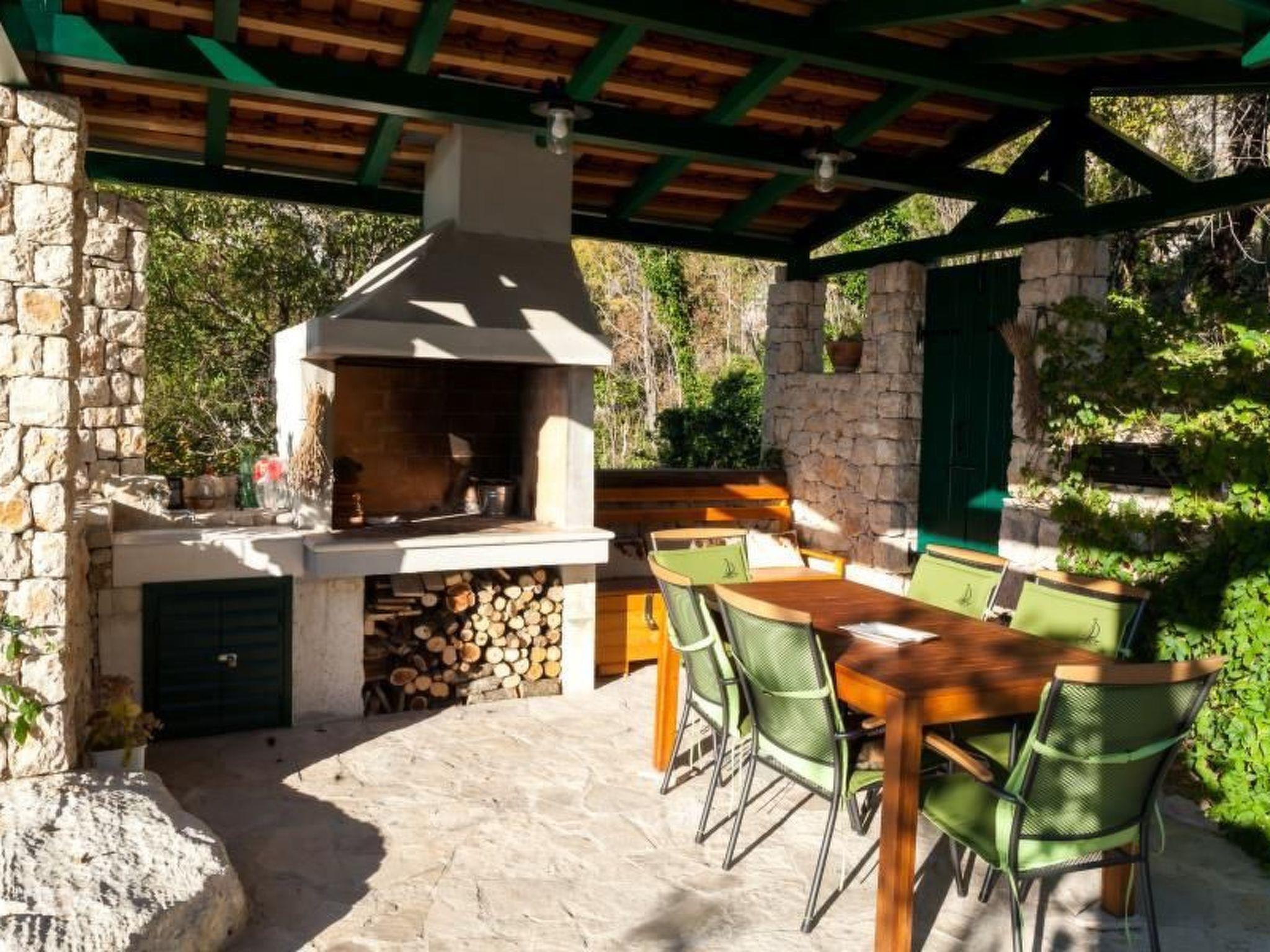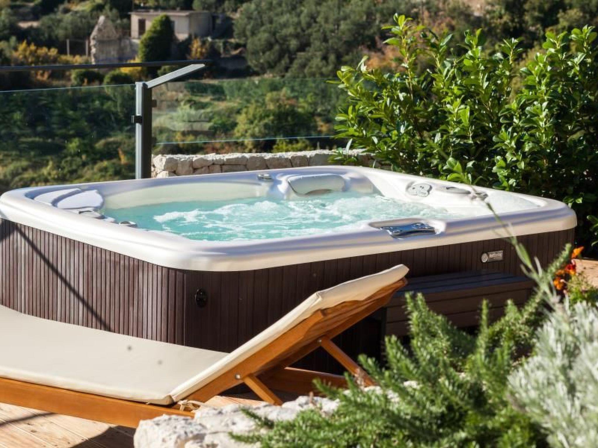 The garden has a grill with chairs and a large dining table, as well as deckchairs. It invites you to relax and affords a wonderful view of the sea and the islands. On the lower part of the site there is a whirlpool with an outdoor shower, surrounded by olive trees and flowers. There are three parking spaces on site.