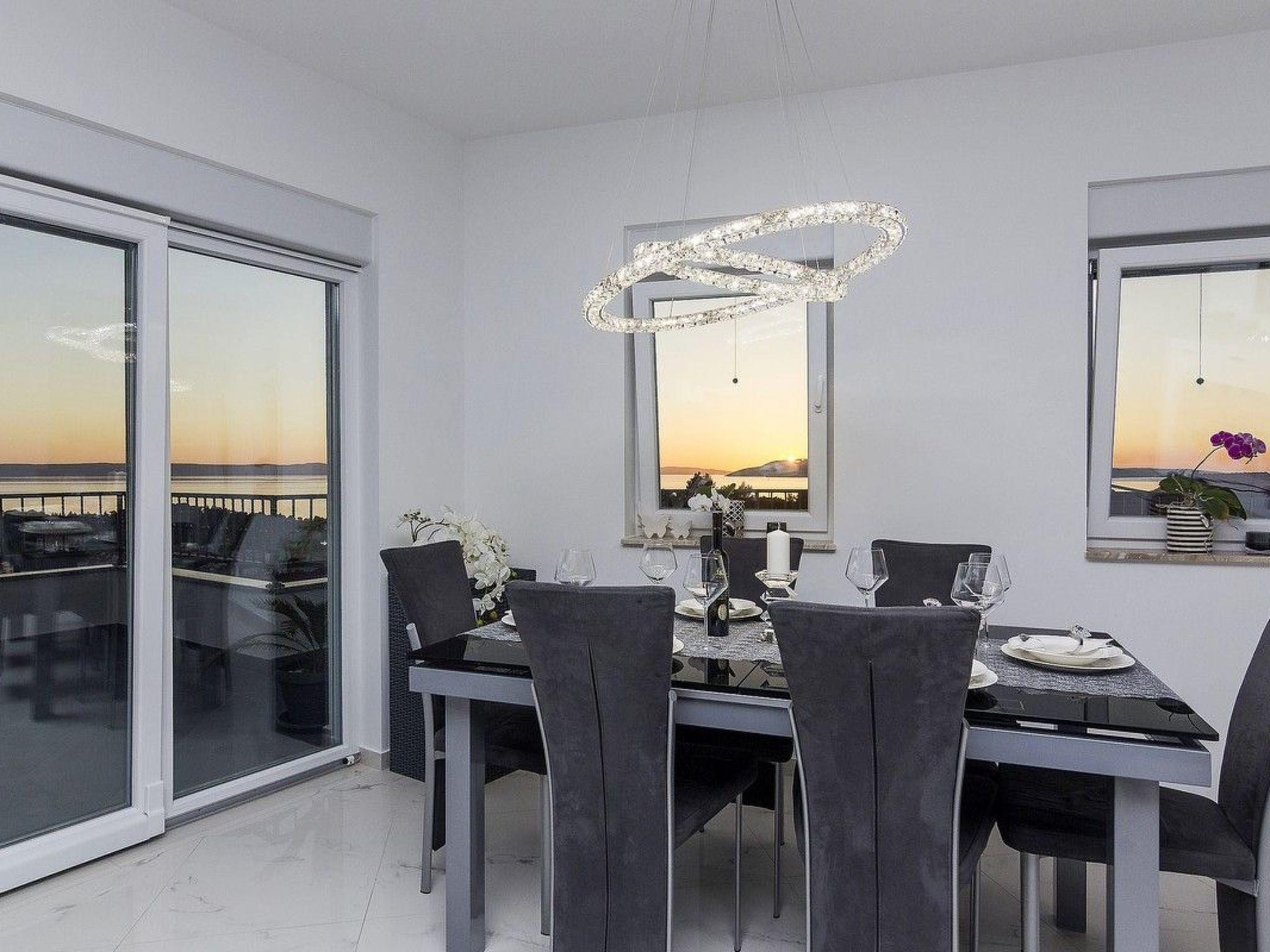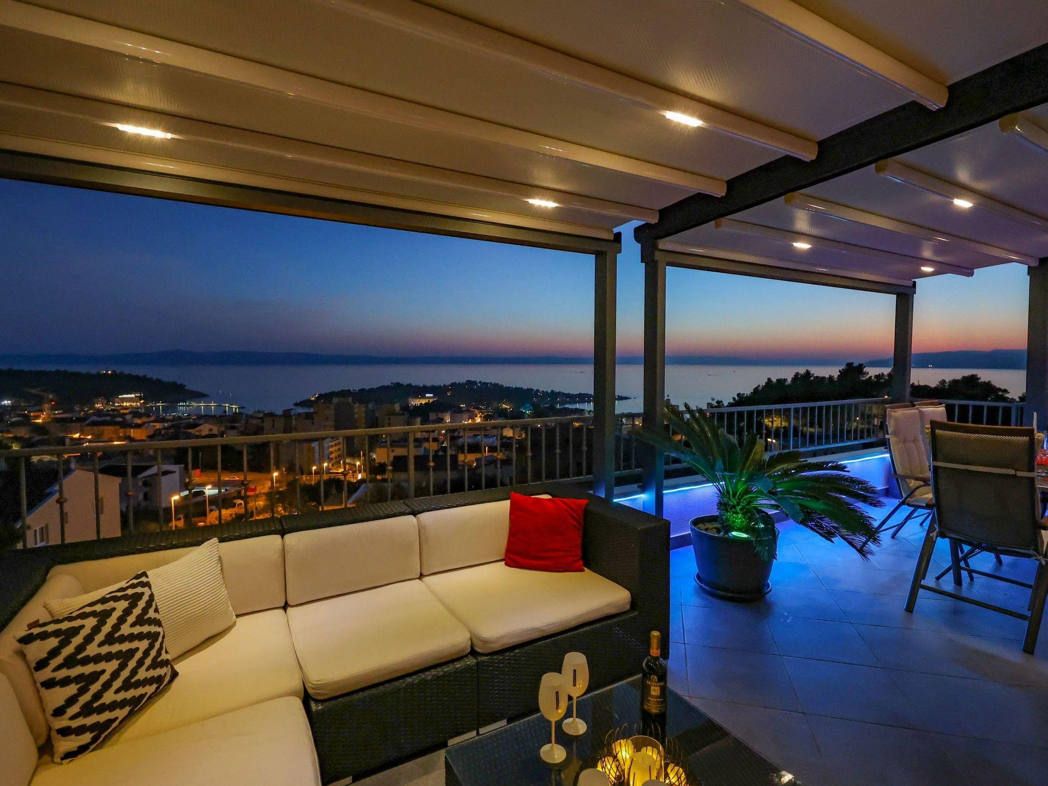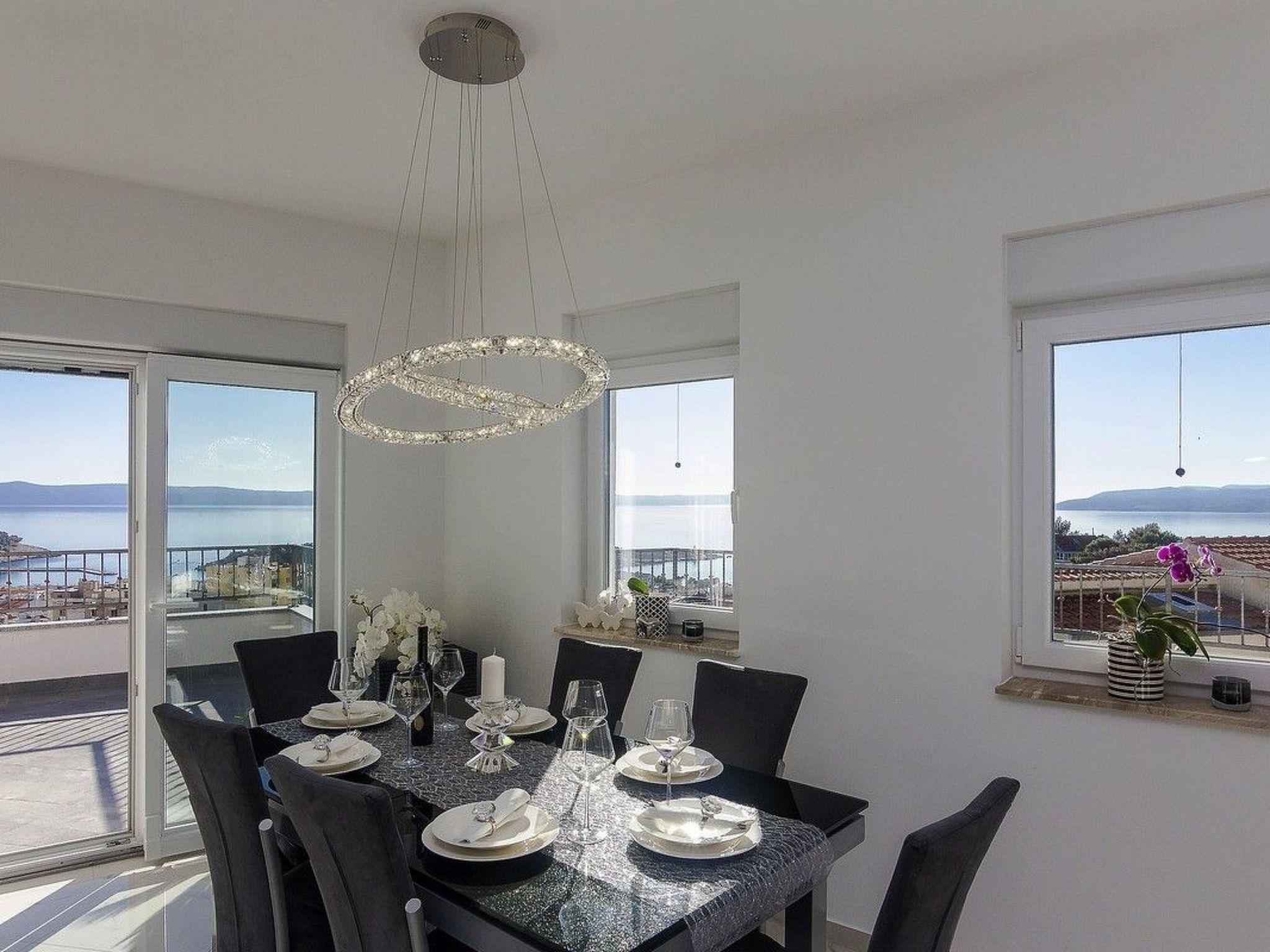 From the terrace, you can enjoy a breathtaking 180 degree view of the city of Makarska, the islands of Hvar and Brac, and in good visibility you can even see Split. Behind the flat is the Biokovo mountain range, which rises to an altitude of 1762 m. An underground car park and another parking space in front of the house are also available for you. You can also walk to the town centre, which is about 10 minutes away. The bakery and supermarket are just 150 metres from the flat.