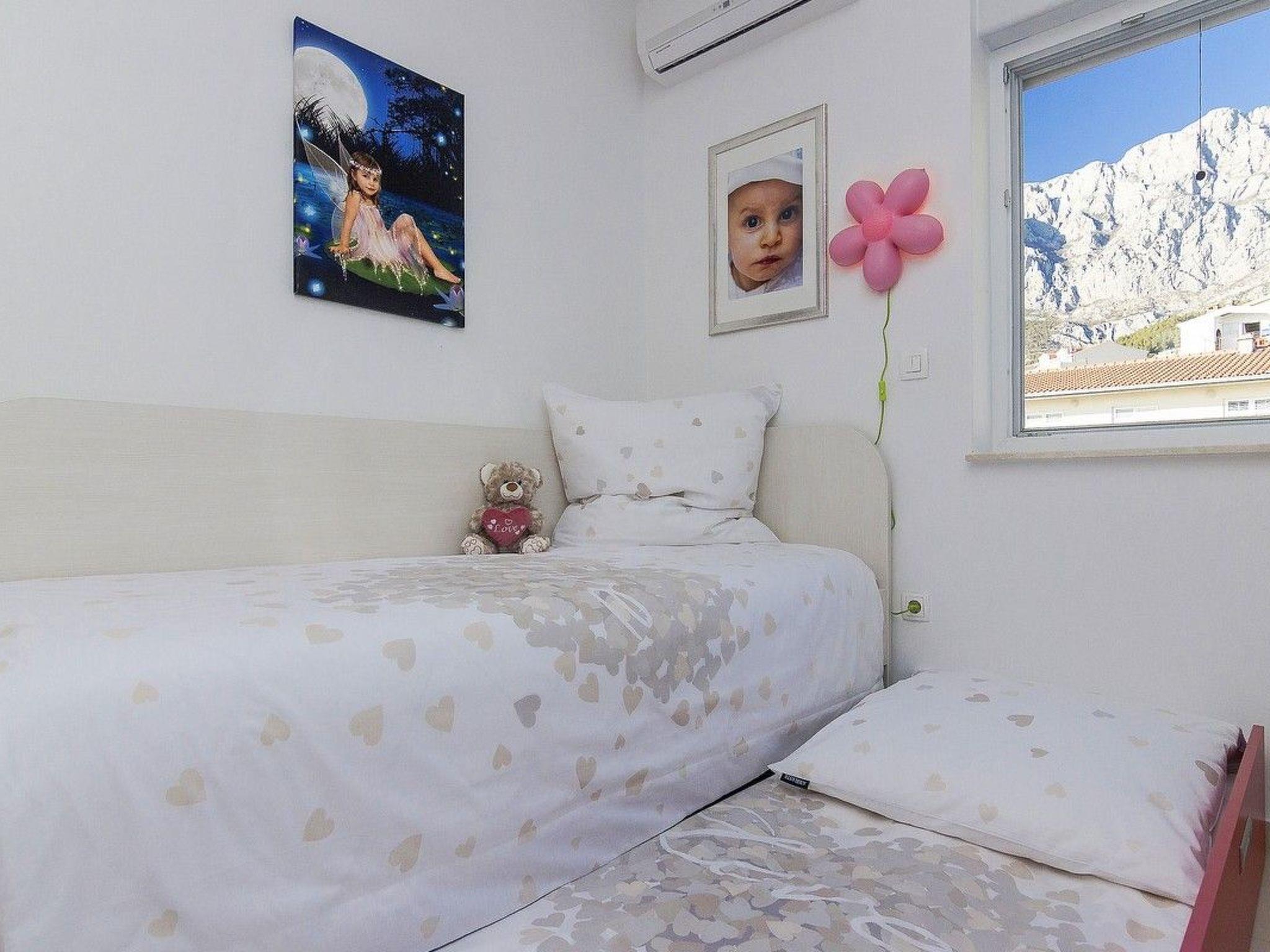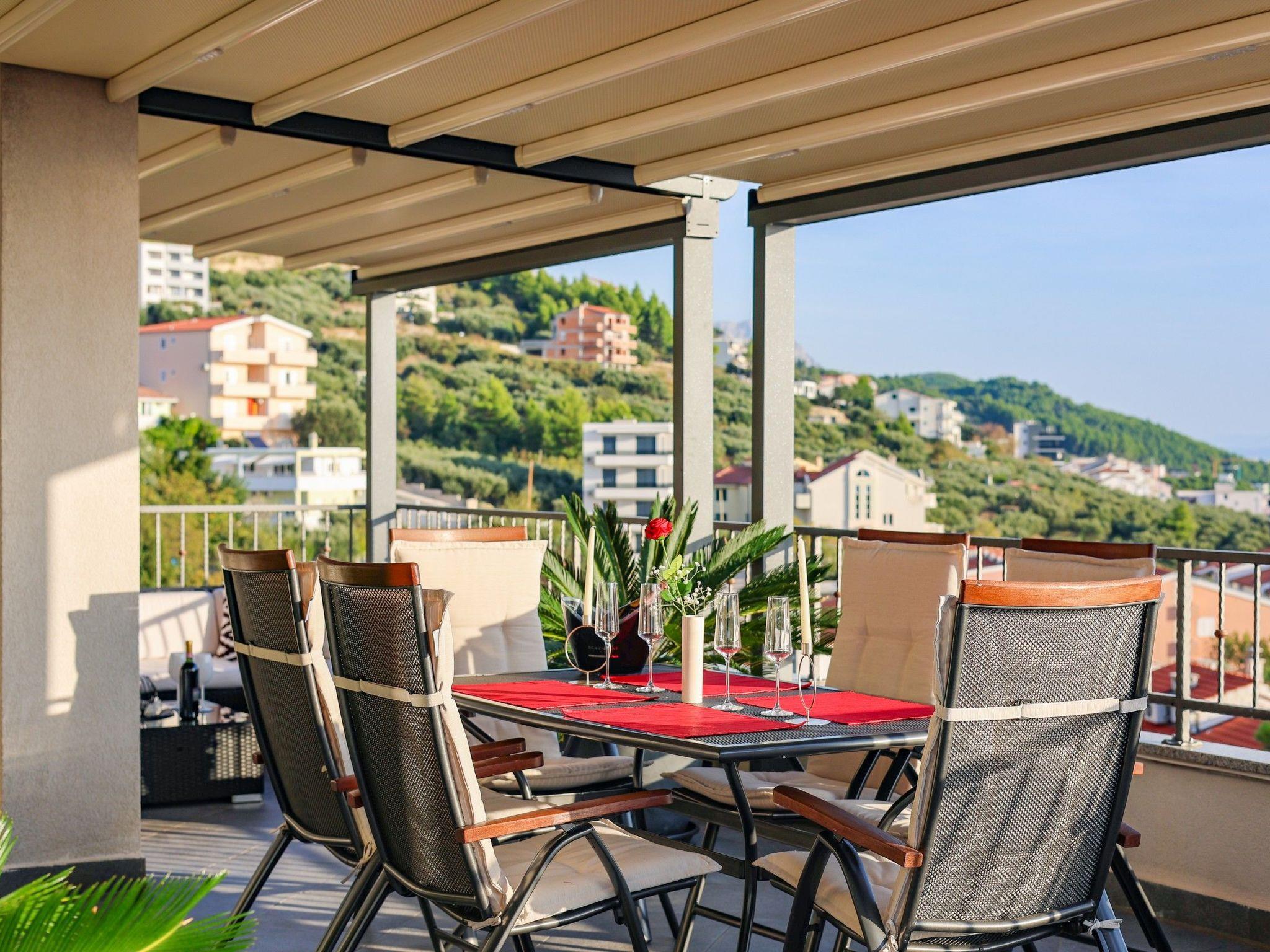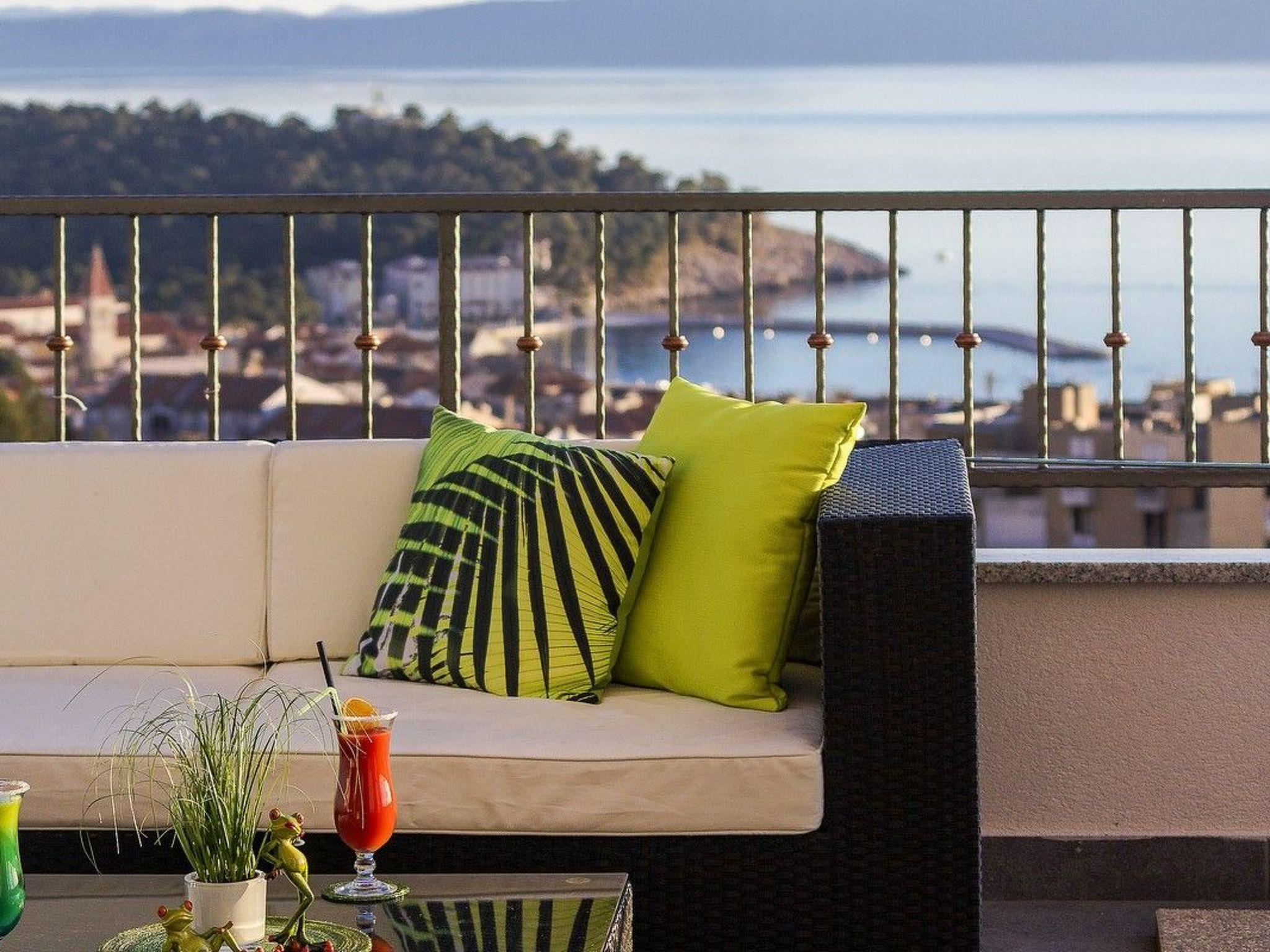 From the terrace, you can enjoy a breathtaking 180 degree view of the town of Makarska, the islands of Hvar and Brac, and in good visibility you can even see Split. Behind the flat is the Biokovo mountain range, which rises to an altitude of 1762 m. An underground car park and another parking space in front of the house are also available for you. You can also walk to the town centre, which is about 10 minutes away. The bakery and supermarket are just 150 metres from the flat.