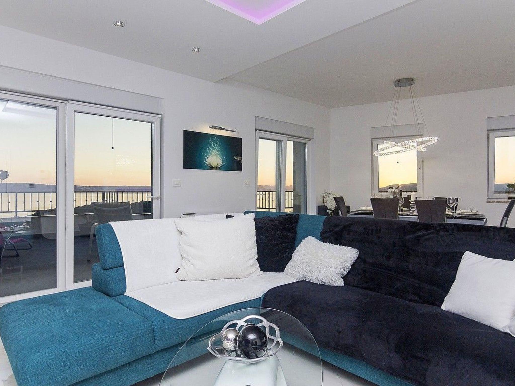 Fantastically beautiful penthouse flat above the town of Makarska with terrace, whirlpool and sea view. This modern flat has a total of three bedrooms and two bathrooms. The spacious living room with open-plan kitchen has direct access to a large terrace with fantastic sea views and jacuzzi. All rooms are fully air-conditioned and spread over 130 square metres of living space. Internet WiFi connection, free of charge, SAT/TV, German programmes.