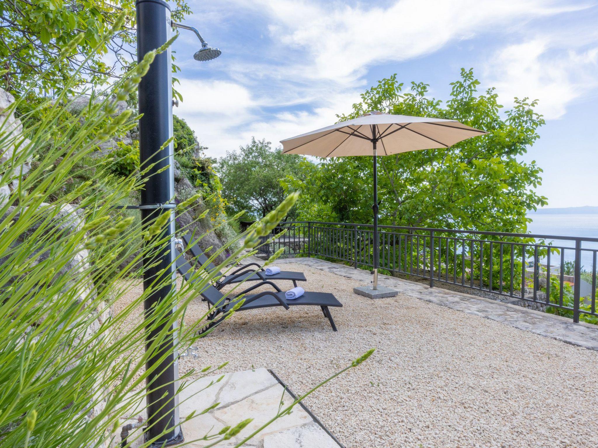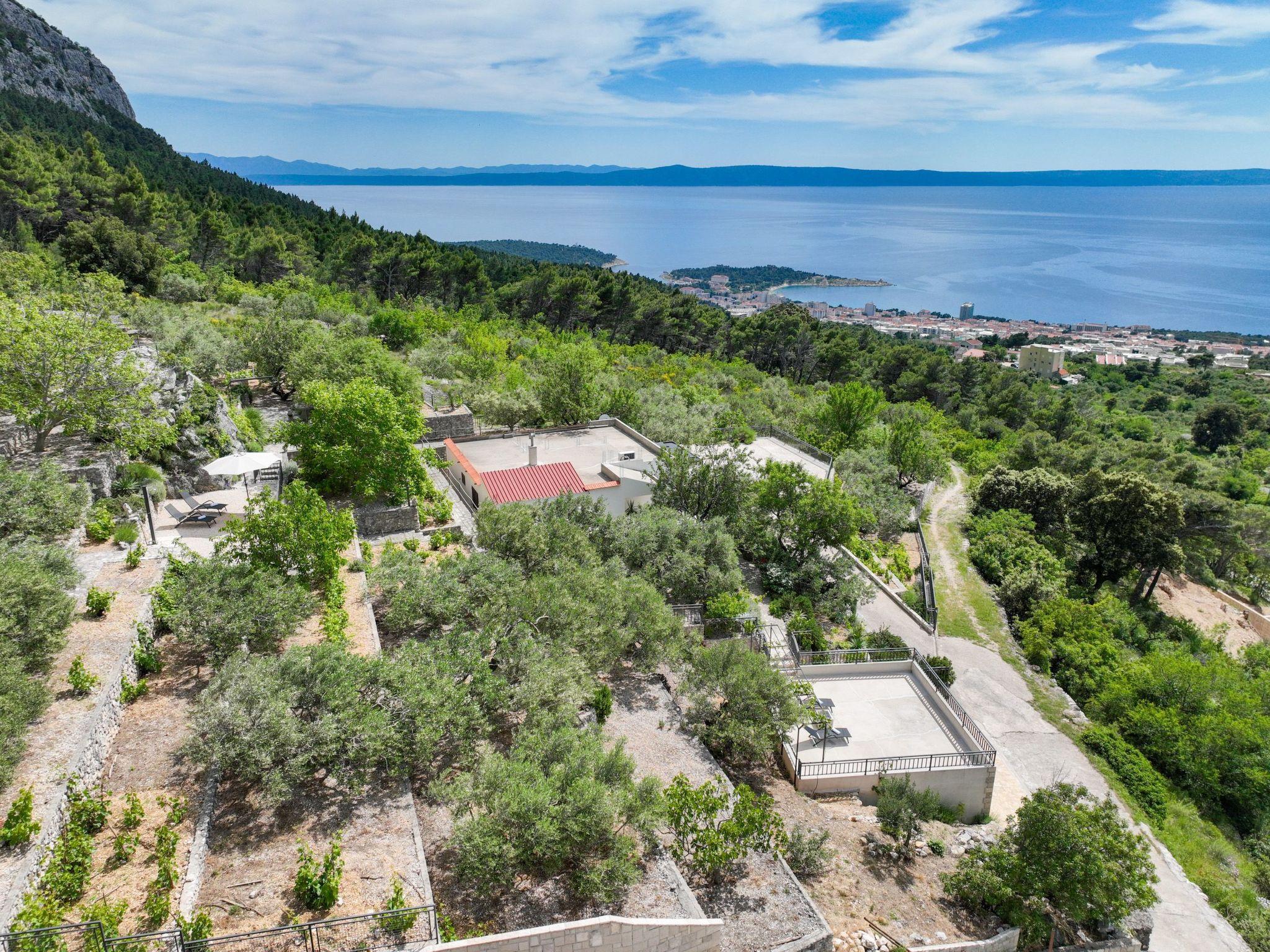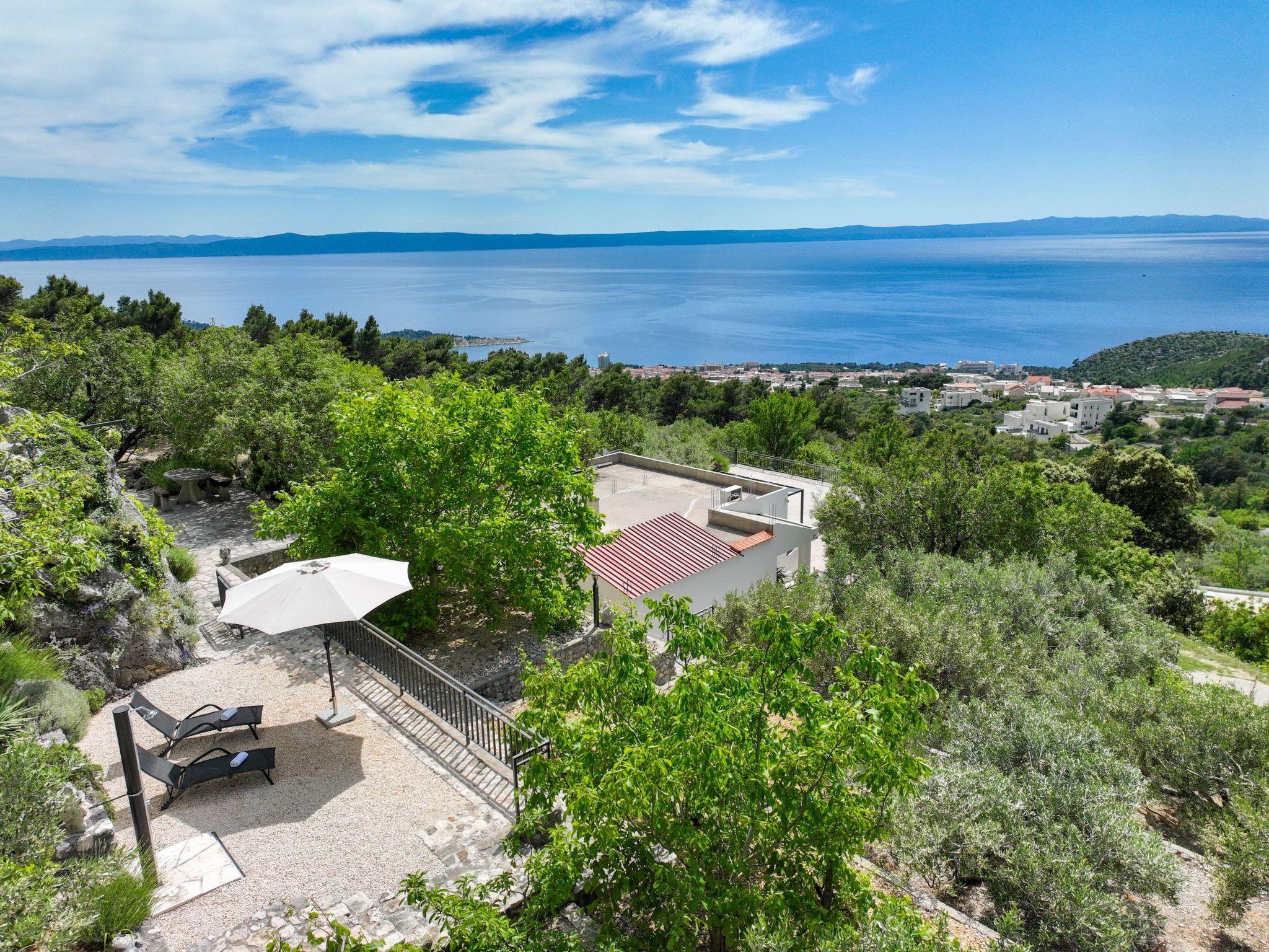 The outdoor area of this holiday home is equally impressive and invites you to linger. A spacious terrace not only offers a spectacular view of the sea, but also a perfectly equipped barbecue area for cosy evenings in the open air. The private garden, surrounded by picturesque olive trees, offers plenty of space for relaxation and play.