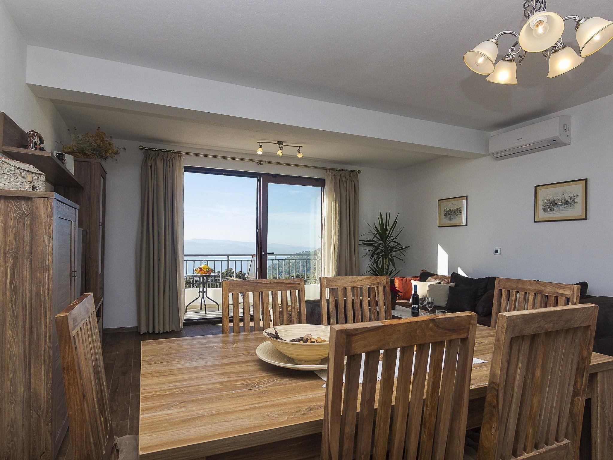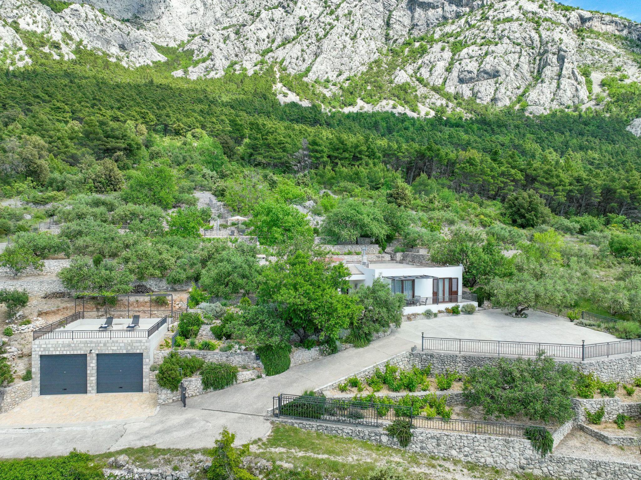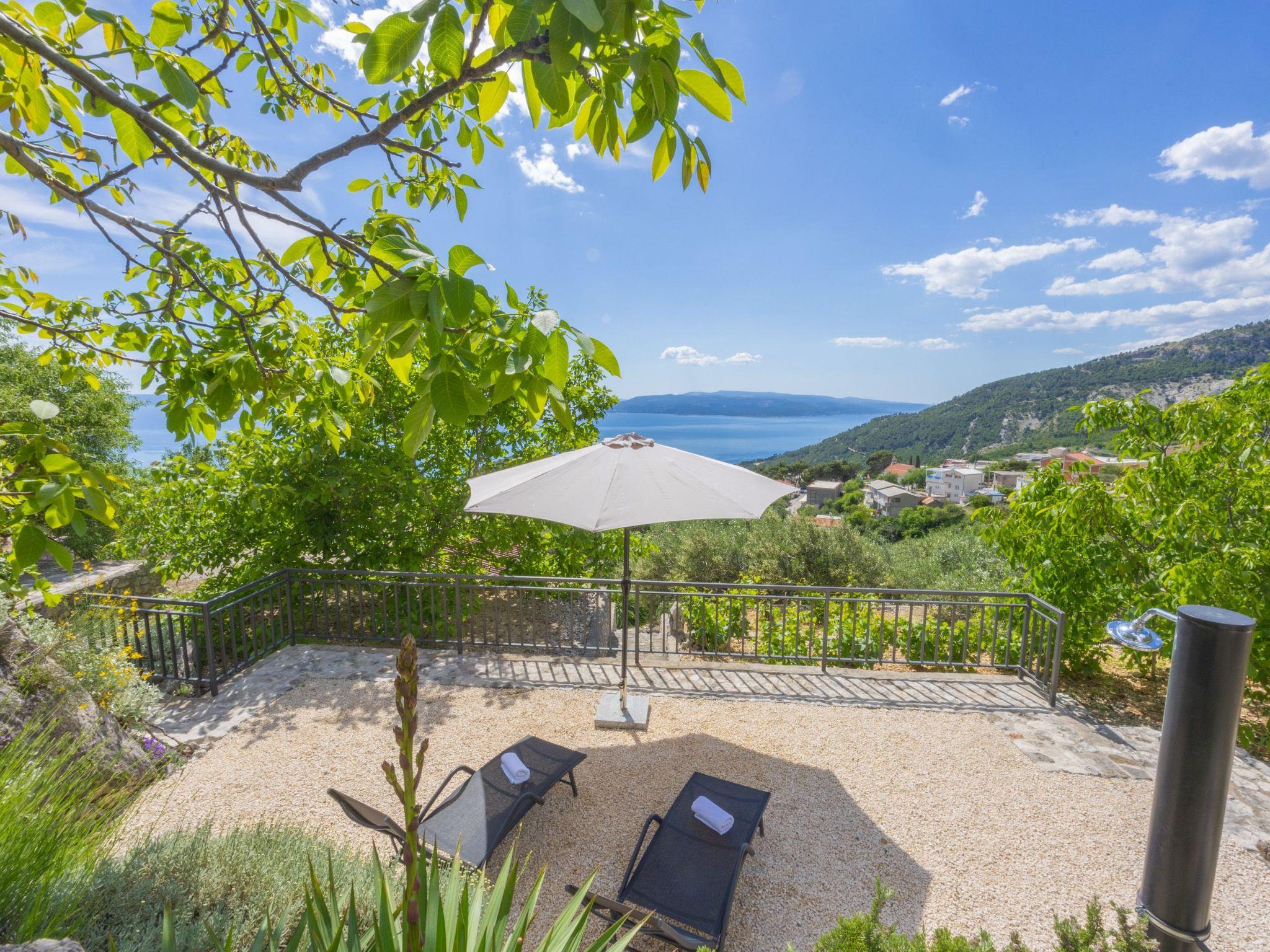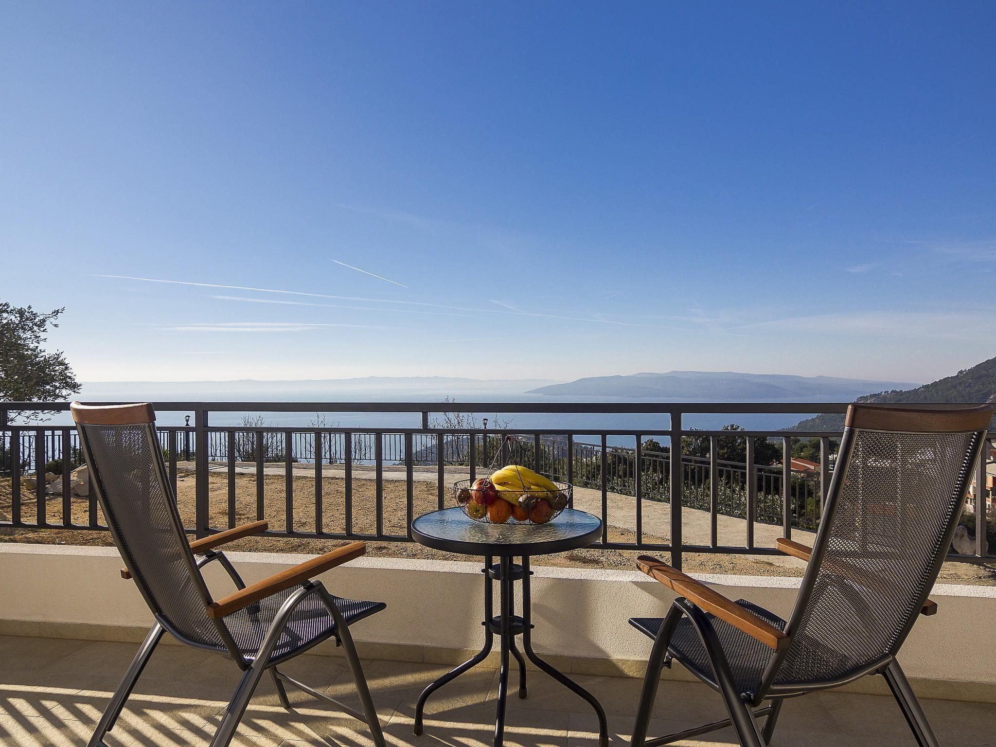 The outdoor area of this holiday home is equally impressive and invites you to linger. A spacious terrace not only offers a spectacular view of the sea, but also a perfectly equipped barbecue area for cosy evenings in the open air. The private garden, surrounded by picturesque olive trees, offers plenty of space for relaxation and play.