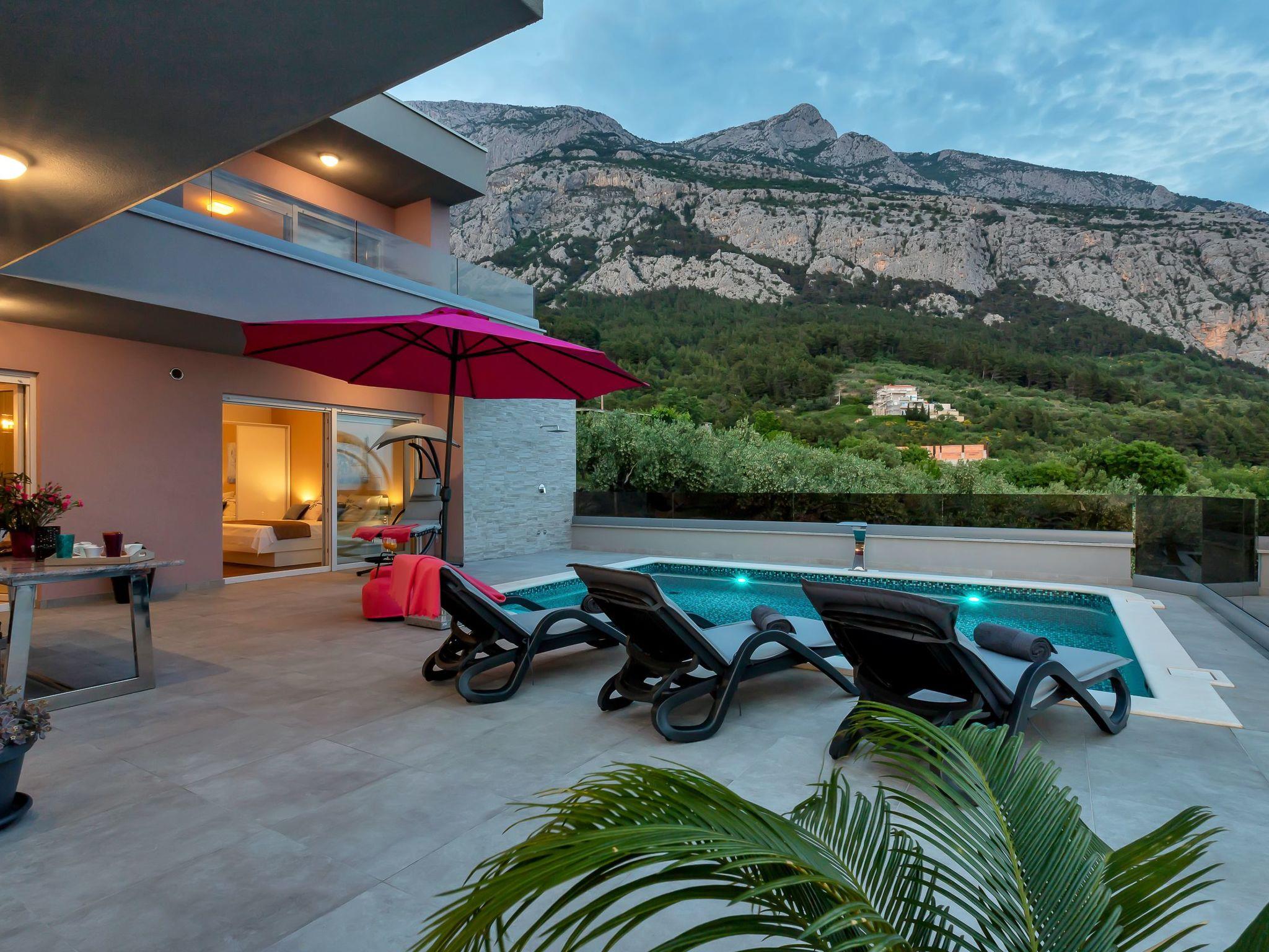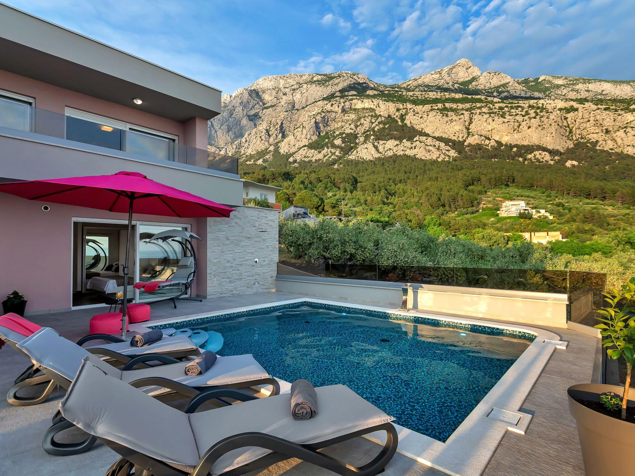 Quietly situated, surrounded by olive groves and pine trees on a hillside above the town of Makarska.