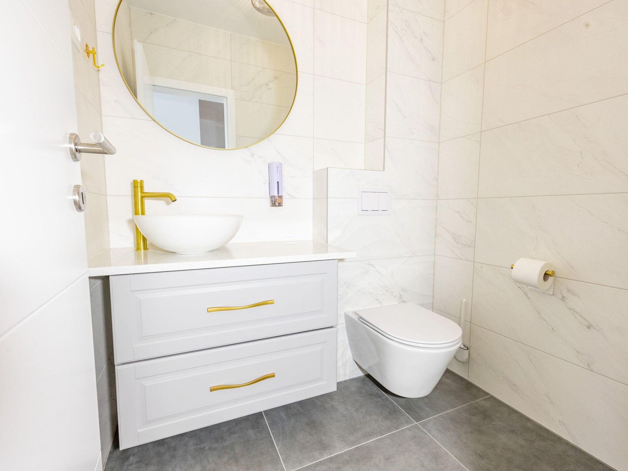 Practicality is paramount in this flat. It has a modern bathroom with a refreshing shower and elegant fittings, as well as a separate WC for added comfort and privacy.
