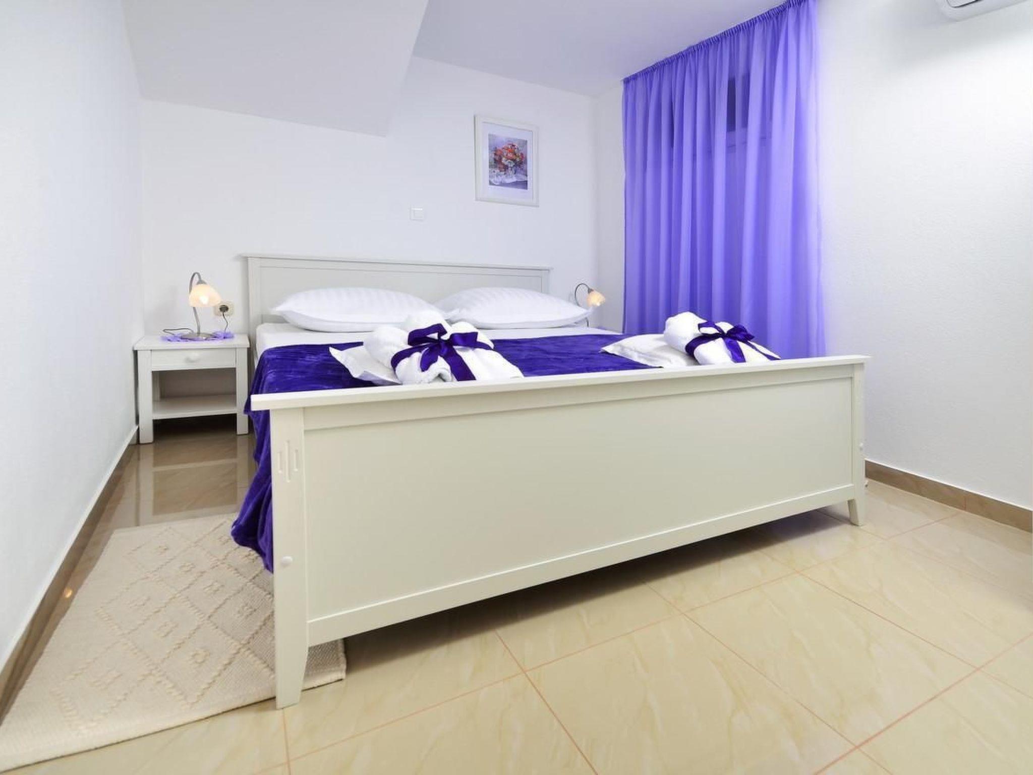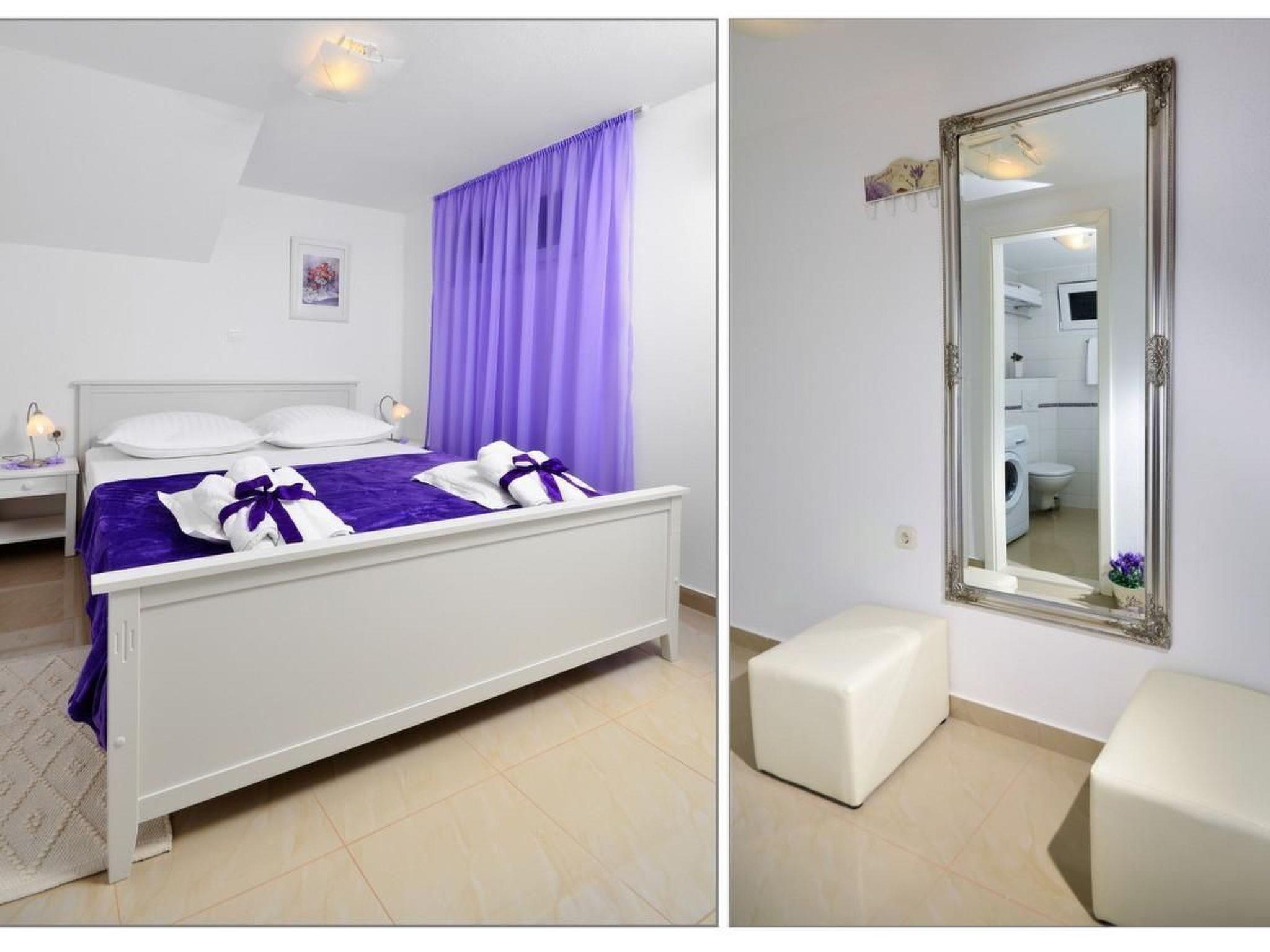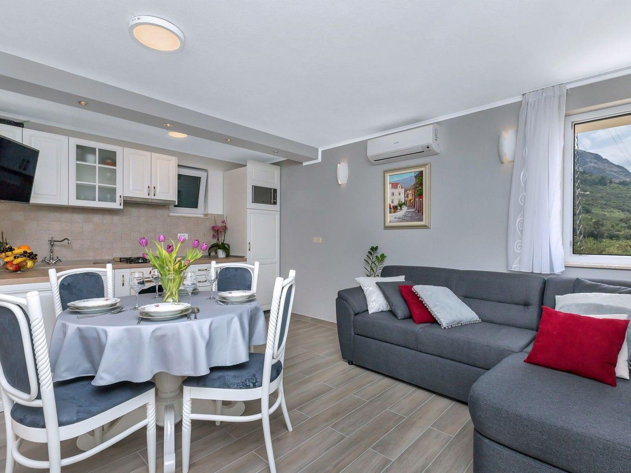 The holiday home Maria with heated pool is located in the hamlet of Puharici, above the town of Makarska. This detached holiday home has three floors and a plot of approx. 500 square metres. The house is surrounded by olive trees, has a well-kept garden with barbecue area and garden furniture. The overflow pool (heated) is about 25 square metres in size and from here you can enjoy the beautiful view of the sea and the town of Makarska. Sun loungers and an outdoor shower are also available.