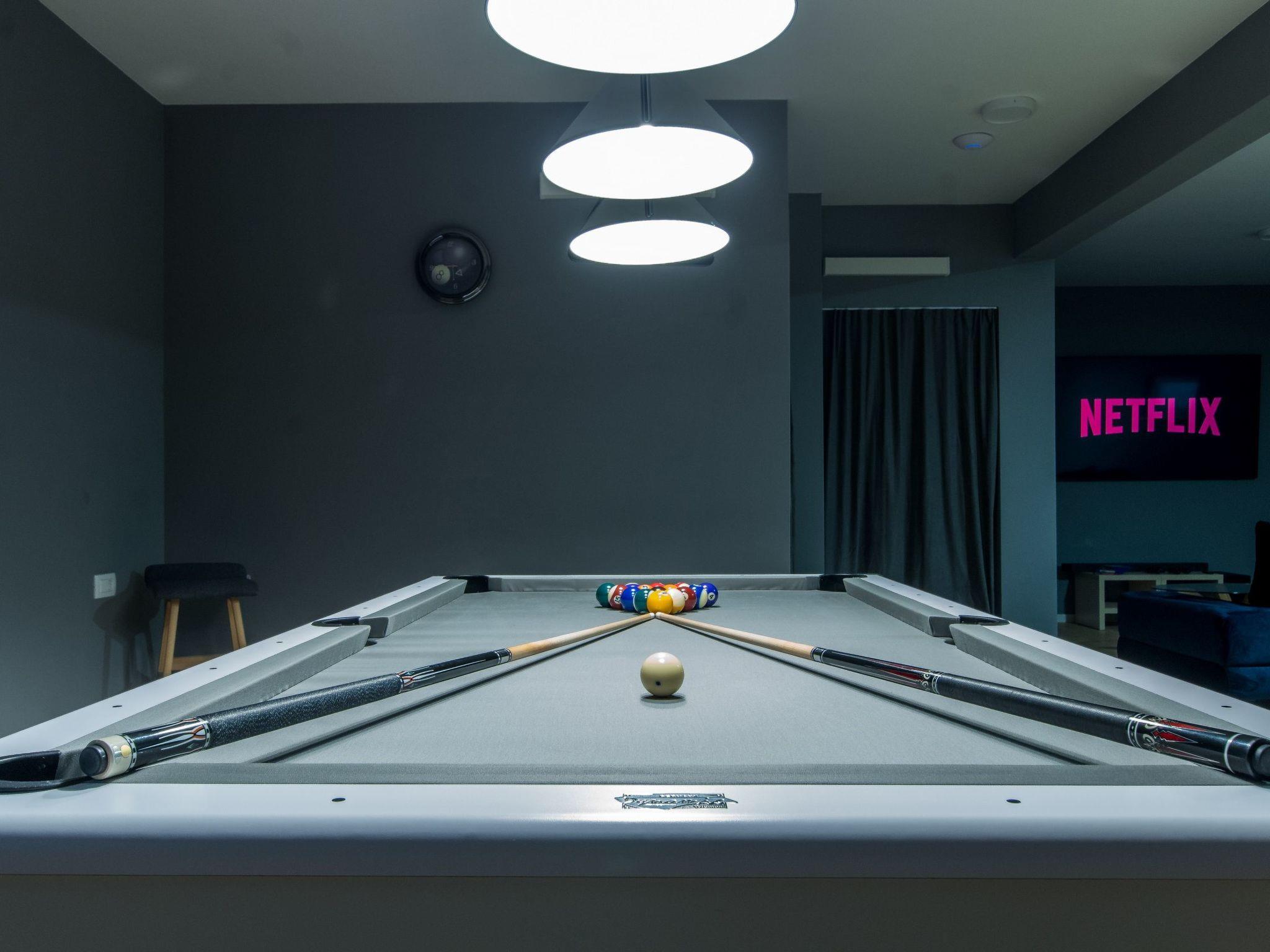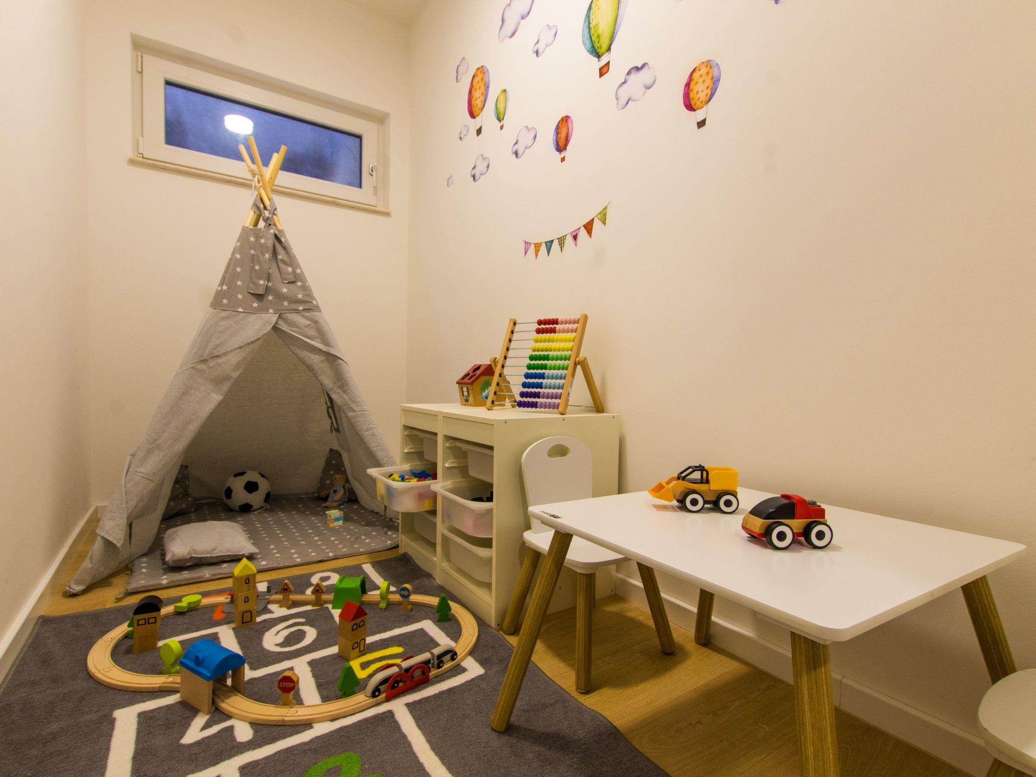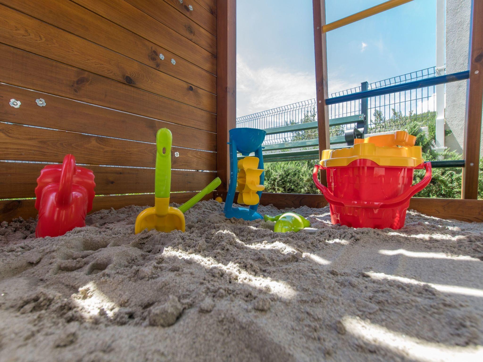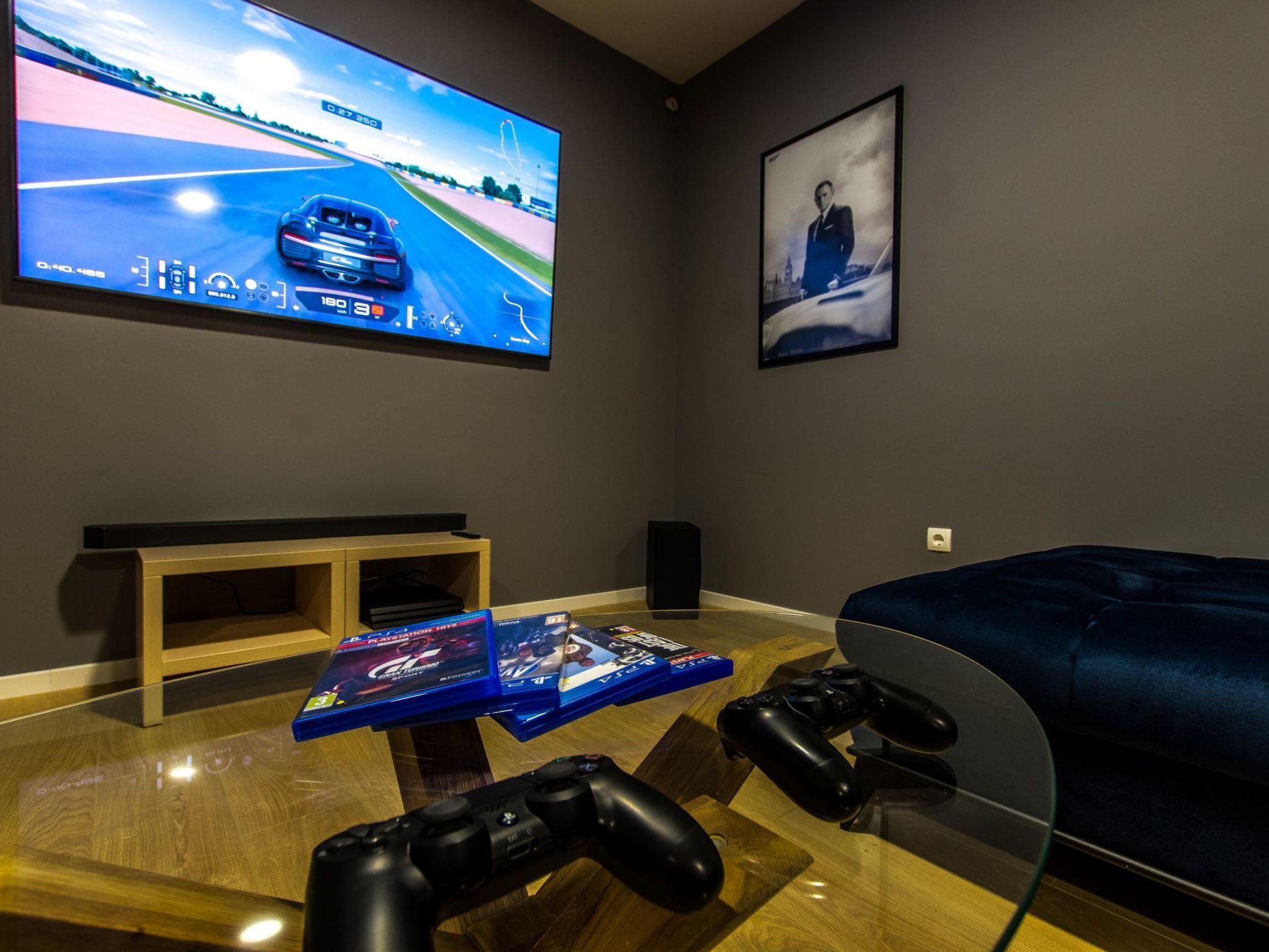 Inside, guests will find a realm of comfort and entertainment equipped to meet every need. The villa boasts a spacious living area complete with a TV for leisurely evenings, alongside an entertainment room and a home theater for movie nights. For families, a children's playroom and a PlayStation 4 keep the younger guests entertained. The heart of the home, a large kitchen with a dining area, is perfect for preparing and enjoying meals together. Further enhancing indoor comfort, each of the two bedrooms is accessorized with a cozy double bed, supplemented by a sofa bed in the living room and two bathrooms equipped with showers, ensuring convenience for all guests.