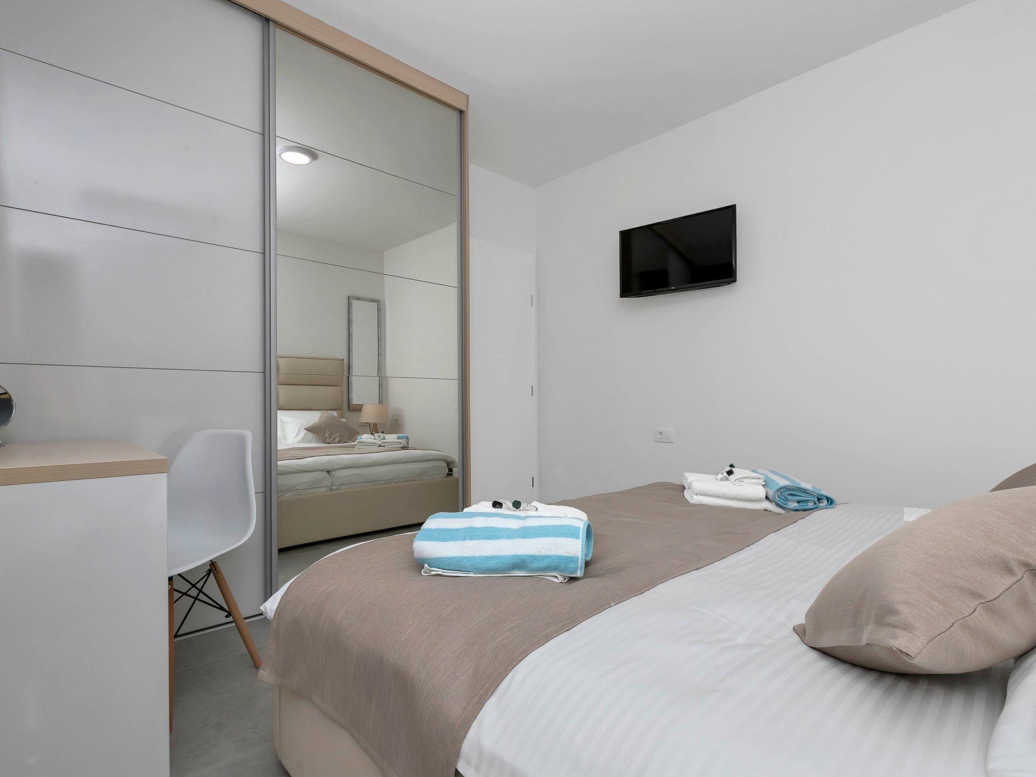 The villa's location in Veliko Brdo rewards guests with not only stunning sea views but also convenient access to the beach, just a 1300m walk away. For those bringing furry friends, a dog beach is located within 2000m. Essential amenities are well within reach, with the nearest grocery store only 500m away and the town center 2000m from the villa, making it easy to immerse oneself in the local culture and cuisine.