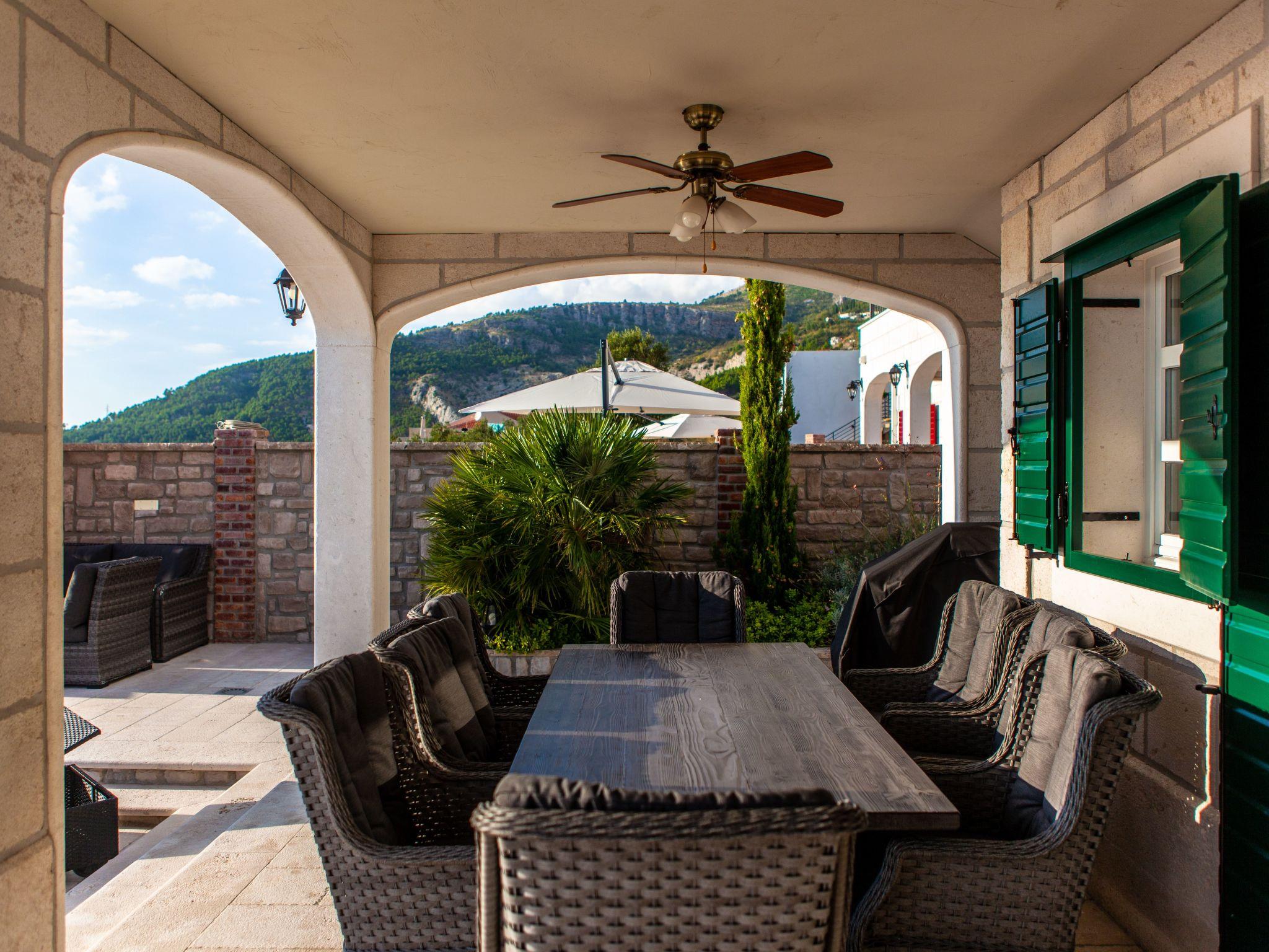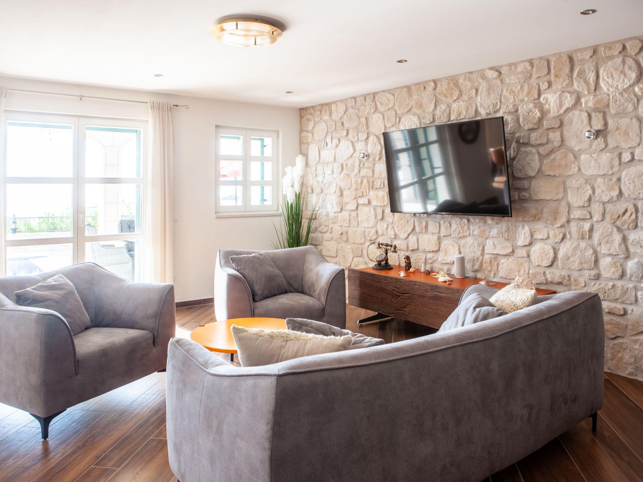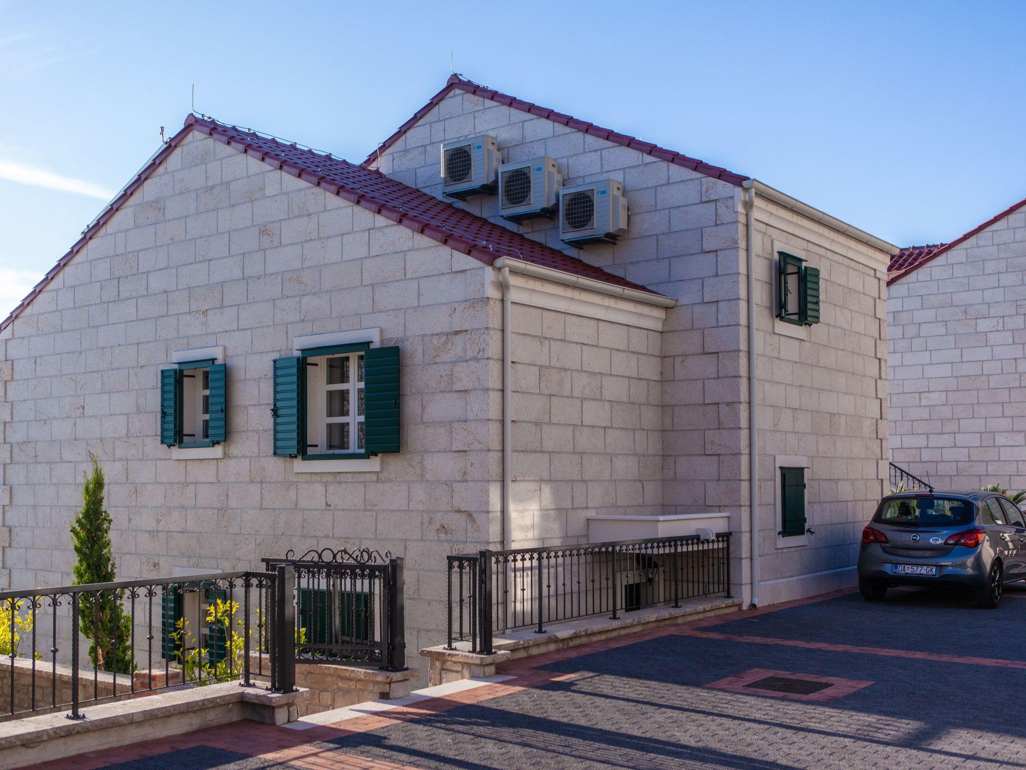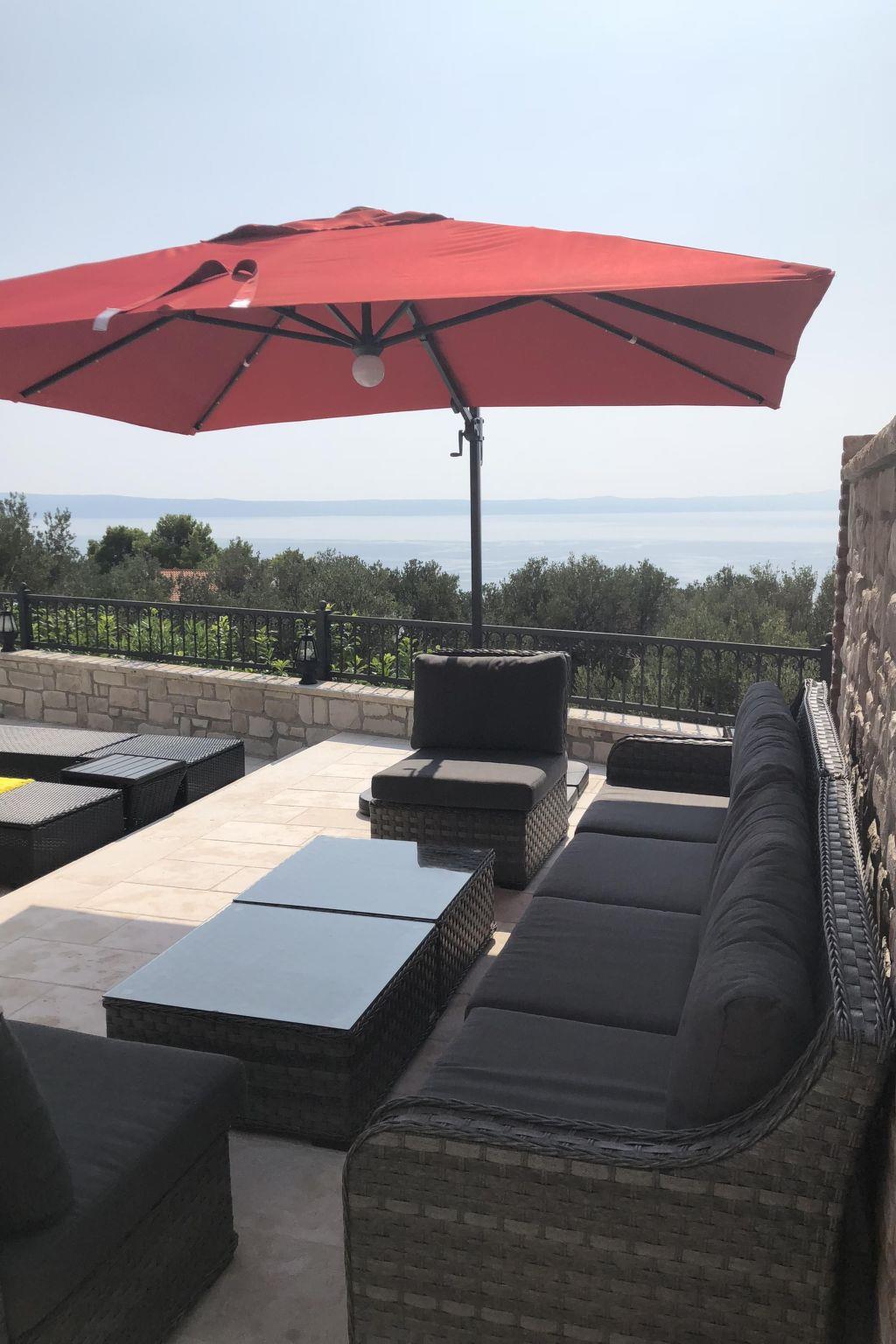 This villa has a marvellous stone terrace, a kitchen with all the necessary appliances. Each bedroom has its own bathroom, the bedrooms are furnished with high-quality box-spring beds; the studio bedroom also has a bathroom with bathtub. Three bedrooms have balconies and/or terrace access with unique sea views. "Tradition meets modernity": Villa Romeo is a luxurious, TOP equipped villa, built in traditional style, which was only completed in 2018. Here you will find the beauty of Dalmatia with everything that goes with it. Each bedroom is equipped with a large double bed. In total there are 8 sleeping possibilities. The total living space of the villa is 218 square metres. On the ground floor you will find a spacious living room with an open-plan kitchen and a dining table for up to 8 people. There is also a small WC with washing machine and dryer on the ground floor. From the living room or the kitchen, you can easily access the covered terrace, which also has an impressive dining table. On the 1st floor there are 3 bedrooms with en-suite bathrooms and a wonderful sun terrace. On the 2nd floor/attic floor is the 4th bedroom with bathroom and private balcony.