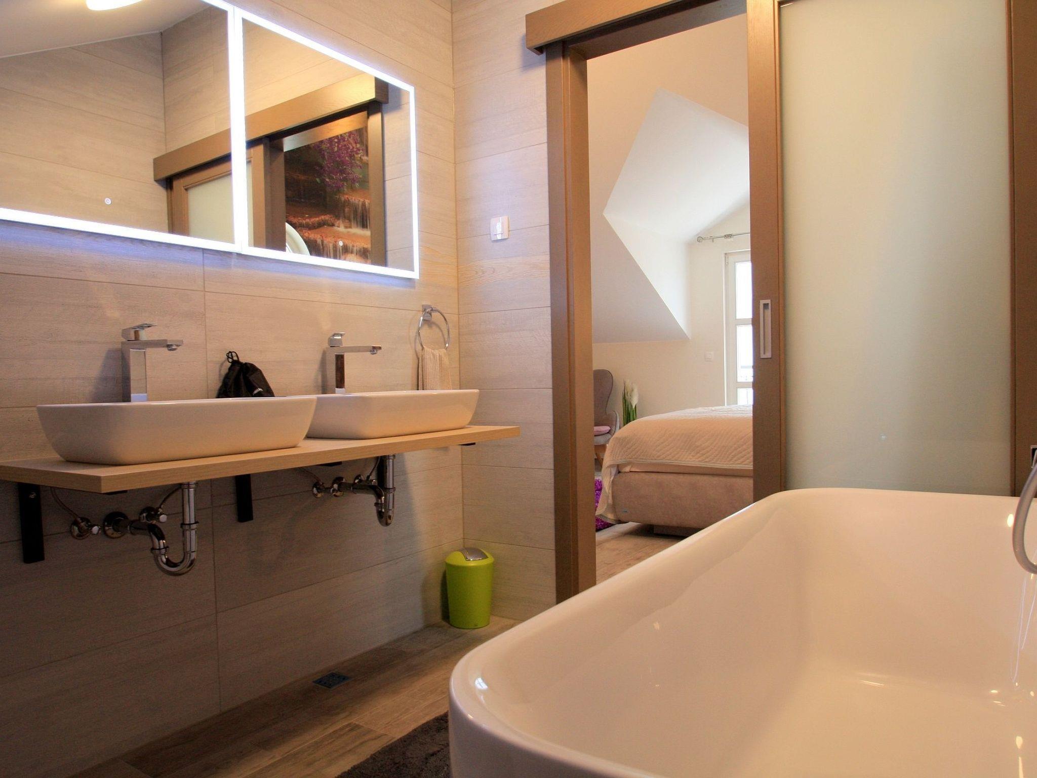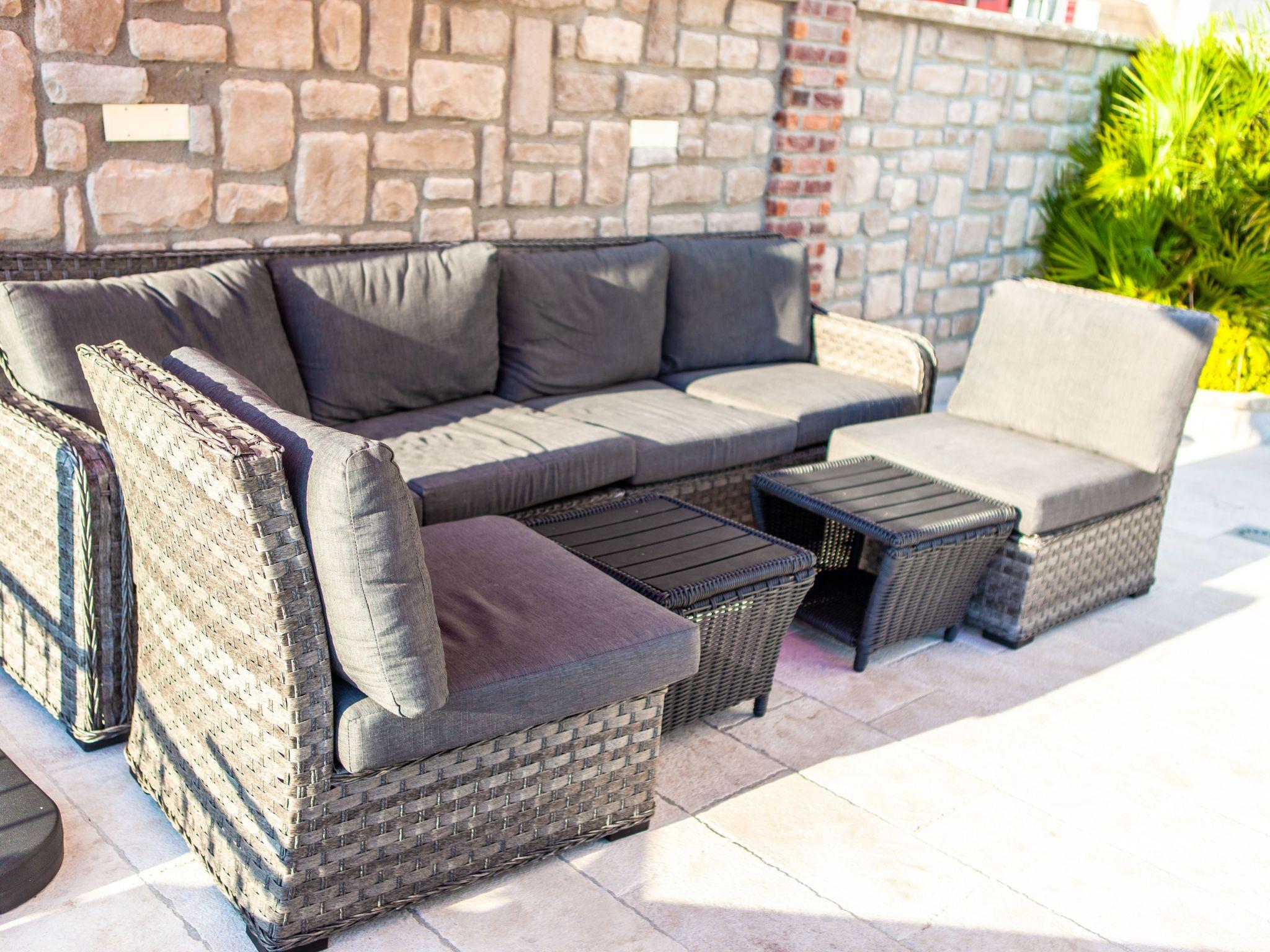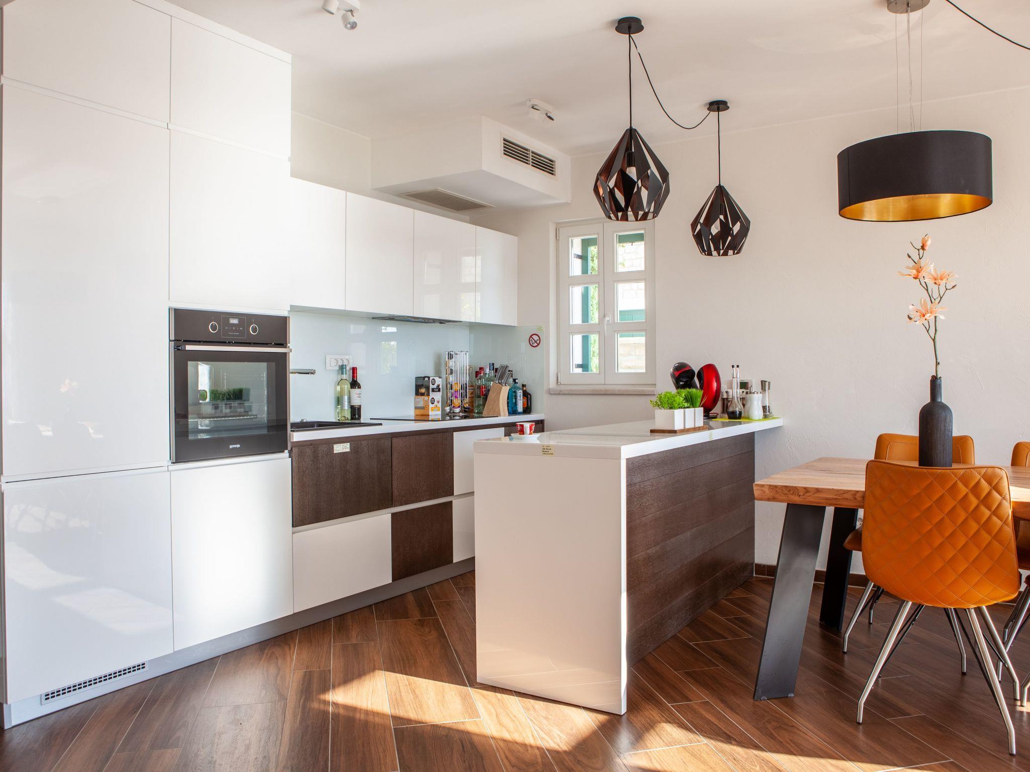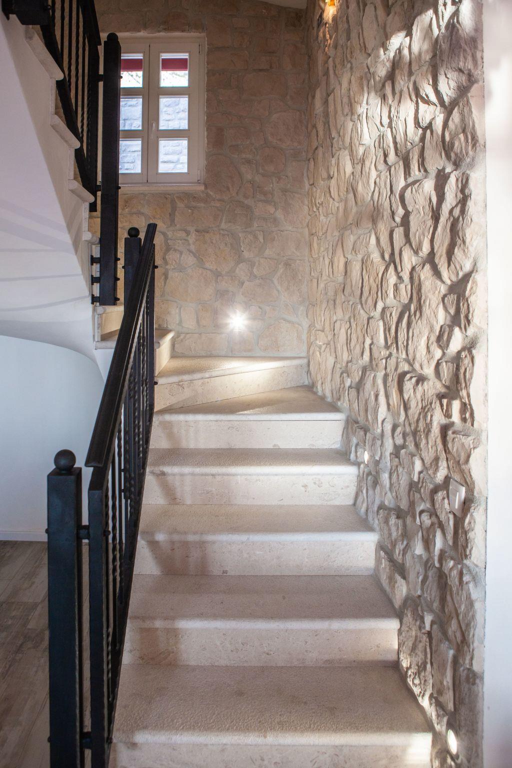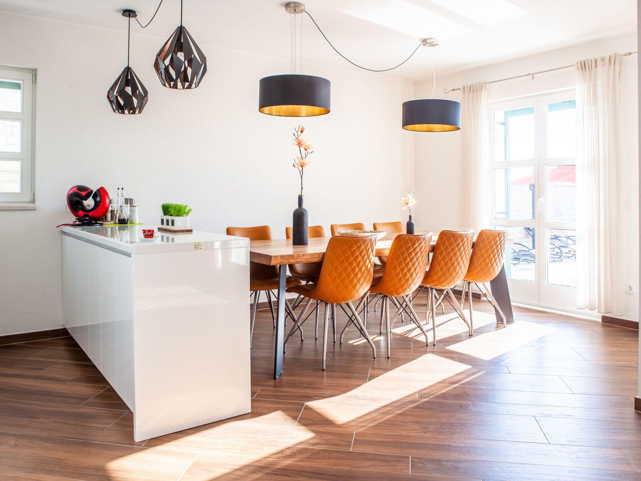 This villa has a marvellous stone terrace, a kitchen with all the necessary appliances. Each bedroom has its own bathroom, the bedrooms are furnished with high-quality box-spring beds; the studio bedroom also has a bathroom with bathtub. Three bedrooms have balconies and/or terrace access with unique sea views. "Tradition meets modernity": Villa Romeo is a luxurious, TOP equipped villa, built in traditional style, which was only completed in 2018. Here you will find the beauty of Dalmatia with everything that goes with it. Each bedroom is equipped with a large double bed. In total there are 8 sleeping possibilities. The total living space of the villa is 218 square metres. On the ground floor you will find a spacious living room with an open-plan kitchen and a dining table for up to 8 people. There is also a small WC with washing machine and dryer on the ground floor. From the living room or the kitchen, you can easily access the covered terrace, which also has an impressive dining table. On the 1st floor there are 3 bedrooms with en-suite bathrooms and a wonderful sun terrace. On the 2nd floor/attic floor is the 4th bedroom with bathroom and private balcony.