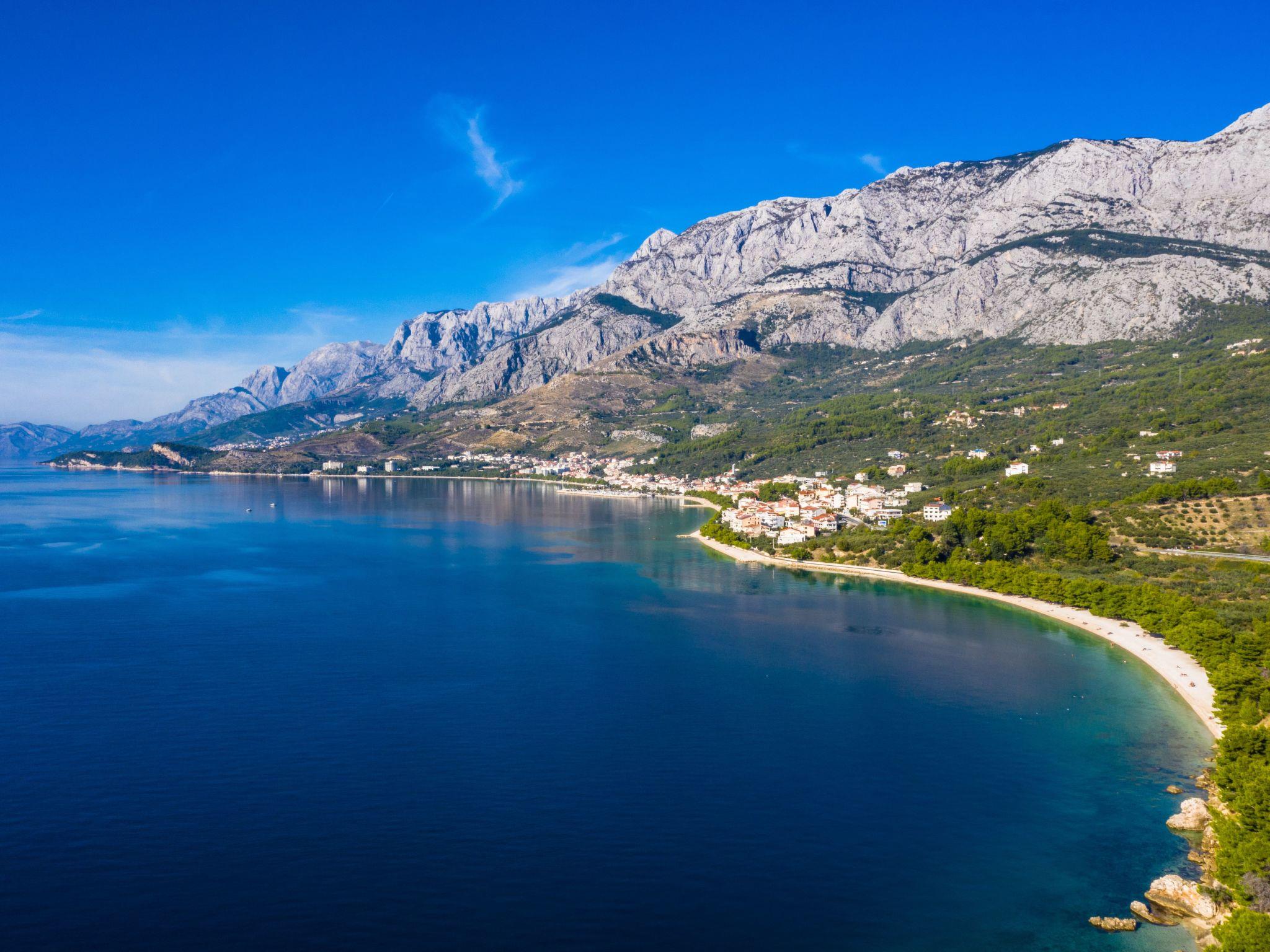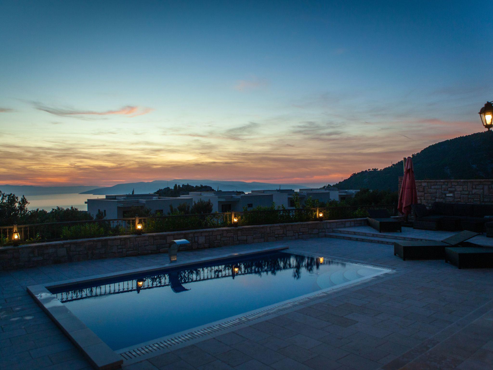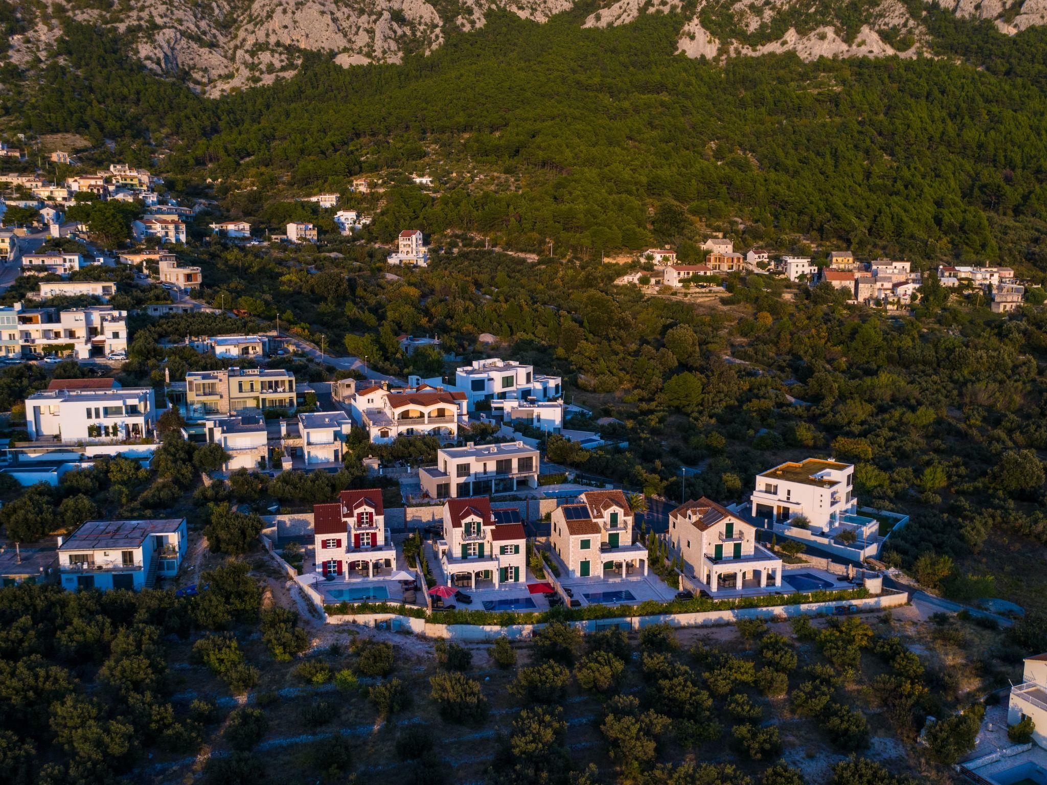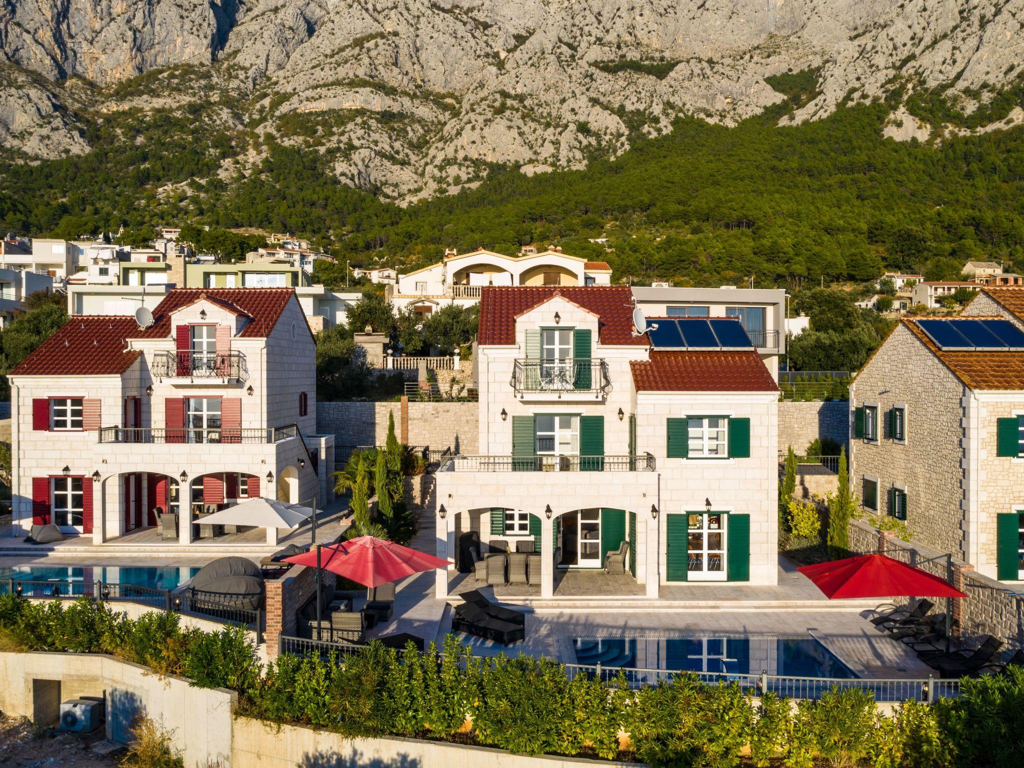 Our stylish, individually furnished private villa with pool and several terraces offers everything you need for an elegant dream holiday in Croatia: Our resort is only a few minutes' drive (10 min.) from the picturesque old town of Makarska, idyllic beaches (3 min.) and the impressive Biokovo coastal mountain range. The hillside property with fantastic views of the Makarska Riviera - the Croatian seaside coast par excellence - is equally at home for those seeking peace and quiet, families and participants in yoga retreats, seminars, coaching sessions and corporate events. Discover the perfect Mediterranean hideaway to relax, be inspired and recharge your batteries. This villa offers a heated outdoor pool and free Wi-Fi. You can enjoy a breathtaking 180 degree view of the town of Makarska, the islands of Hvar and Brac, and Split. Behind the villa is the Biokovo mountain range, which rises to an altitude of 1762 metres.