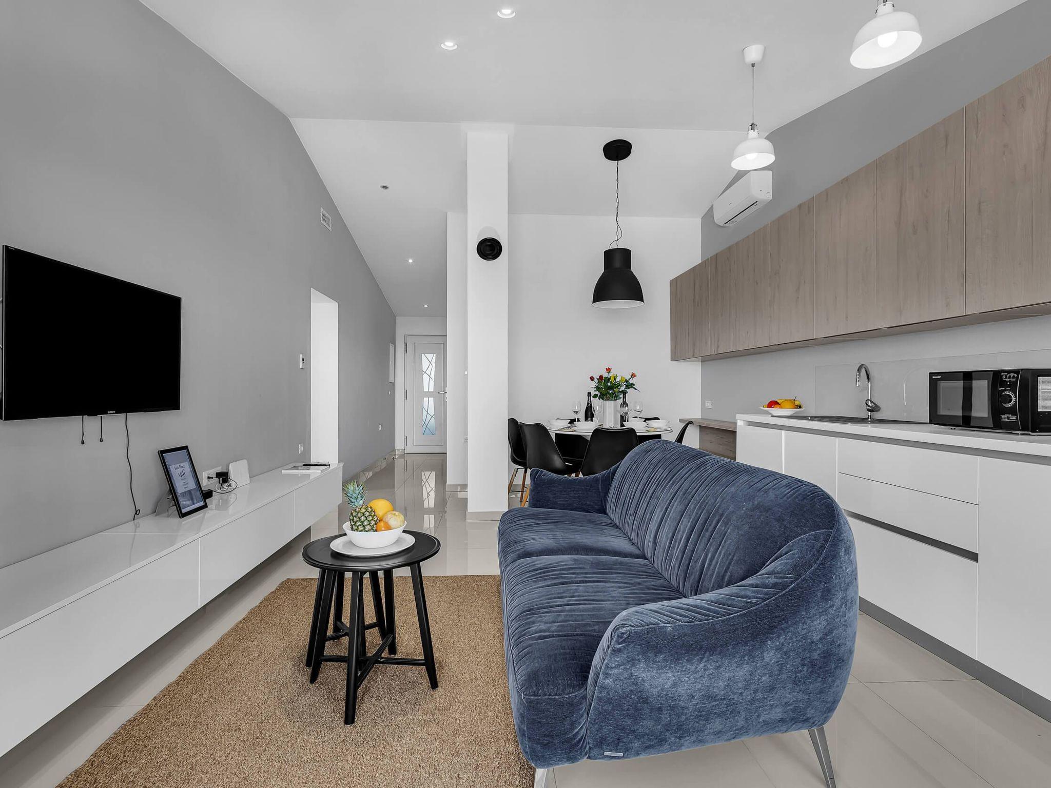 Inside, the apartment caters to your every need with a thoughtfully equipped kitchen, allowing you to prepare delicious meals with ease, complemented by amenities such as a gas cooker, coffee machine, electric kettle, and dishwasher. Stay connected and comfortable throughout your stay with free Wi-Fi and air conditioning available in every room. For added convenience, a washing machine is provided for your sole use, ensuring a worry-free holiday.