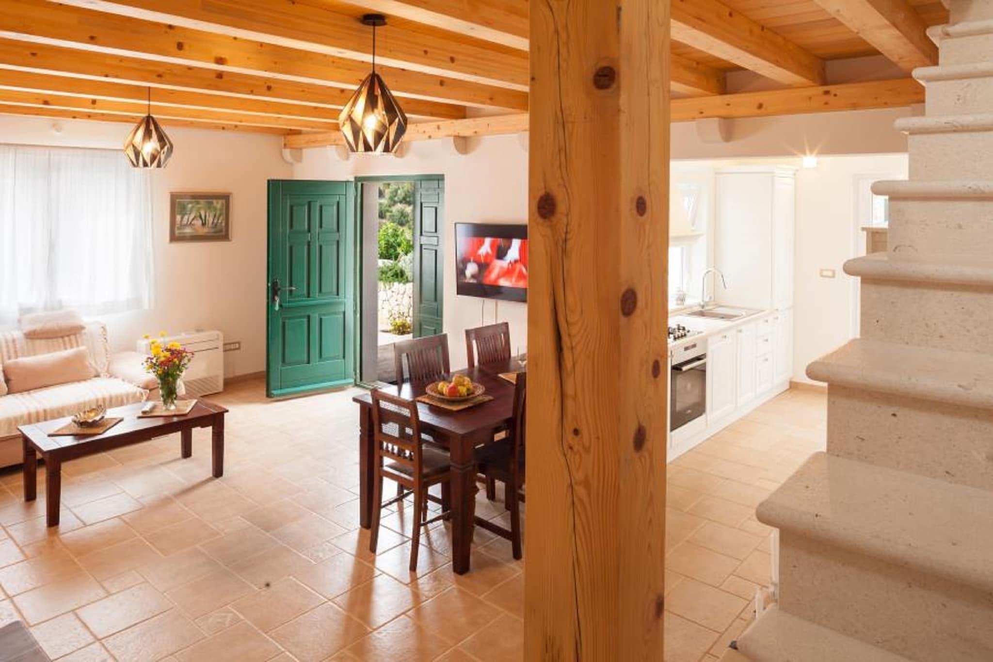 Stueetage: (åbent køkken(elkedel, brødrister, komfur, kaffemaskine(espresso), ovn, opvaskemaskine , køle-fryseskab), stue / spisestue(dobbeltsovesofa(200 x 200 cm), Fjernsyn(fladskærm, parabol), spisebord, stereoanlæg), toilet, klimaanlæg) På 1. etage: (Soveværelse med badeværelse(køjeseng), balkon, klimaanlæg) Bubble bath, patio, tagterrasse, have, havepejs