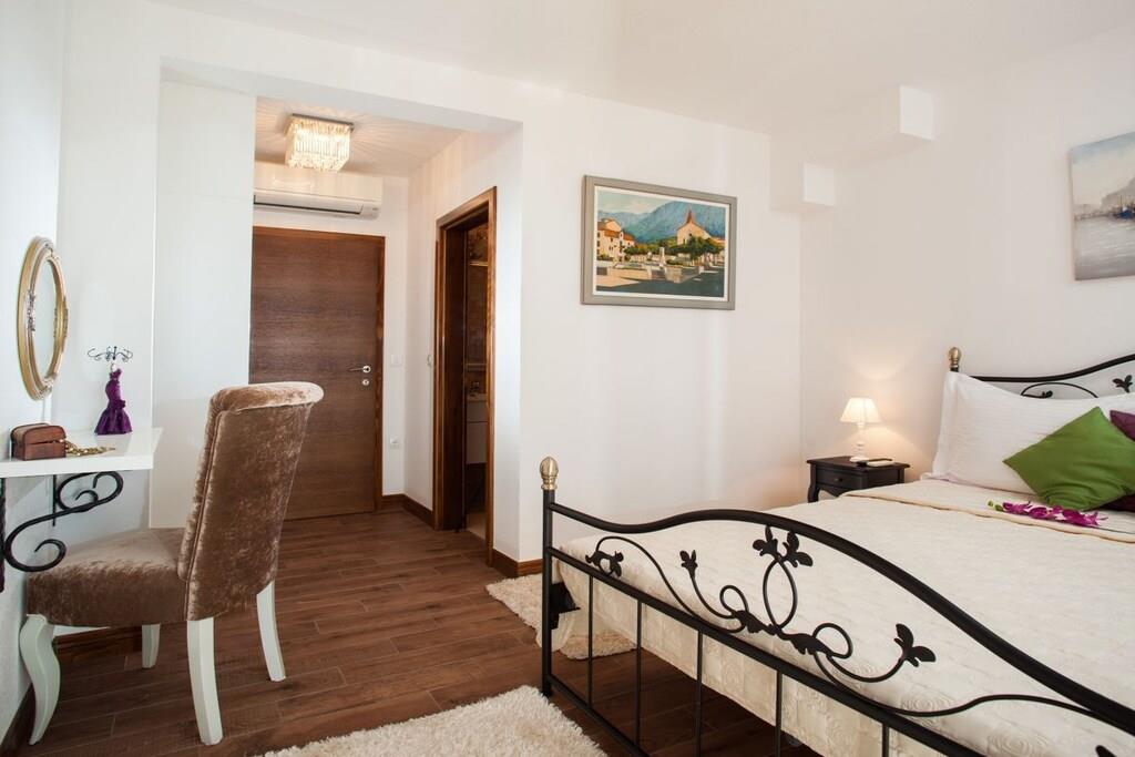Unser Ferienhaus liegt im Zentrum von Dalmatien, über der Perle der Adria. Das Ferienhaus verfügt über einen großen beheizbaren Pool und einen Garten mit einem offenem Kamin. Im ersten Stock sind zwei Schlafzimmer mit Doppelbett und eigenem Badezimmer. Das Wohnzimmer mit Küche und Esszimmer befinden sich im zweitem Stock, wo sich ebenfalls ein Badezimmer befindet. Das Wohnzimmer bietet darüber hinaus ein Zustellbett für eine fünfte Person. Alle Zimmer haben Balkone mit einem wundervollen Blick auf das Meer. Eine Klimaanlage, Sat-Led TV und Wi-Fi Internet gibt es in allem Zimmern. Unsere Küche ist mit 4 Kochplatten, 1 Backofen, 1 Geschirrspüler, 1 Mikrowelle, 1 Tiefkühler und 1 elektrischen Kaffeemaschine ausgestattet.