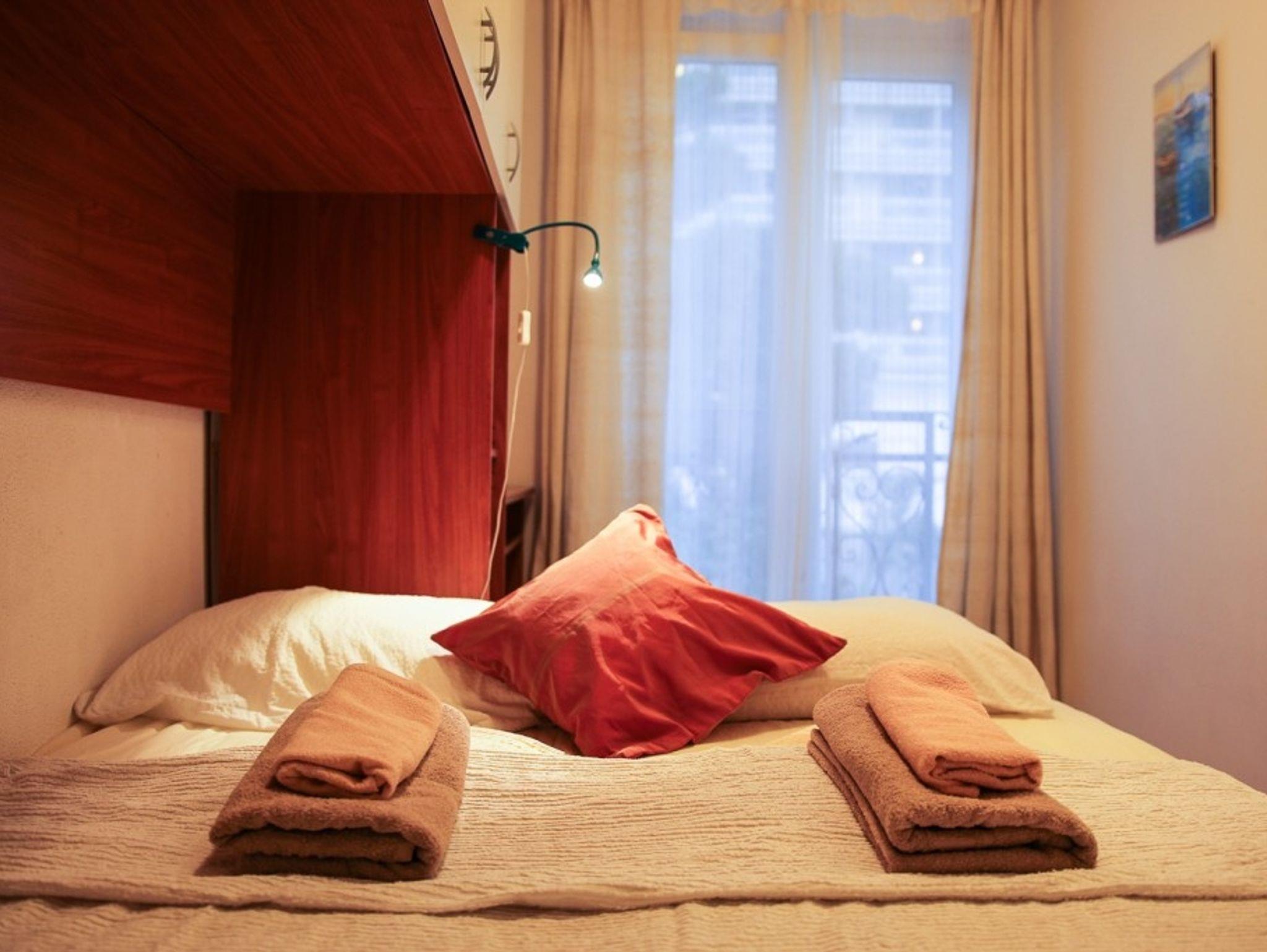 Ferienwohnung bietet Platz für 4 Gäste. Die Betten sind in Schlafzimmern, die es 2 gibt, innerhalb einer Gesamtfläche von 47m2, angeordnet. Die Gäste haben einen eigenen Balkon zur Verfügung, auf der sie in warmen Sommernächten genießen können. Es ist erlaubt, Speisen auf dem Gemeinschafts-Grill vorzubereiten. IM PREIS INBEGRIFFEN: Kurtaxe, Endreinigung, Klimatisierung, Internet, Kinderbett, Bügeleisen, Bügelbrett, Föhn. UNVERBINDLICHE ZUSÄTZLICHE KOSTEN: Wäschewaschen (10,00 € Waschen), Zusatzbett (10,00 € pro Nacht). Die Verfügbarkeit zusätzlicher Dienstleistungen in Ihrem reservierten Termin und die Preise derselben (falls nicht aufgeführt) müssen im Voraus überprüft werden. Zusätzliche Dienstleistungen die in der Zahlungsaufforderung nicht aufgeführt sind werden direkt beim Vermieter bezahlt, angenommen der Gast nutzt auch diese. Ermäßigung auf den Grundpreis: Gratistag 14=13 (bei einem Aufenthalt von 14 Tagen oder mehr erhalten Sie einen Gratistag für den Aufenthalt bis 31.12.26).