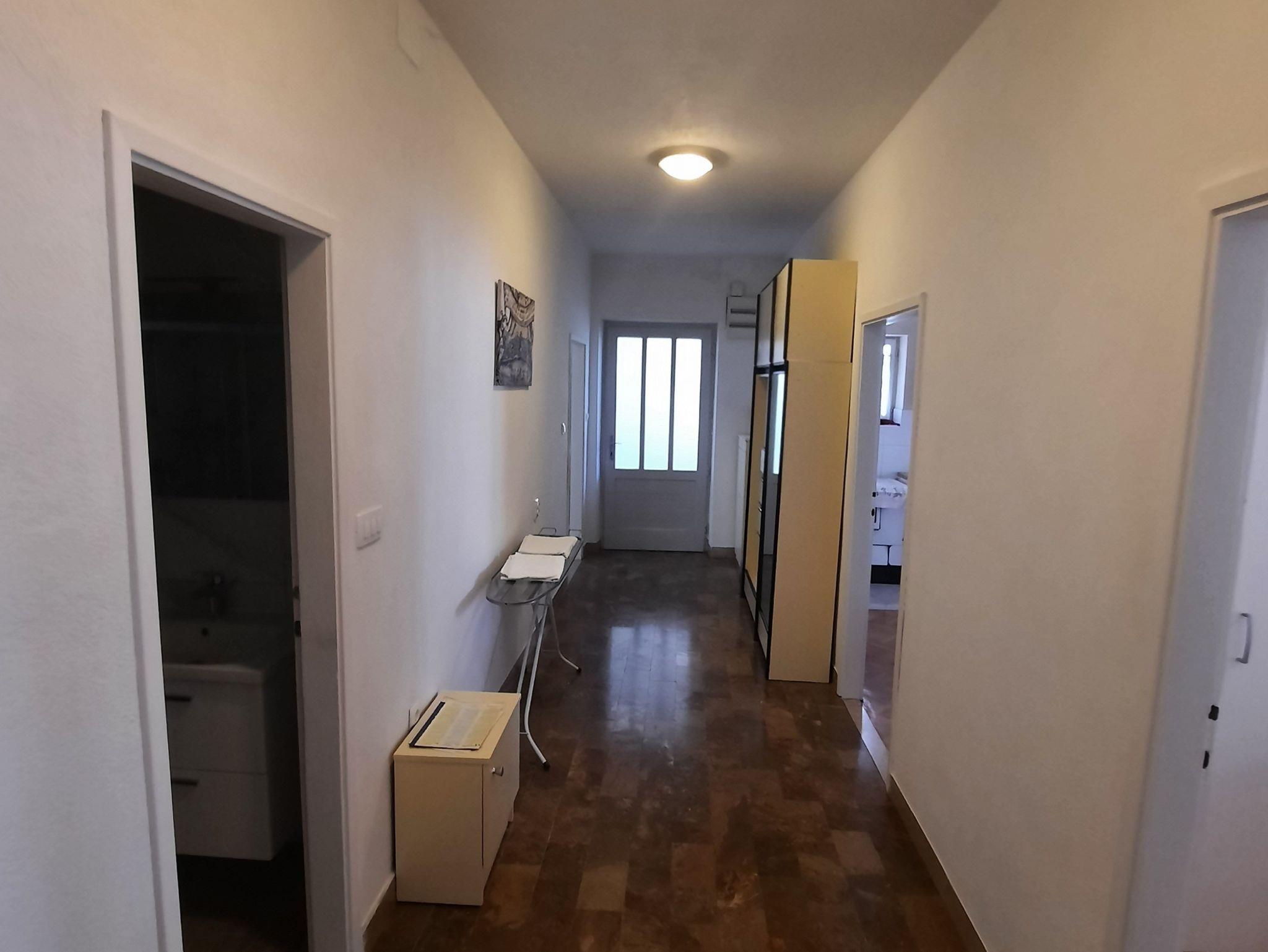 Ferienwohnung bietet Platz für 8 Gäste. Die Betten sind in Schlafzimmern, die es 4 gibt, innerhalb einer Gesamtfläche von 106m2, angeordnet. Die Gäste haben einen eigenen Balkon zur Verfügung, auf der sie in warmen Sommernächten genießen können. Das Apartment bietet Meerblick. Es ist erlaubt, Speisen auf dem Gemeinschafts-Grill vorzubereiten. IM PREIS INBEGRIFFEN: Kurtaxe, Endreinigung, Klimatisierung, Parkplatz, Internet, Bügeleisen, Bügelbrett, Föhn, tragbarer Grill. VERBINDLICHE ZUSÄTZLICHE KOSTEN: Aufzahlung für Kurzaufenthalte (prozentualer Zuschlag pro Nächtigungsanzahl: 30% - 1, 20% - 2, 10% - 3). UNVERBINDLICHE ZUSÄTZLICHE KOSTEN: Zusatzbett (15,00 € pro Nacht). Die Verfügbarkeit zusätzlicher Dienstleistungen in Ihrem reservierten Termin und die Preise derselben (falls nicht aufgeführt) müssen im Voraus überprüft werden. Zusätzliche Dienstleistungen die in der Zahlungsaufforderung nicht aufgeführt sind werden direkt beim Vermieter bezahlt, angenommen der Gast nutzt auch diese. Ermäßigung auf den Grundpreis: Gratistag 14=13 (bei einem Aufenthalt von 14 Tagen oder mehr erhalten Sie einen Gratistag für den Aufenthalt bis 31.12.26).