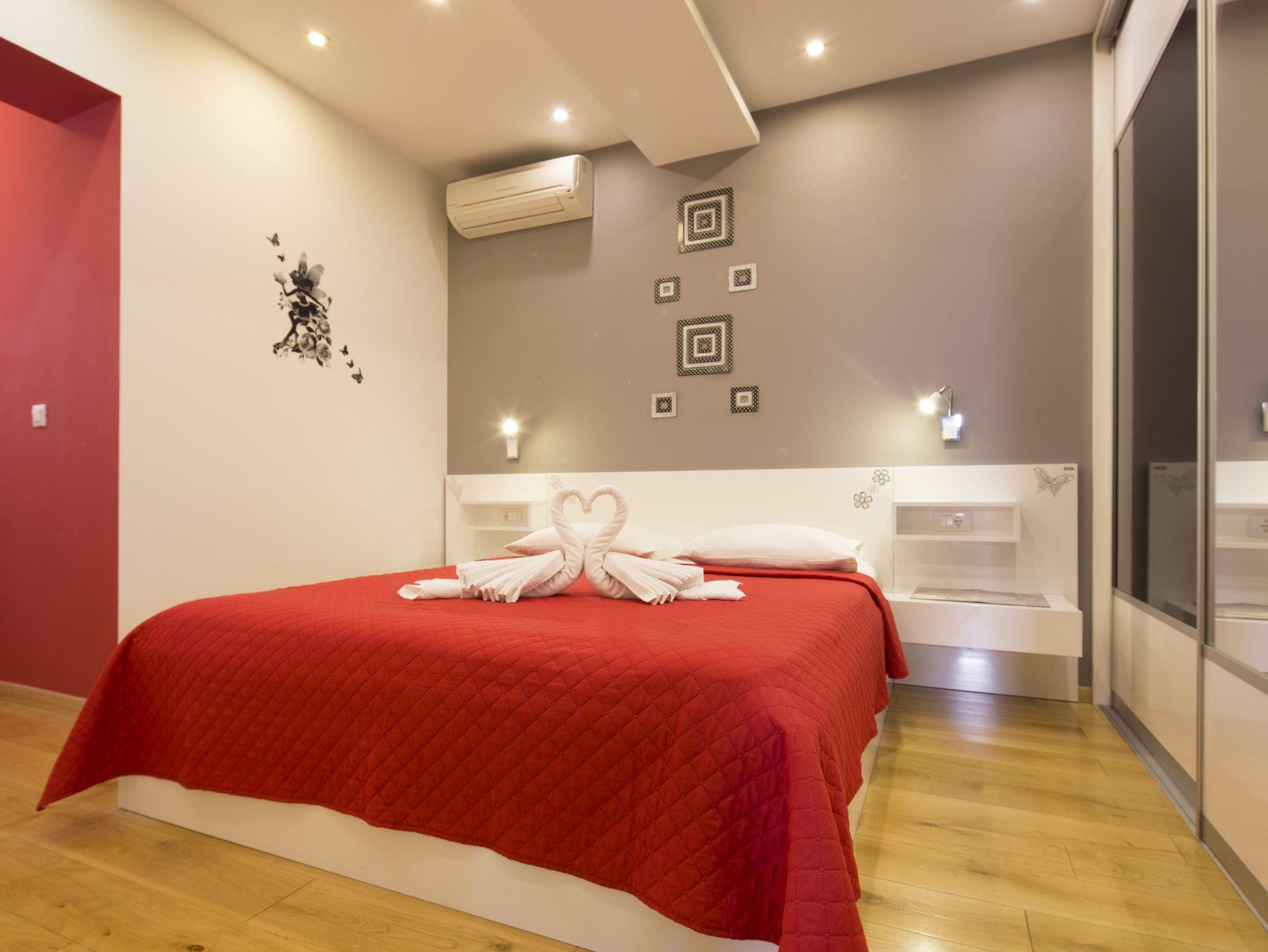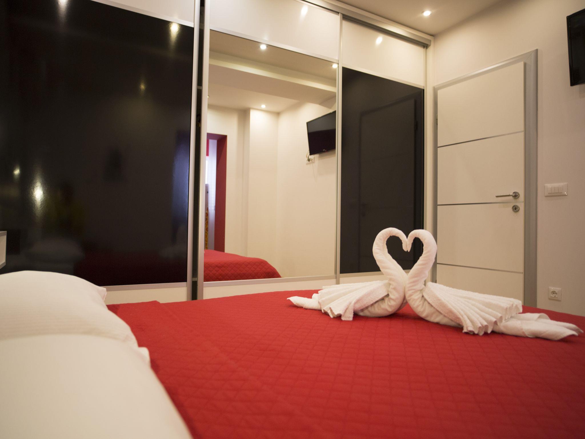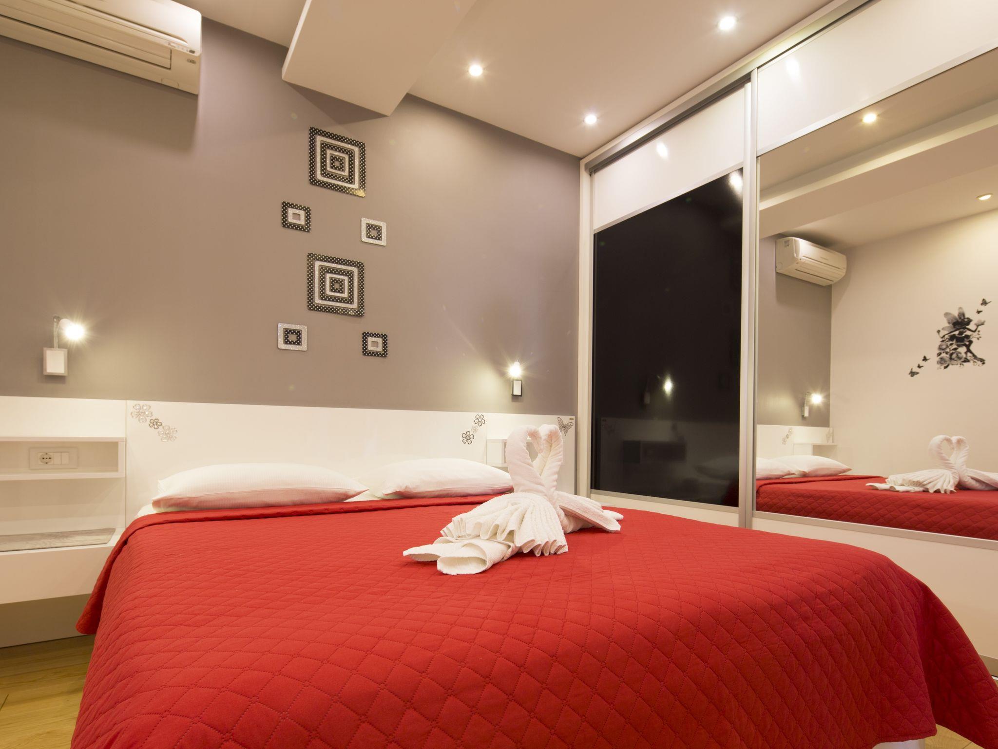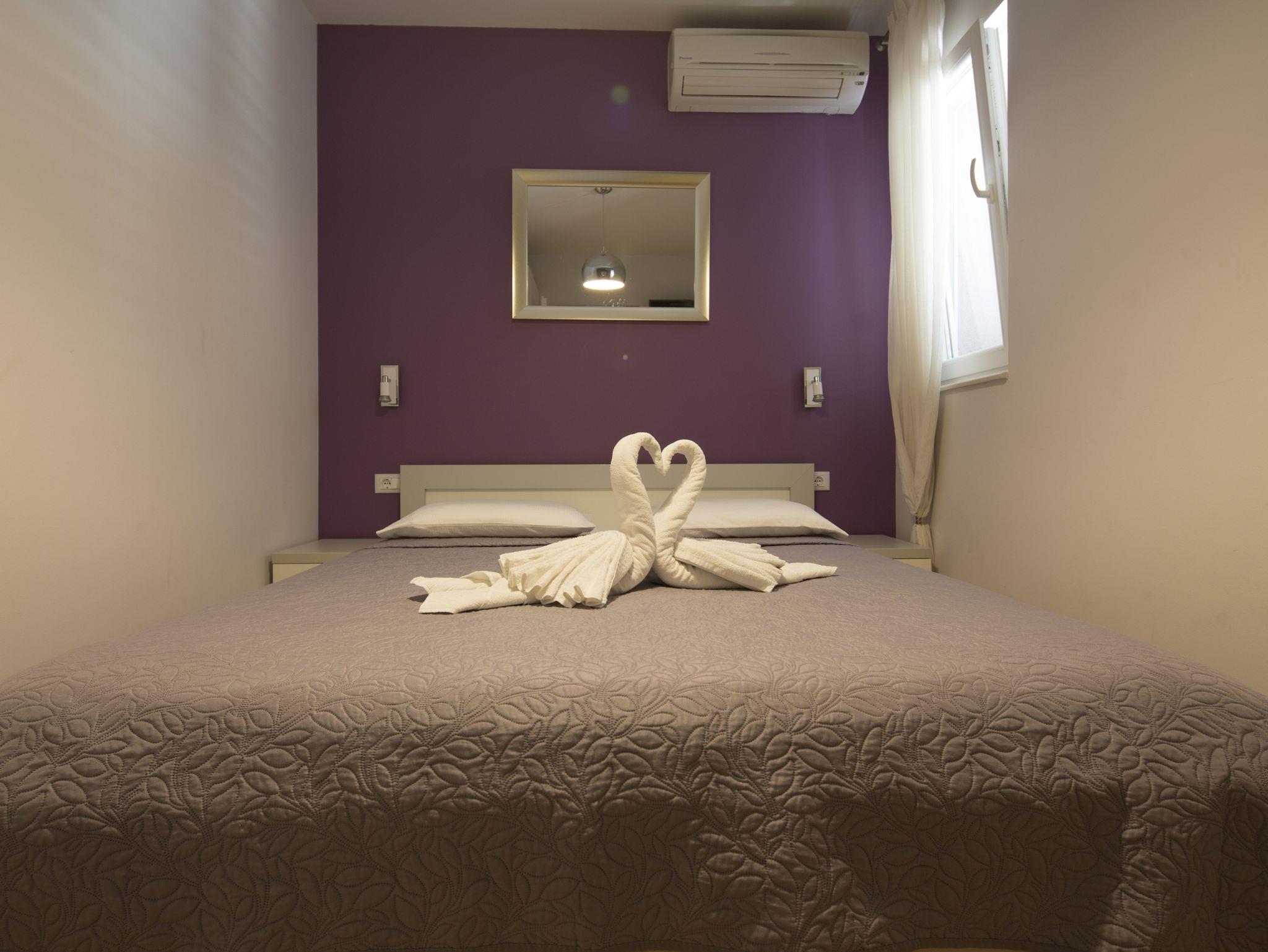Ferienwohnung bietet Platz für 5 Gäste. Die Betten sind in Schlafzimmern, die es 2 gibt, und in Wohnzimmer, innerhalb einer Gesamtfläche von 59m2, angeordnet. Die Gäste haben eine eigene Terrasse zur Verfügung, auf der sie in warmen Sommernächten genießen können. IM PREIS INBEGRIFFEN: Kurtaxe, Endreinigung, Klimatisierung, Parkplatz, Internet, Kinderbett, Bügeleisen, Bügelbrett, Föhn. Die Verfügbarkeit zusätzlicher Dienstleistungen in Ihrem reservierten Termin und die Preise derselben (falls nicht aufgeführt) müssen im Voraus überprüft werden. Zusätzliche Dienstleistungen die in der Zahlungsaufforderung nicht aufgeführt sind werden direkt beim Vermieter bezahlt, angenommen der Gast nutzt auch diese. Ermäßigung auf den Grundpreis: Gratistag 14=13 (bei einem Aufenthalt von 14 Tagen oder mehr erhalten Sie einen Gratistag für den Aufenthalt bis 31.12.26).
