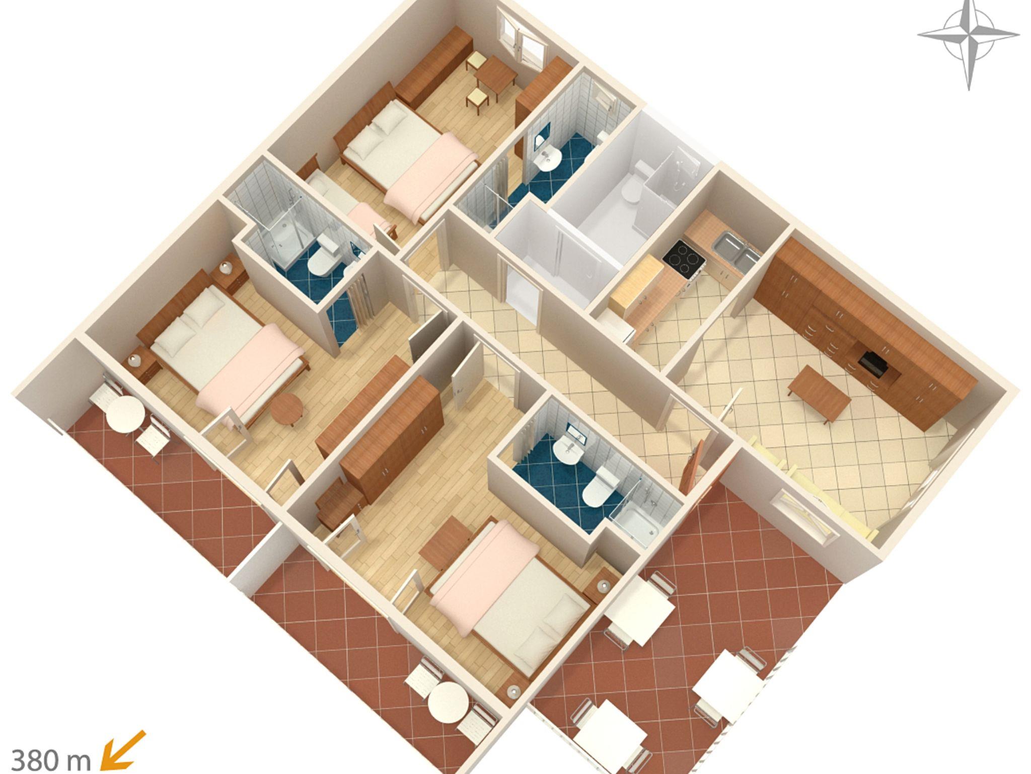 Ferienwohnung bietet Platz für 7 Gäste. Die Betten sind in Schlafzimmern, die es 3 gibt, innerhalb einer Gesamtfläche von 79m2, angeordnet. Die Gäste haben eine eigene Terrasse zur Verfügung, auf der sie in warmen Sommernächten genießen können. Es ist erlaubt, Speisen auf dem Gemeinschafts-Grill vorzubereiten. In der Unterkunftseinheit besteht die Möglichkeit des Mitbringens von Haustieren, und die Dienstleistung ist im Preis der Unterkunft enthalten. IM PREIS INBEGRIFFEN: Kurtaxe, Endreinigung, Klimatisierung, Zentralheizung, Parkplatz, Internet, Haustiere, Kinderbett, Bügeleisen, Föhn. VERBINDLICHE ZUSÄTZLICHE KOSTEN: Aufzahlung für Kurzaufenthalte (prozentualer Zuschlag pro Nächtigungsanzahl: 30% - 1, 20% - 2, 10% - 3). UNVERBINDLICHE ZUSÄTZLICHE KOSTEN: Wäschewaschen (5,00 € Waschen). Die Verfügbarkeit zusätzlicher Dienstleistungen in Ihrem reservierten Termin und die Preise derselben (falls nicht aufgeführt) müssen im Voraus überprüft werden. Zusätzliche Dienstleistungen die in der Zahlungsaufforderung nicht aufgeführt sind werden direkt beim Vermieter bezahlt, angenommen der Gast nutzt auch diese. Ermäßigung auf den Grundpreis: Gratistag 28=25 (bei einem Aufenthalt von 28 oder mehr Tagen erhalten Sie 3 kostenlose Tage für den Aufenthalt bis 31.12.26).