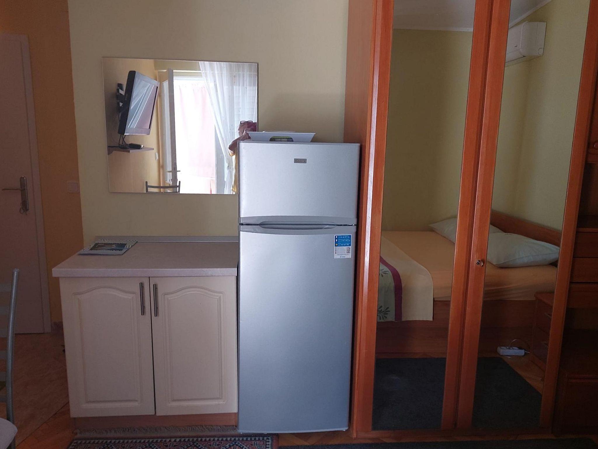 Studio bietet Platz für 2 Gäste. Die Betten sind in Schlafzimmern, die es 1 gibt, innerhalb einer Gesamtfläche von 15m2, angeordnet. Die Gäste haben einen eigenen Balkon zur Verfügung, auf der sie in warmen Sommernächten genießen können. Das Studio-Apartment bietet Meerblick. In der Unterkunftseinheit besteht die Möglichkeit des Mitbringens von Haustieren, und die Dienstleistung ist im Preis der Unterkunft enthalten. IM PREIS INBEGRIFFEN: Kurtaxe, Endreinigung, Klimatisierung, Parkplatz, Internet, Haustiere, Bügeleisen, Bügelbrett, Föhn. VERBINDLICHE ZUSÄTZLICHE KOSTEN: Aufzahlung für Kurzaufenthalte (prozentualer Zuschlag pro Nächtigungsanzahl: 30% - 1, 20% - 2, 10% - 3). Die Verfügbarkeit zusätzlicher Dienstleistungen in Ihrem reservierten Termin und die Preise derselben (falls nicht aufgeführt) müssen im Voraus überprüft werden. Zusätzliche Dienstleistungen die in der Zahlungsaufforderung nicht aufgeführt sind werden direkt beim Vermieter bezahlt, angenommen der Gast nutzt auch diese. Ermäßigung auf den Grundpreis: Gratistag 14=13 (bei einem Aufenthalt von 14 Tagen oder mehr erhalten Sie einen Gratistag für den Aufenthalt bis 31.12.26).