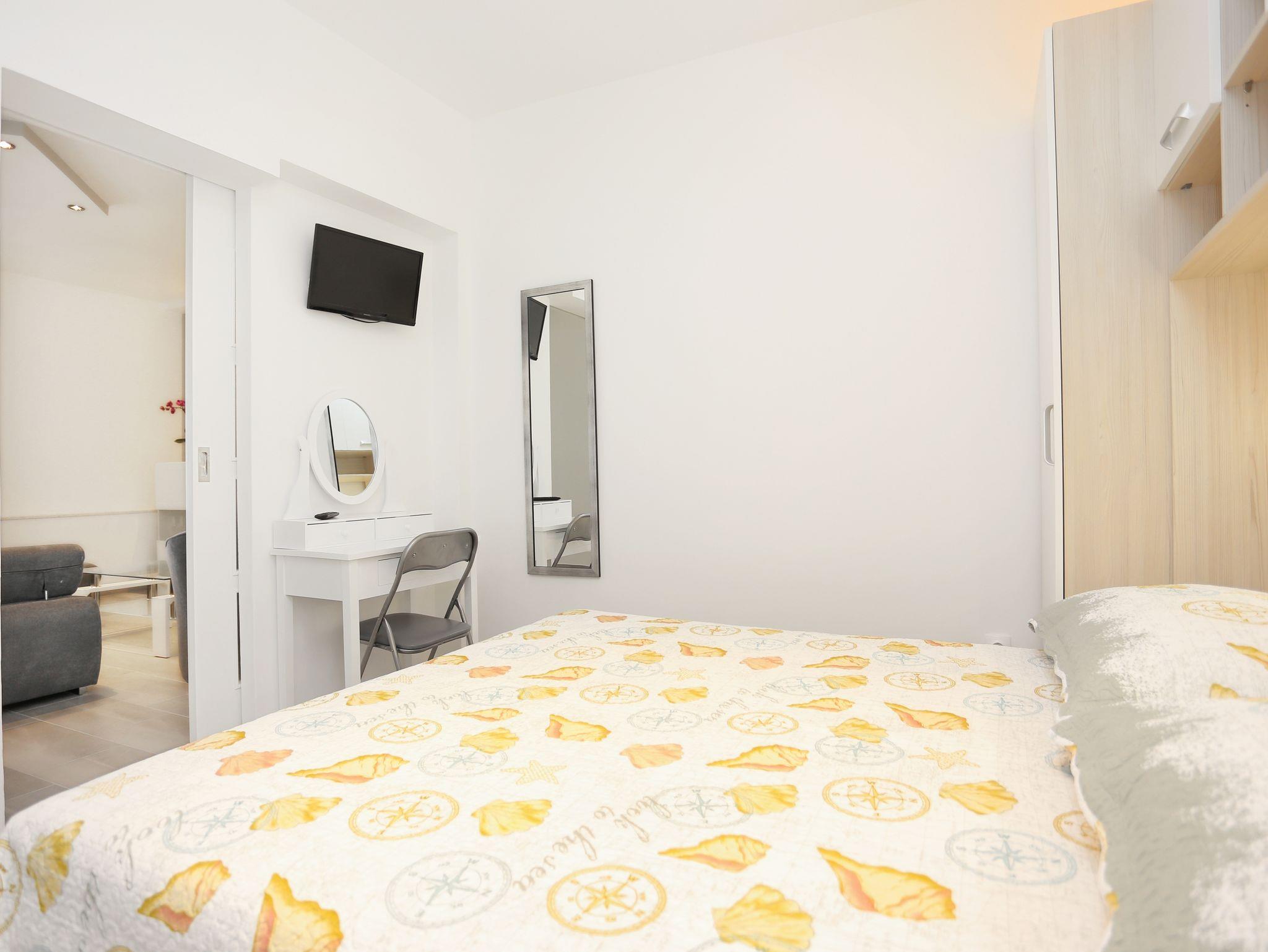 Ferienwohnung bietet Platz für 3 Gäste. Die Betten sind in Schlafzimmern, die es 1 gibt, und in Wohnzimmer, innerhalb einer Gesamtfläche von 56m2, angeordnet. Die Gäste haben einen eigenen Balkon zur Verfügung, auf der sie in warmen Sommernächten genießen können. Das Apartment bietet Meerblick. IM PREIS INBEGRIFFEN: Kurtaxe, Endreinigung, Klimatisierung, Zentralheizung, Parkplatz, Internet, Bügeleisen, Bügelbrett, Föhn. Die Verfügbarkeit zusätzlicher Dienstleistungen in Ihrem reservierten Termin und die Preise derselben (falls nicht aufgeführt) müssen im Voraus überprüft werden. Zusätzliche Dienstleistungen die in der Zahlungsaufforderung nicht aufgeführt sind werden direkt beim Vermieter bezahlt, angenommen der Gast nutzt auch diese.