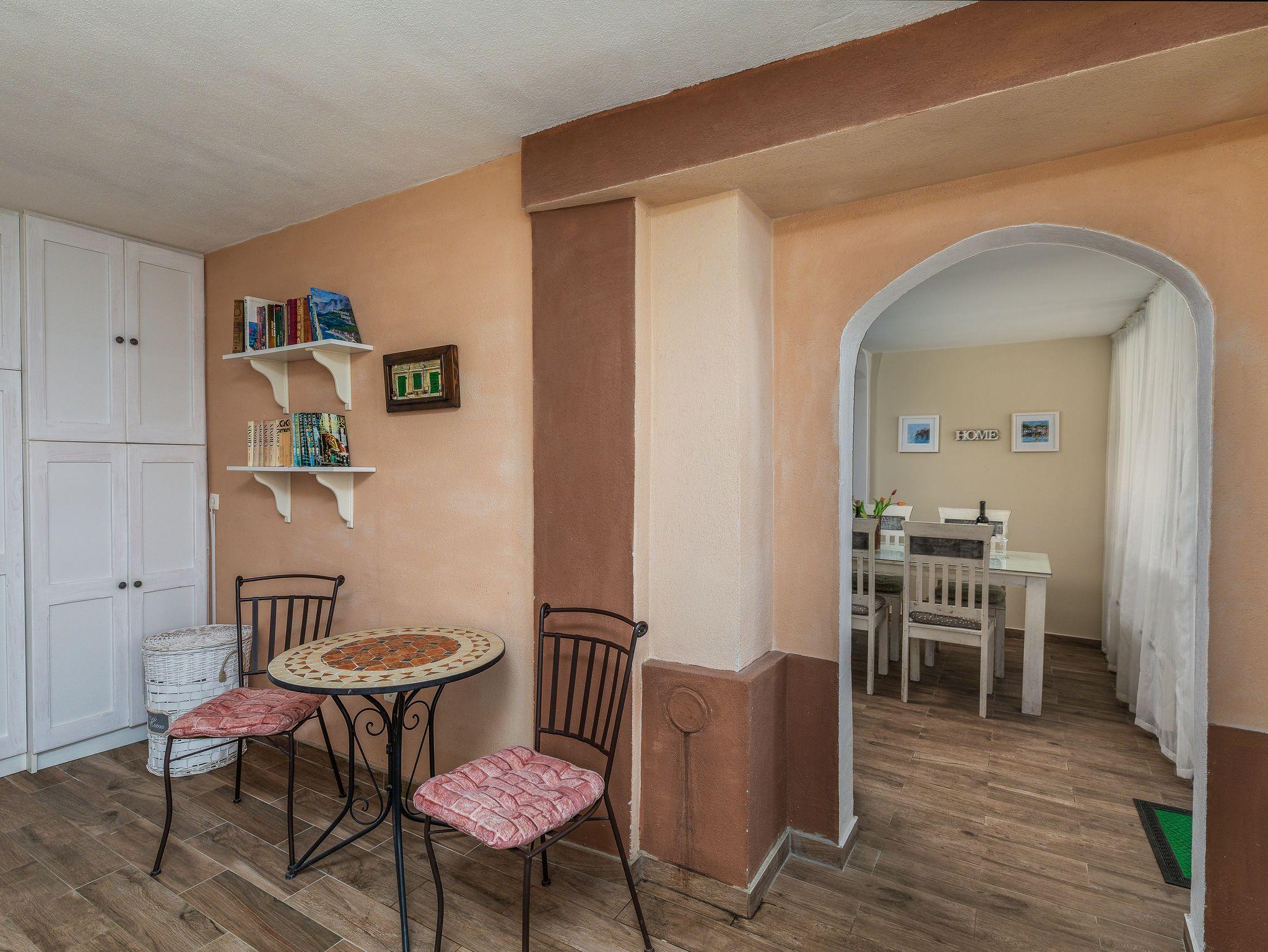 Haus bietet Platz für 6 Gäste. Die Betten sind in Schlafzimmern, die es 3 gibt, innerhalb einer Gesamtfläche von 139m2, angeordnet. Die Gäste haben eine eigene Terrasse zur Verfügung, auf der sie in warmen Sommernächten genießen können. Das Haus bietet Meerblick. Für vollen Genuss und Entspannung gibt es einen privaten Grill für Gäste dieser Unterkunft. Während ihres Aufenthalts können sich Gäste im privaten Schwimmbad entspannen. In der Unterkunftseinheit besteht die Möglichkeit des Mitbringens von Haustieren gegen Aufpreis. IM PREIS INBEGRIFFEN: Kurtaxe, Endreinigung, Klimatisierung, Pool, Internet, Kinderbett, Bügeleisen, Bügelbrett, Föhn. UNVERBINDLICHE ZUSÄTZLICHE KOSTEN: Haustiere (20,00 € pro Nacht). Die Verfügbarkeit zusätzlicher Dienstleistungen in Ihrem reservierten Termin und die Preise derselben (falls nicht aufgeführt) müssen im Voraus überprüft werden. Zusätzliche Dienstleistungen die in der Zahlungsaufforderung nicht aufgeführt sind werden direkt beim Vermieter bezahlt, angenommen der Gast nutzt auch diese. Ermäßigung auf den Grundpreis: Gratistag 21=19 (bei einem Aufenthalt von 21 Tagen oder mehr erhalten Sie 2 Gratistage für den Aufenthalt bis 31.12.26).