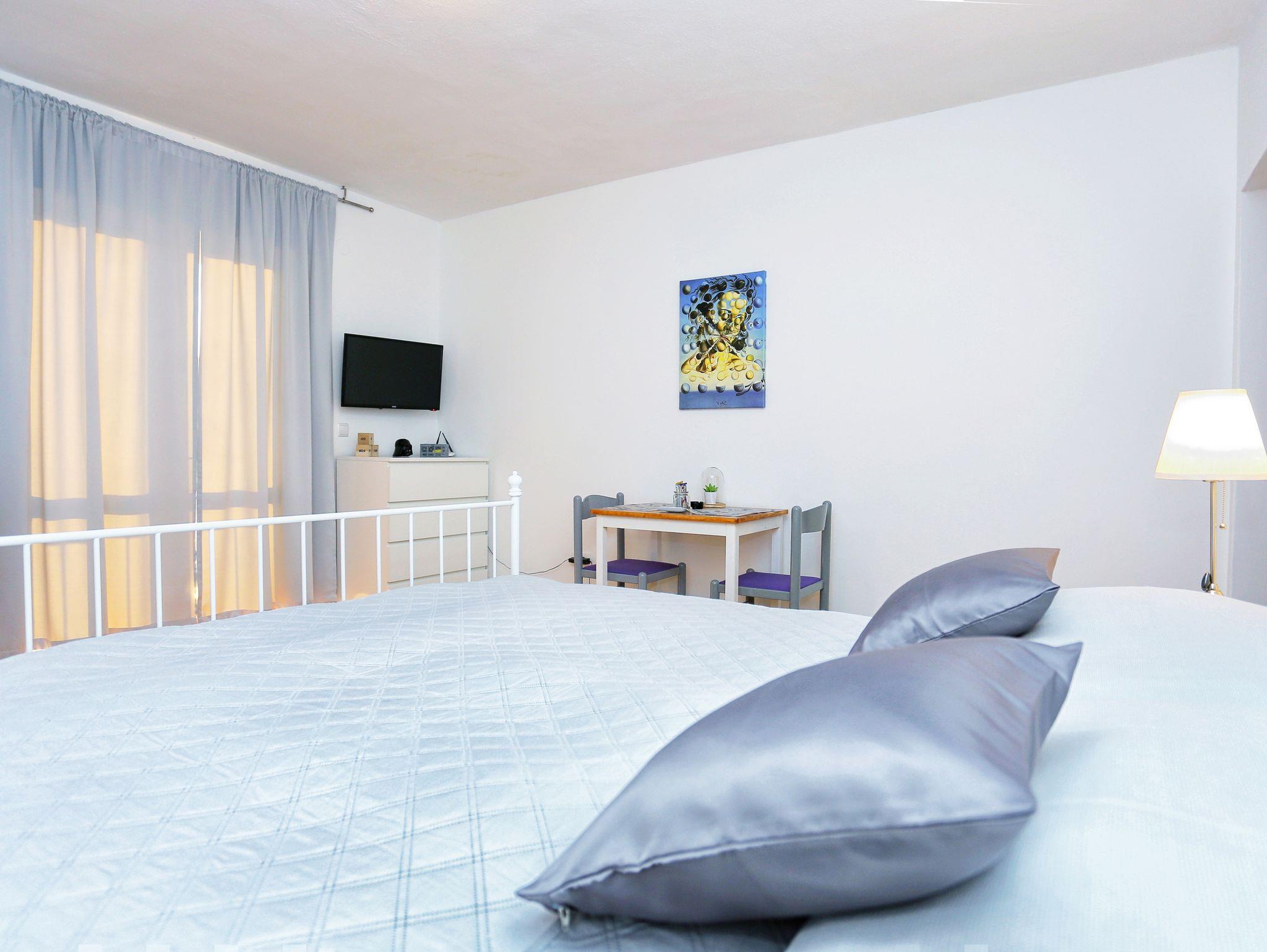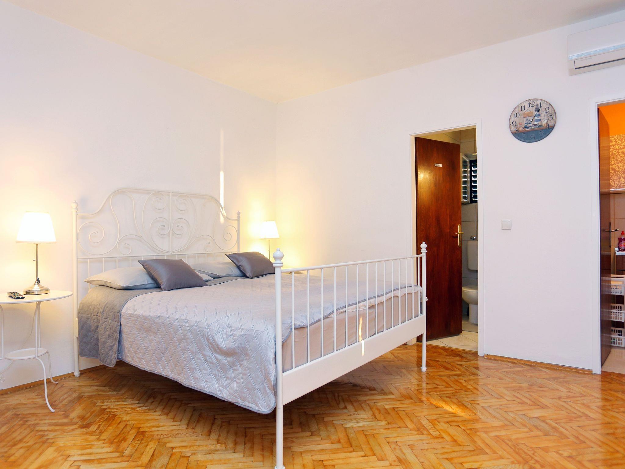 Studio bietet Platz für 2 Gäste. Die Betten sind in Schlafzimmern, die es 1 gibt, innerhalb einer Gesamtfläche von 23m2, angeordnet. Die Gäste haben einen eigenen Balkon zur Verfügung, auf der sie in warmen Sommernächten genießen können. Das Studio-Apartment bietet Meerblick. Es ist erlaubt, Speisen auf dem Gemeinschafts-Grill vorzubereiten. IM PREIS INBEGRIFFEN: Kurtaxe, Endreinigung, Klimatisierung, Parkplatz, Internet, Föhn. VERBINDLICHE ZUSÄTZLICHE KOSTEN: Aufzahlung für Kurzaufenthalte (prozentualer Zuschlag pro Nächtigungsanzahl: 30% - 1, 20% - 2, 10% - 3). Die Verfügbarkeit zusätzlicher Dienstleistungen in Ihrem reservierten Termin und die Preise derselben (falls nicht aufgeführt) müssen im Voraus überprüft werden. Zusätzliche Dienstleistungen die in der Zahlungsaufforderung nicht aufgeführt sind werden direkt beim Vermieter bezahlt, angenommen der Gast nutzt auch diese. Ermäßigung auf den Grundpreis: Gratistag 14=13 (bei einem Aufenthalt von 14 Tagen oder mehr erhalten Sie einen Gratistag für den Aufenthalt bis 31.12.26).