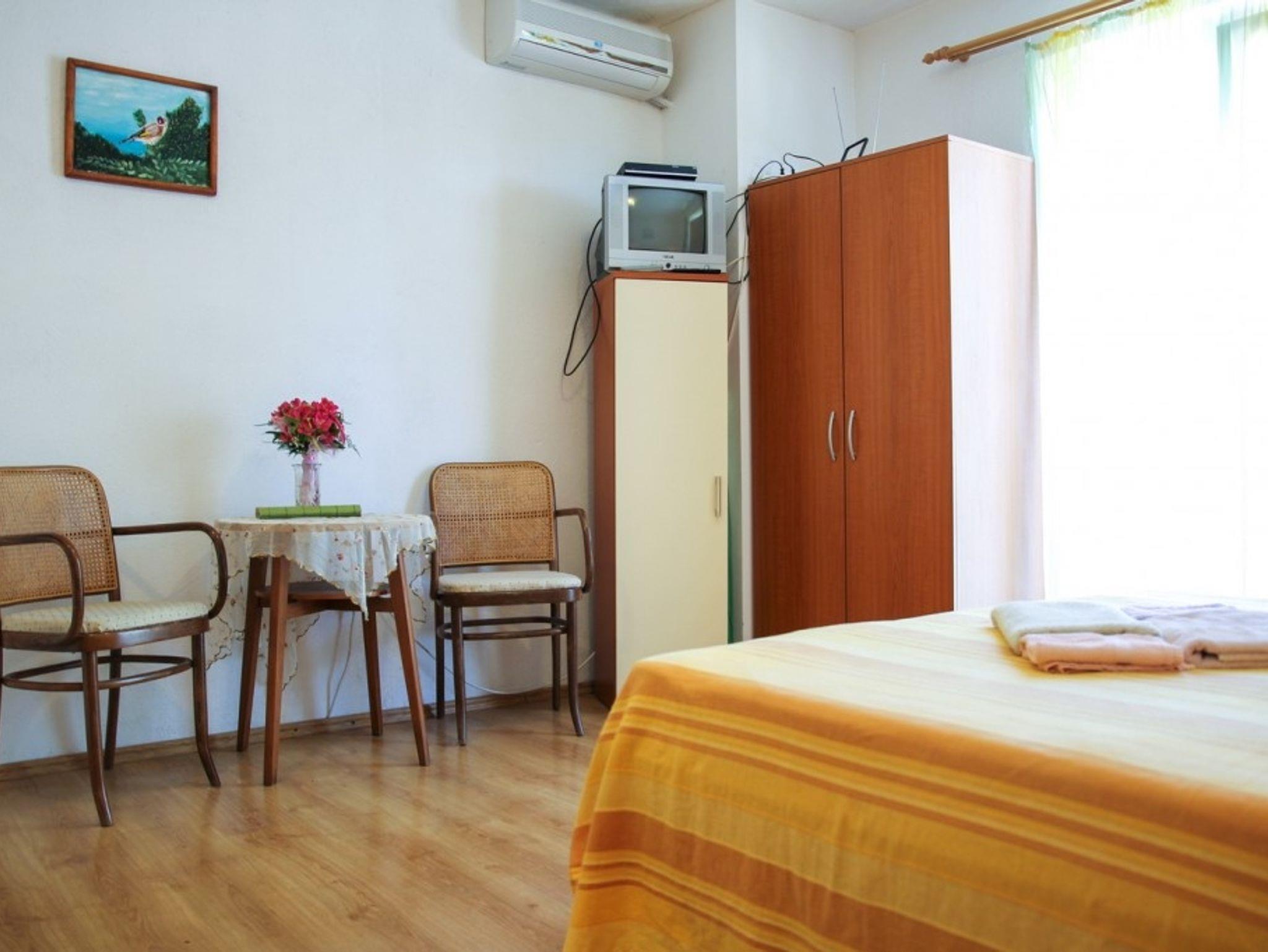 Studio bietet Platz für 2 Gäste. Die Betten sind in Schlafzimmern, die es 1 gibt, innerhalb einer Gesamtfläche von 14m2, angeordnet. Die Gäste haben einen eigenen Balkon zur Verfügung, auf der sie in warmen Sommernächten genießen können. Das Studio-Apartment bietet Meerblick. Es ist erlaubt, Speisen auf dem Gemeinschafts-Grill vorzubereiten. IM PREIS INBEGRIFFEN: Kurtaxe, Endreinigung, Klimatisierung, Internet, Kinderbett, Bügeleisen, Bügelbrett, Föhn. UNVERBINDLICHE ZUSÄTZLICHE KOSTEN: Wäschewaschen (10,00 € Waschen), Zusatzbett (10,00 € pro Nacht). Die Verfügbarkeit zusätzlicher Dienstleistungen in Ihrem reservierten Termin und die Preise derselben (falls nicht aufgeführt) müssen im Voraus überprüft werden. Zusätzliche Dienstleistungen die in der Zahlungsaufforderung nicht aufgeführt sind werden direkt beim Vermieter bezahlt, angenommen der Gast nutzt auch diese. Ermäßigung auf den Grundpreis: Gratistag 14=13 (bei einem Aufenthalt von 14 Tagen oder mehr erhalten Sie einen Gratistag für den Aufenthalt bis 31.12.26).