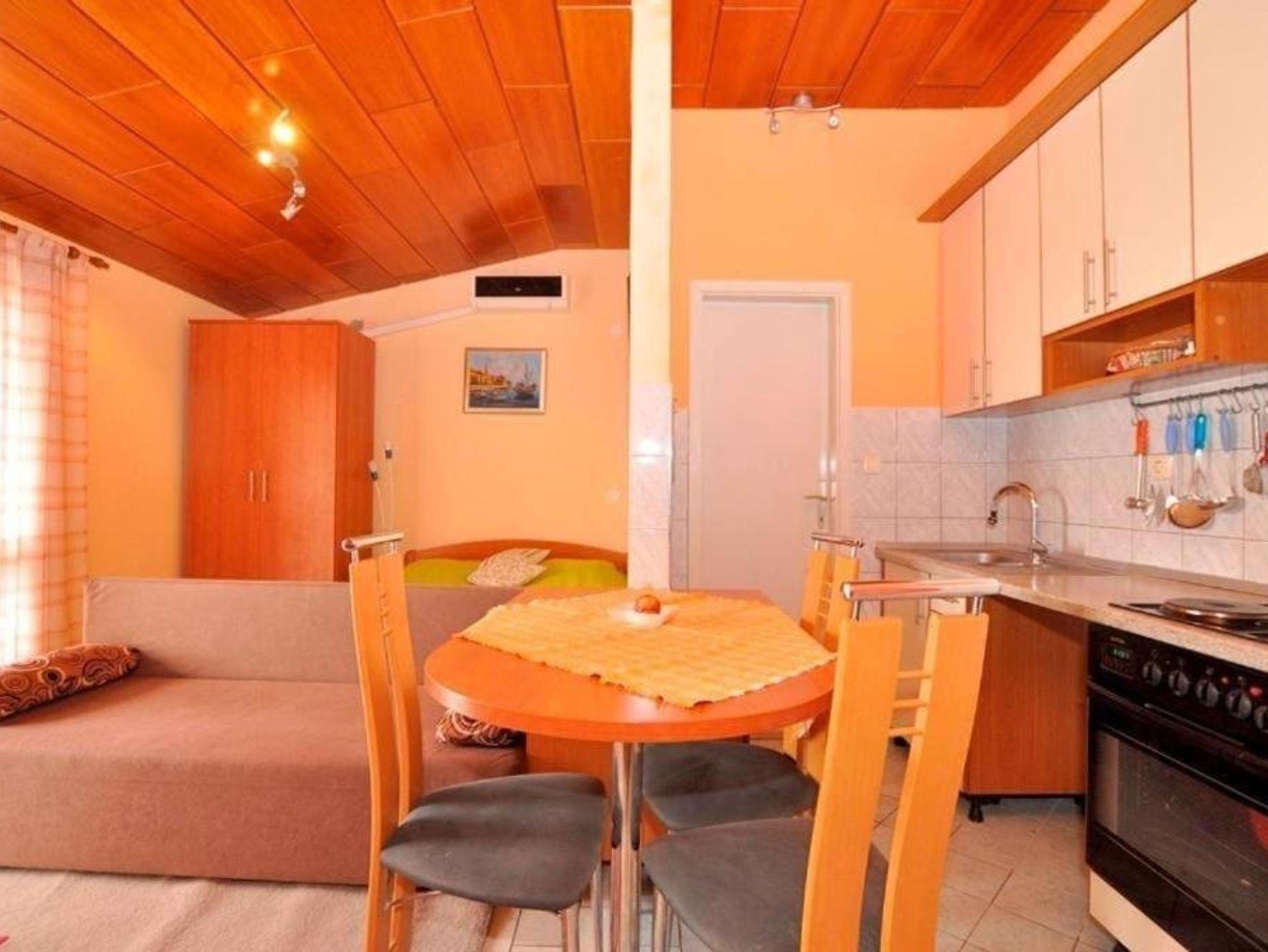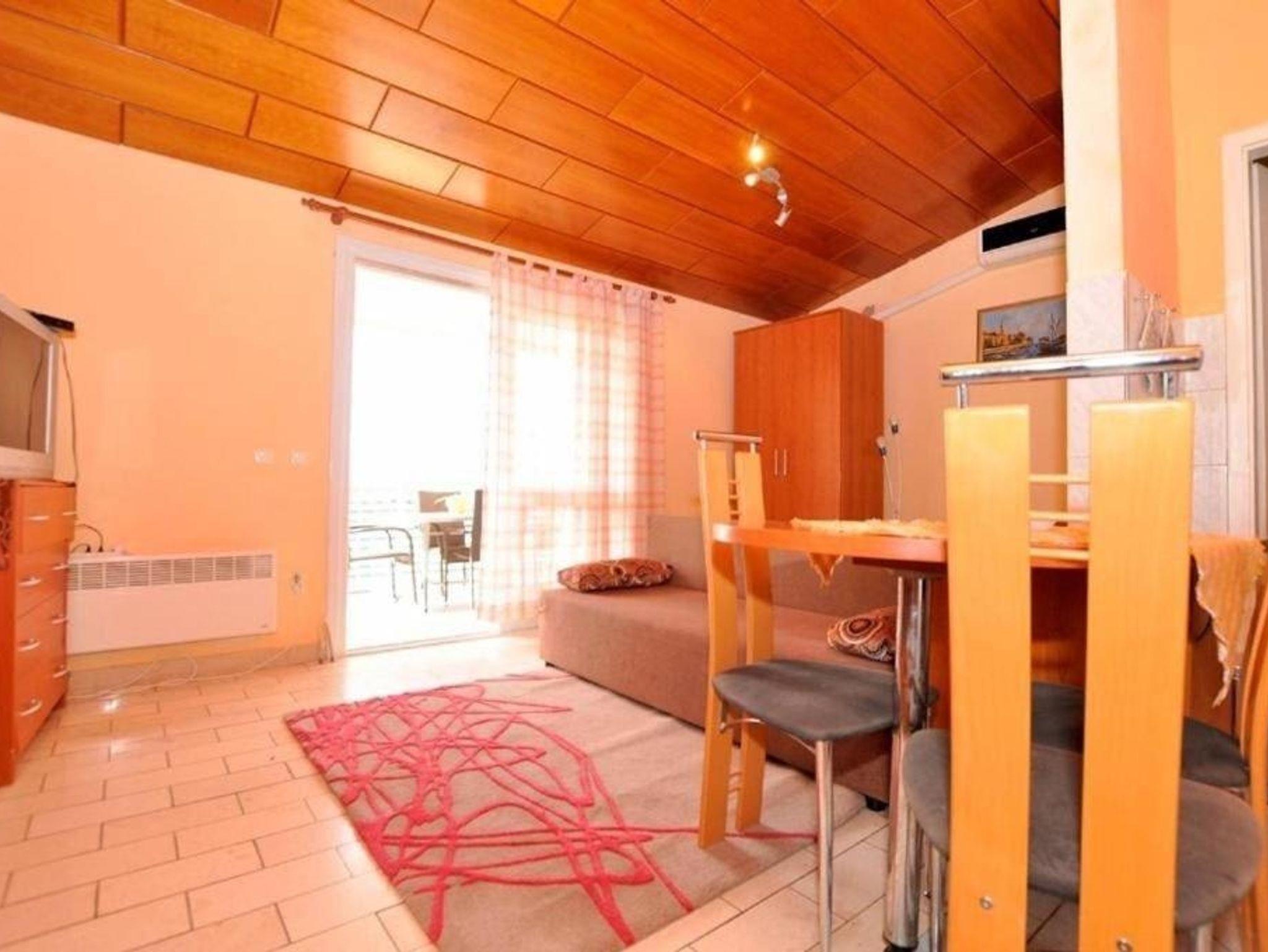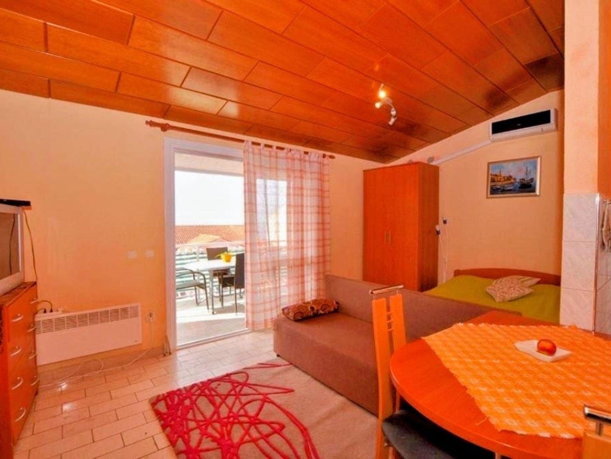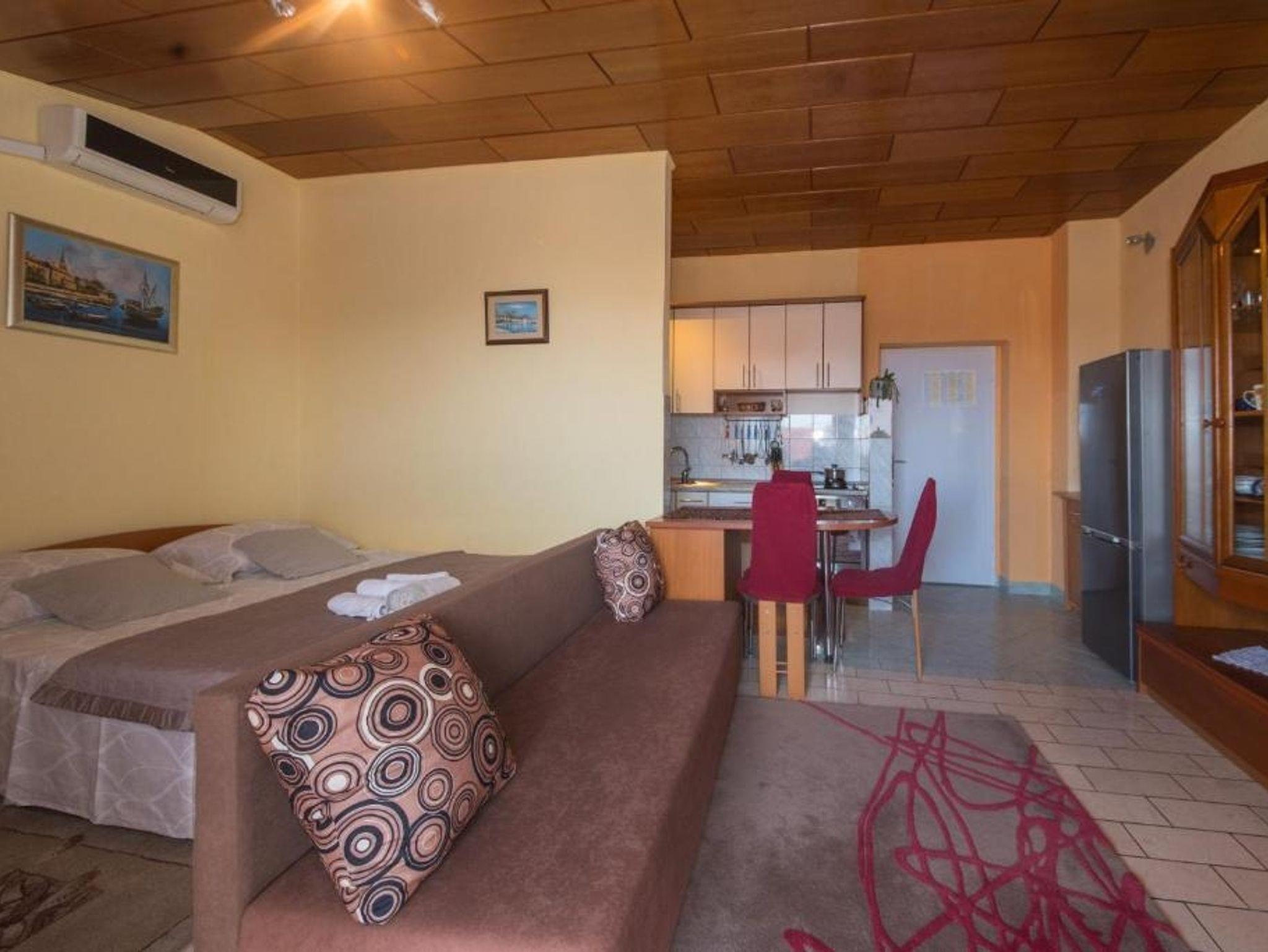 Studio bietet Platz für 4 Gäste. Die Betten sind in Wohnzimmer, innerhalb einer Gesamtfläche von 28m2, angeordnet. Die Gäste haben einen eigenen Balkon zur Verfügung, auf der sie in warmen Sommernächten genießen können. Das Studio-Apartment bietet Meerblick. IM PREIS INBEGRIFFEN: Kurtaxe, Endreinigung, Klimatisierung, Parkplatz, Internet, Zusatzbett, Bügeleisen, Bügelbrett, Föhn. VERBINDLICHE ZUSÄTZLICHE KOSTEN: Aufzahlung für Kurzaufenthalte (prozentualer Zuschlag pro Nächtigungsanzahl: 30% - 1, 20% - 2, 10% - 3). Die Verfügbarkeit zusätzlicher Dienstleistungen in Ihrem reservierten Termin und die Preise derselben (falls nicht aufgeführt) müssen im Voraus überprüft werden. Zusätzliche Dienstleistungen die in der Zahlungsaufforderung nicht aufgeführt sind werden direkt beim Vermieter bezahlt, angenommen der Gast nutzt auch diese. Ermäßigung auf den Grundpreis: Gratistag 14=13 (bei einem Aufenthalt von 14 Tagen oder mehr erhalten Sie einen Gratistag für den Aufenthalt bis 31.12.26).