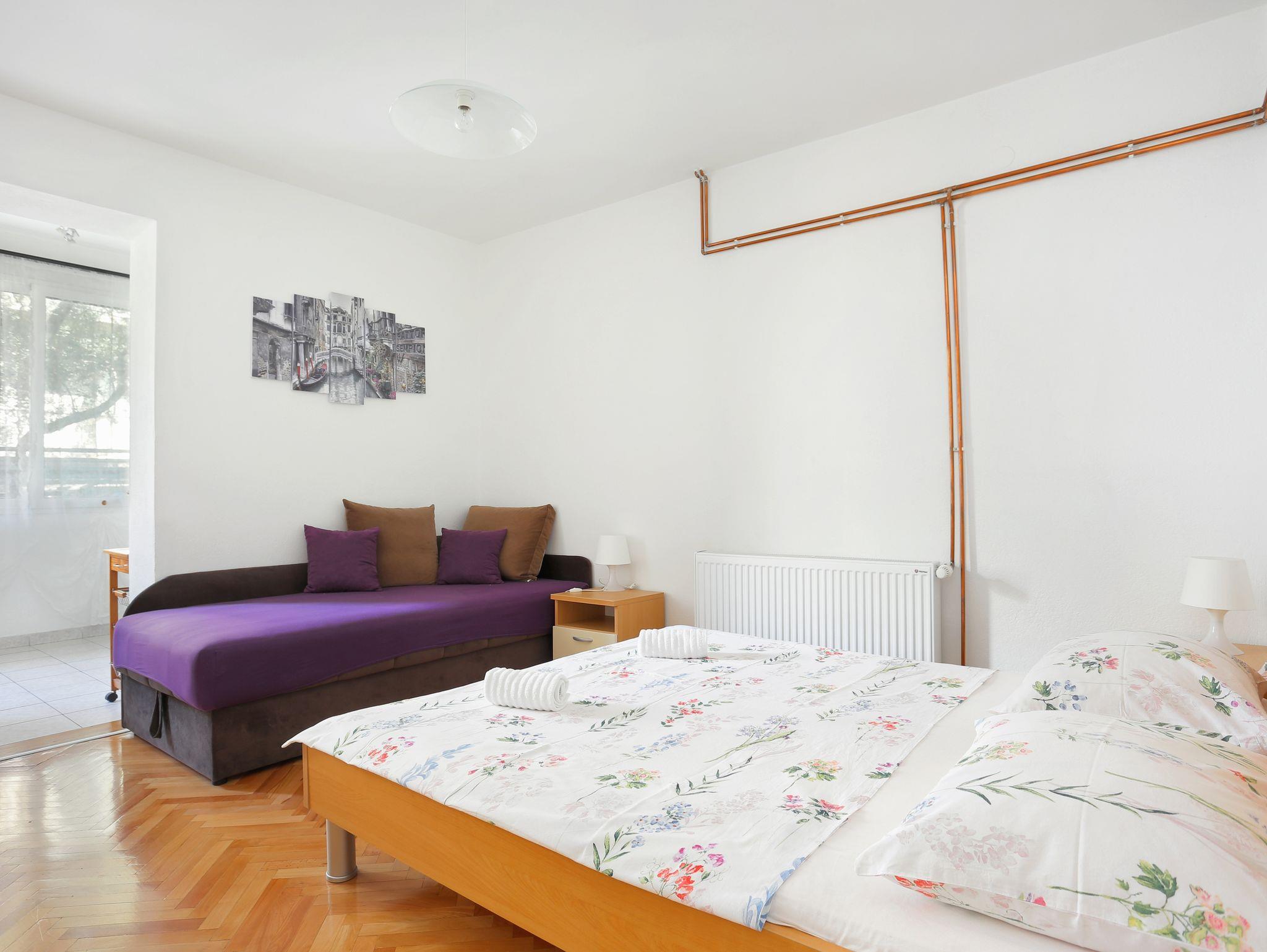Studio bietet Platz für 2 Gäste. Die Betten sind in Schlafzimmern, die es 1 gibt, innerhalb einer Gesamtfläche von 22m2, angeordnet. Die Gäste haben eine eigene Terrasse zur Verfügung, auf der sie in warmen Sommernächten genießen können. Unterkunftseinheit hat Räume, die von dem Rest der Einheit abgetrennt werden. IM PREIS INBEGRIFFEN: Kurtaxe, Endreinigung, Klimatisierung, Zentralheizung, Parkplatz, Internet, Kinderbett, Bügeleisen, Bügelbrett, Föhn. VERBINDLICHE ZUSÄTZLICHE KOSTEN: Aufzahlung für Kurzaufenthalte (prozentualer Zuschlag pro Nächtigungsanzahl: 30% - 1, 20% - 2, 10% - 3). Die Verfügbarkeit zusätzlicher Dienstleistungen in Ihrem reservierten Termin und die Preise derselben (falls nicht aufgeführt) müssen im Voraus überprüft werden. Zusätzliche Dienstleistungen die in der Zahlungsaufforderung nicht aufgeführt sind werden direkt beim Vermieter bezahlt, angenommen der Gast nutzt auch diese.