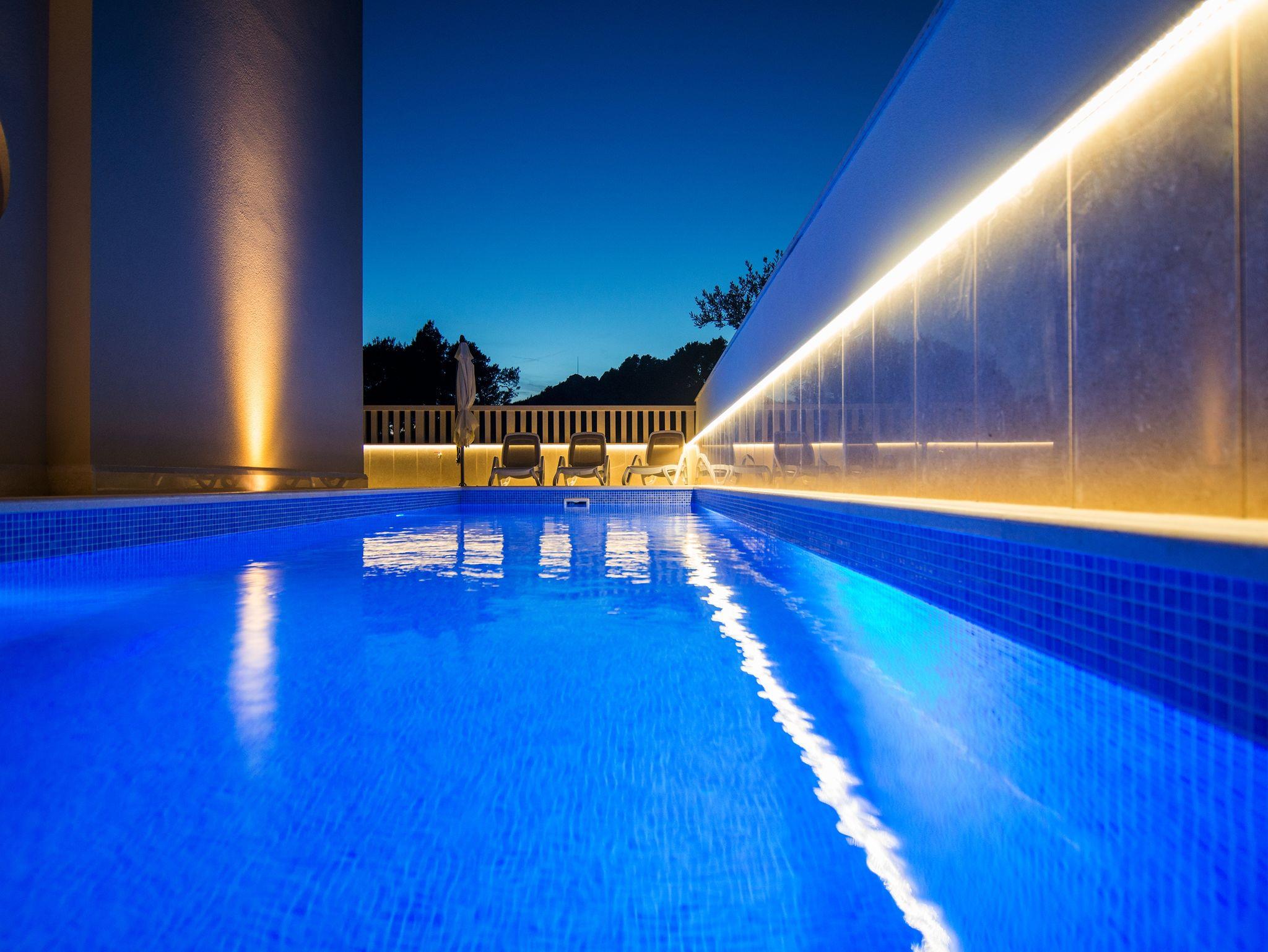 Hof (350m2, Kinderbereich, Sitzbereich), Parkplatz (Anzahl der Parkplätze: 6, Entfernung vom Objekt: im Hof), Pool: gemeinsam, Dimensionen: 8m x 4m x 1m, Wassertyp: Süßwasser, Heizung: Ja, Grill: gemeinsam, WiFi Internet, Föhn, Bügeleisen, Bügelbrett, Kinderbett