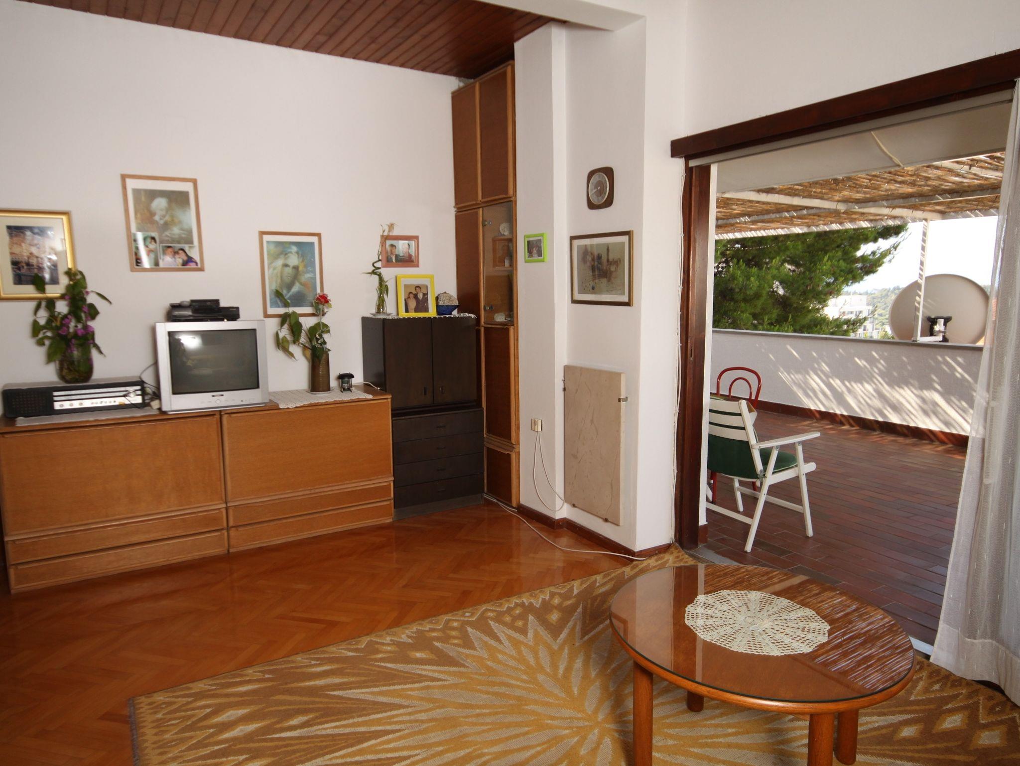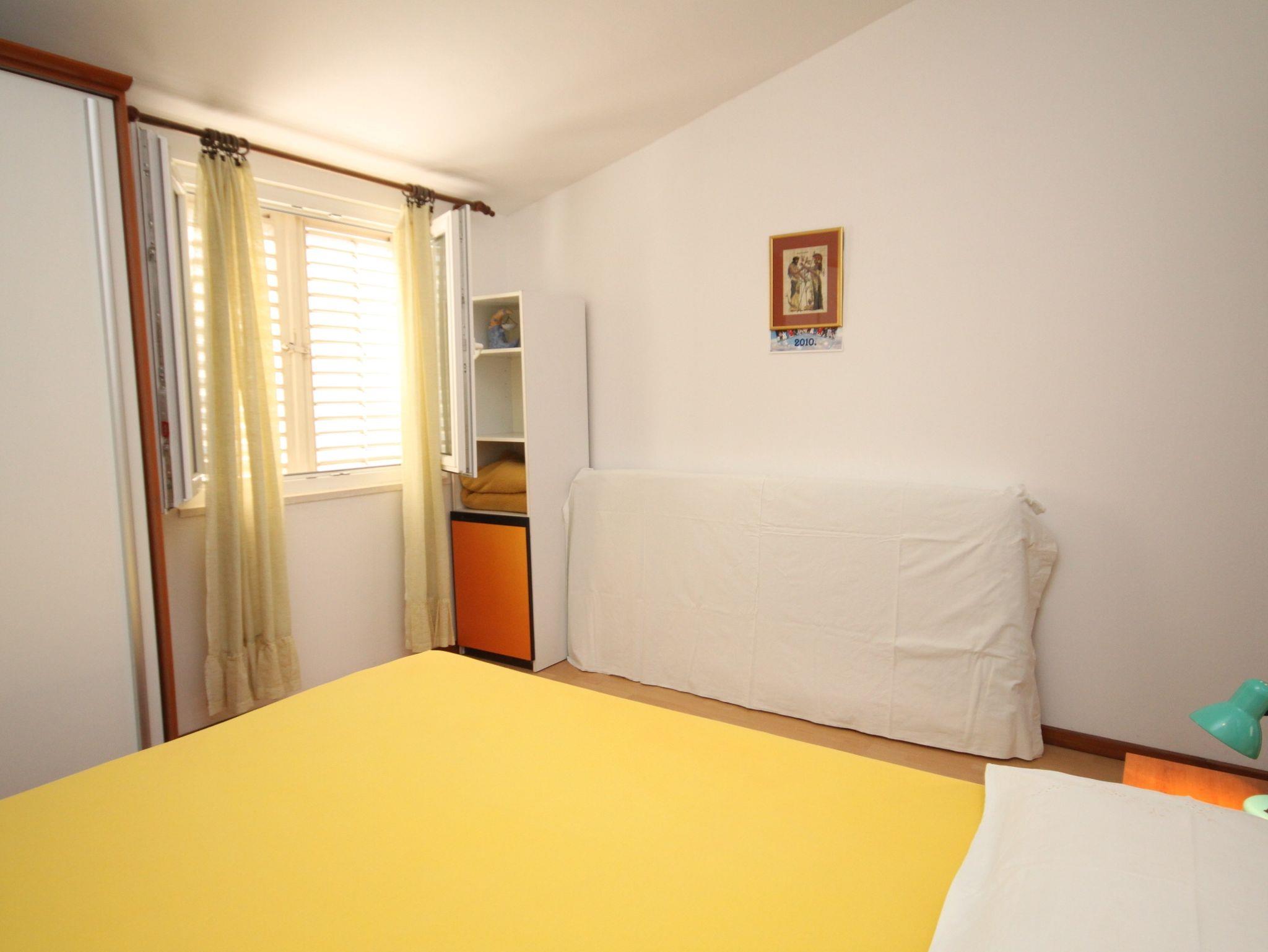 Ferienwohnung bietet Platz für 5 Gäste. Die Betten sind in Schlafzimmern, die es 2 gibt, und in Wohnzimmer, innerhalb einer Gesamtfläche von 59m2, angeordnet. Die Gäste haben eine eigene Terrasse zur Verfügung, auf der sie in warmen Sommernächten genießen können. Das Apartment bietet Meerblick. Es ist erlaubt, Speisen auf dem Gemeinschafts-Grill vorzubereiten. IM PREIS INBEGRIFFEN: Kurtaxe, Endreinigung, Klimatisierung, Parkplatz, Internet, Kinderbett, Bügeleisen, Bügelbrett, Föhn. VERBINDLICHE ZUSÄTZLICHE KOSTEN: Aufzahlung für Kurzaufenthalte (prozentualer Zuschlag pro Nächtigungsanzahl: 30% - 1, 20% - 2, 10% - 3). UNVERBINDLICHE ZUSÄTZLICHE KOSTEN: Wäschewaschen (5,00 € Waschen). Die Verfügbarkeit zusätzlicher Dienstleistungen in Ihrem reservierten Termin und die Preise derselben (falls nicht aufgeführt) müssen im Voraus überprüft werden. Zusätzliche Dienstleistungen die in der Zahlungsaufforderung nicht aufgeführt sind werden direkt beim Vermieter bezahlt, angenommen der Gast nutzt auch diese.