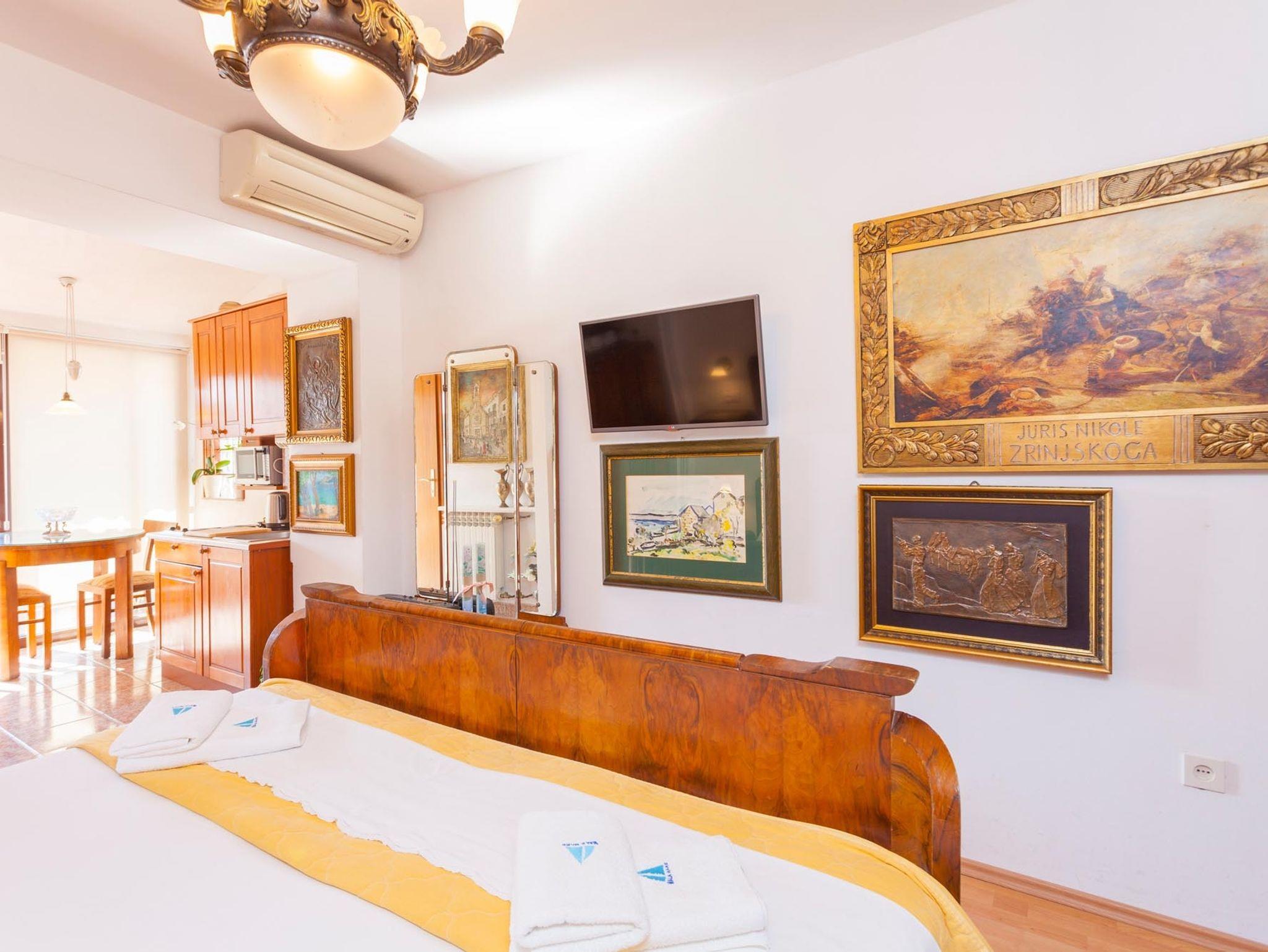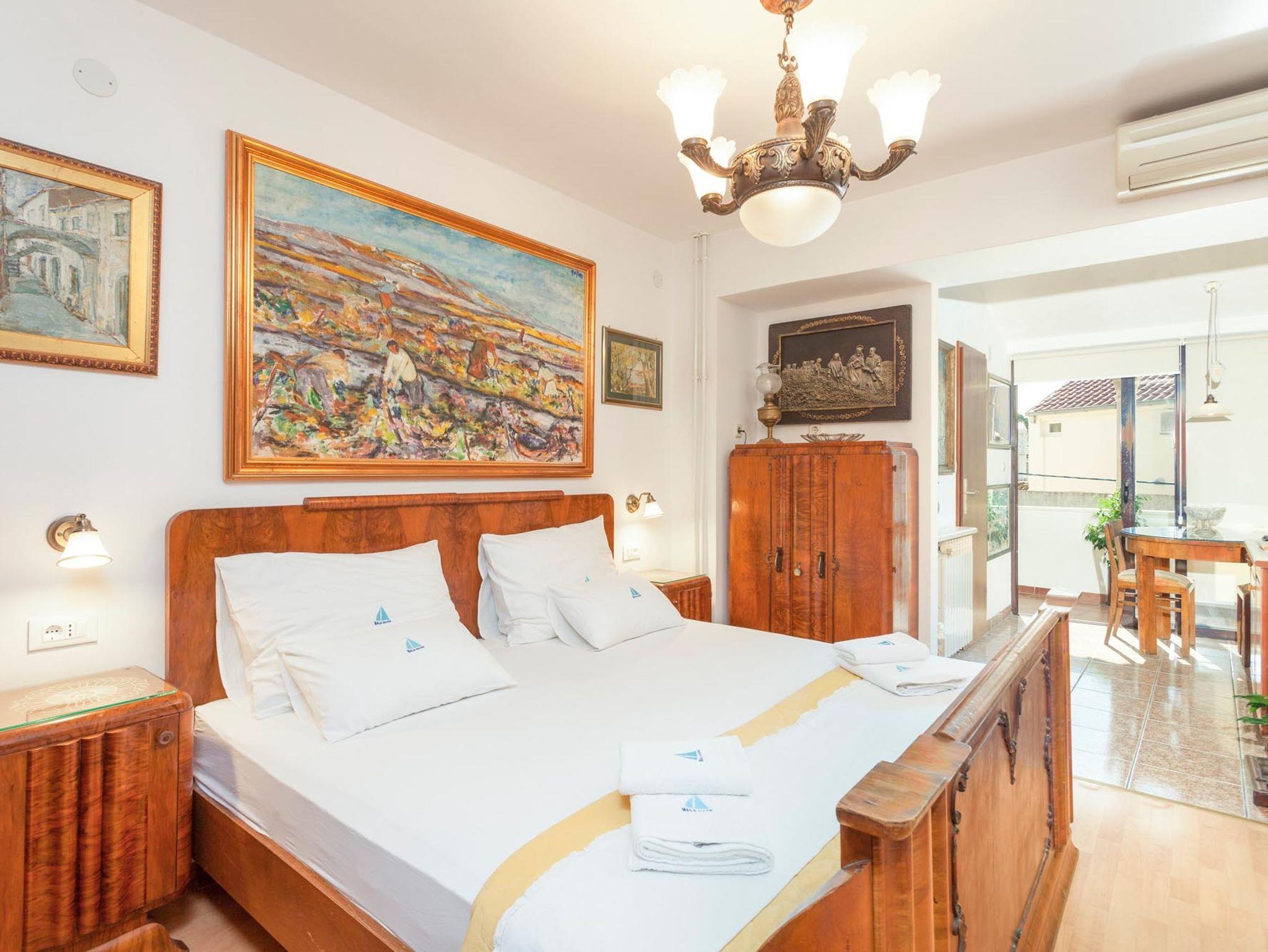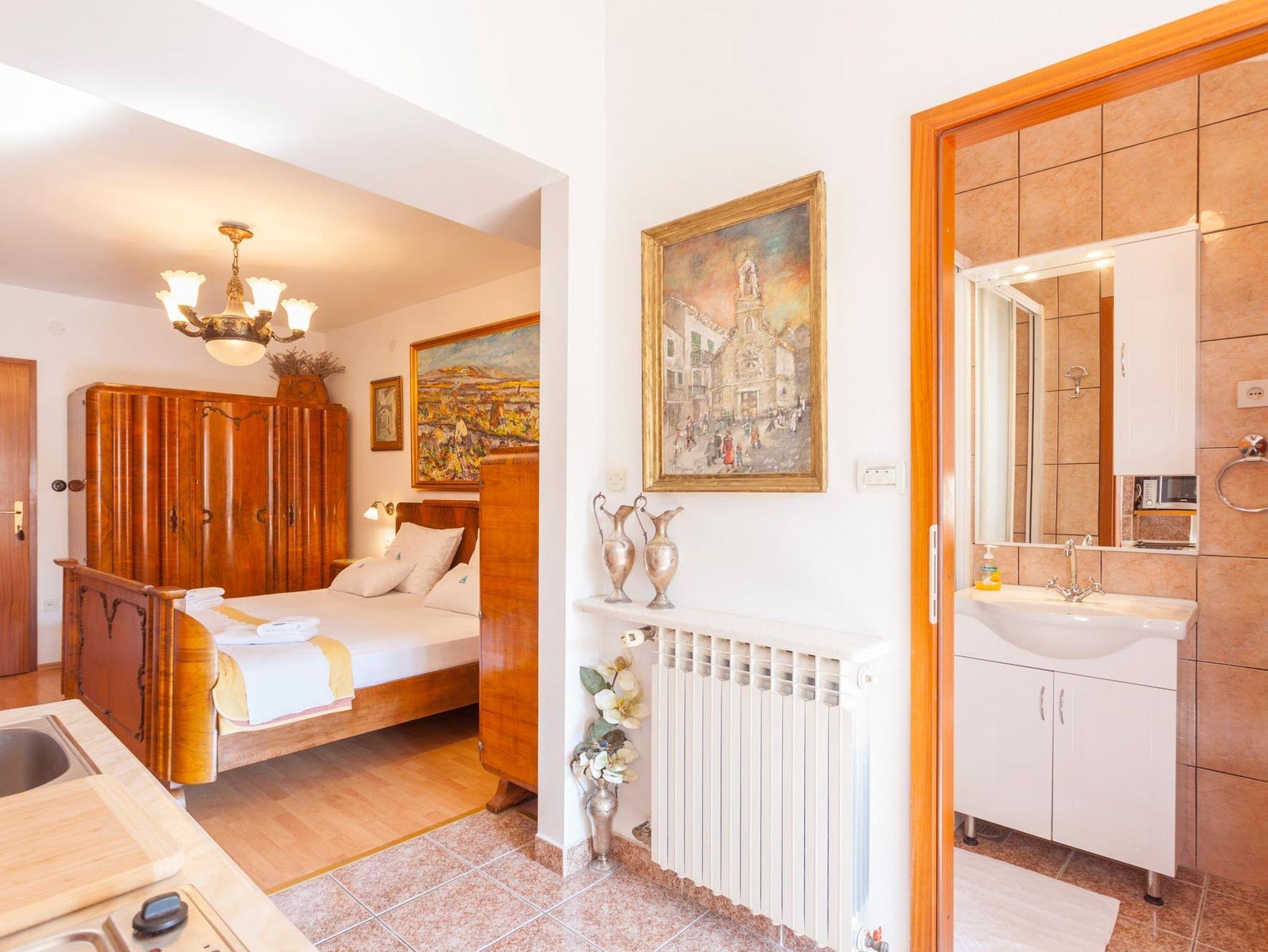Studio bietet Platz für 2 Gäste. Die Betten sind in Schlafzimmern, die es 1 gibt, innerhalb einer Gesamtfläche von 24m2, angeordnet. Die Gäste haben eine eigene Terrasse zur Verfügung, auf der sie in warmen Sommernächten genießen können. Es ist erlaubt, Speisen auf dem Gemeinschafts-Grill vorzubereiten. In der Unterkunftseinheit besteht die Möglichkeit des Mitbringens von Haustieren, und die Dienstleistung ist im Preis der Unterkunft enthalten. IM PREIS INBEGRIFFEN: Kurtaxe, Endreinigung, Klimatisierung, Zentralheizung, Internet, Haustiere, Kinderbett, Bügeleisen, Bügelbrett, Föhn. Die Verfügbarkeit zusätzlicher Dienstleistungen in Ihrem reservierten Termin und die Preise derselben (falls nicht aufgeführt) müssen im Voraus überprüft werden. Zusätzliche Dienstleistungen die in der Zahlungsaufforderung nicht aufgeführt sind werden direkt beim Vermieter bezahlt, angenommen der Gast nutzt auch diese.