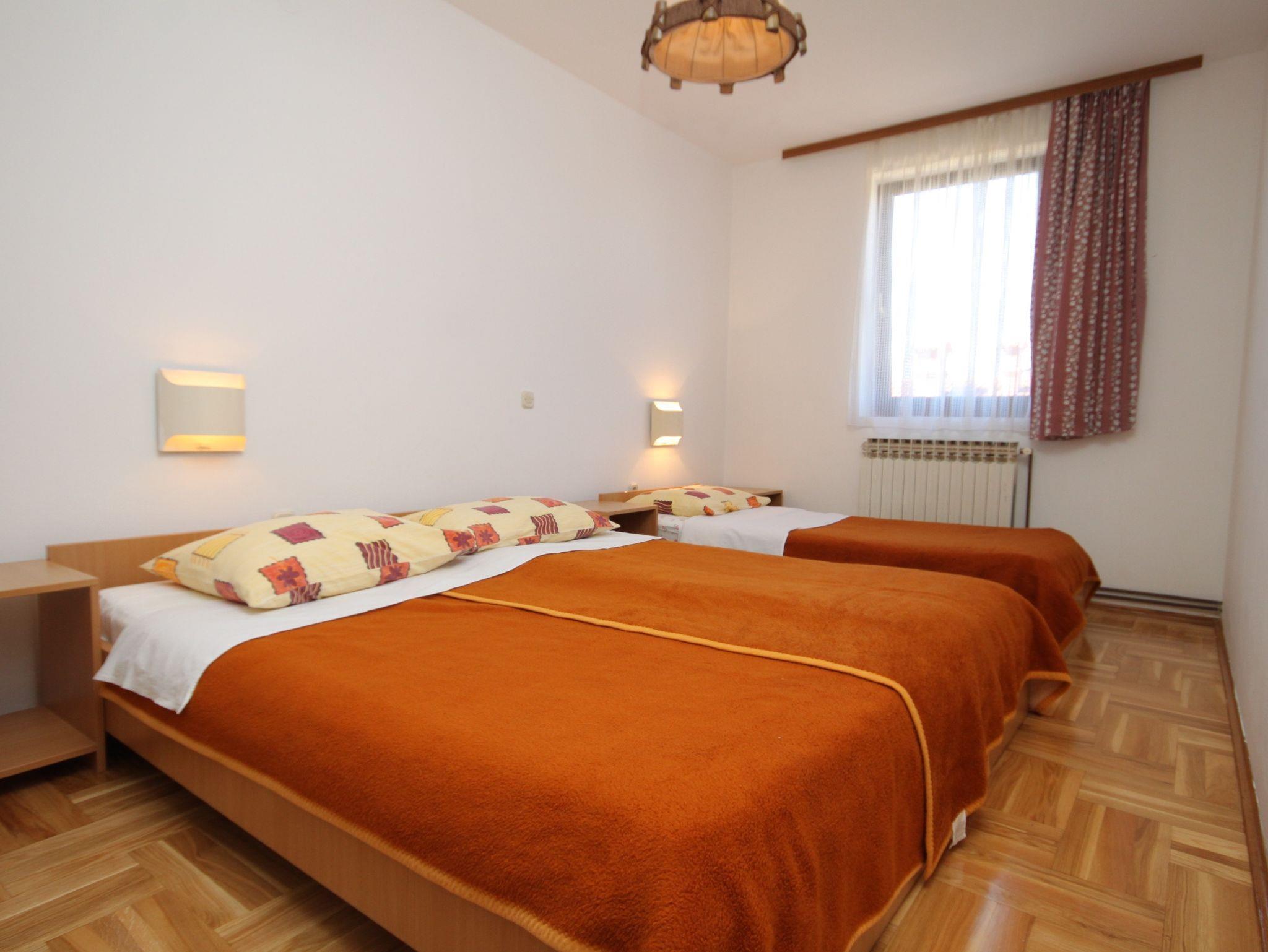 Ferienwohnung bietet Platz für 5 Gäste. Die Betten sind in Schlafzimmern, die es 2 gibt, innerhalb einer Gesamtfläche von 54m2, angeordnet. Die Gäste haben eine eigene Terrasse zur Verfügung, auf der sie in warmen Sommernächten genießen können. Das Apartment bietet Meerblick. Es ist erlaubt, Speisen auf dem Gemeinschafts-Grill vorzubereiten. In der Unterkunftseinheit besteht die Möglichkeit des Mitbringens von Haustieren gegen Aufpreis. IM PREIS INBEGRIFFEN: Kurtaxe, Endreinigung, Klimatisierung, Parkplatz, Internet, Bügeleisen, Bügelbrett, Föhn. VERBINDLICHE ZUSÄTZLICHE KOSTEN: Aufzahlung für Kurzaufenthalte (prozentualer Zuschlag pro Nächtigungsanzahl: 30% - 1, 20% - 2, 10% - 3). UNVERBINDLICHE ZUSÄTZLICHE KOSTEN: Zentralheizung (5,00 € pro Nacht), Haustiere (10,00 € pro Nacht), Zusatzbett (5,00 € pro Nacht). Die Verfügbarkeit zusätzlicher Dienstleistungen in Ihrem reservierten Termin und die Preise derselben (falls nicht aufgeführt) müssen im Voraus überprüft werden. Zusätzliche Dienstleistungen die in der Zahlungsaufforderung nicht aufgeführt sind werden direkt beim Vermieter bezahlt, angenommen der Gast nutzt auch diese. Ermäßigung auf den Grundpreis: Gratistag 14=13 (bei einem Aufenthalt von 14 Tagen oder mehr erhalten Sie einen Gratistag für den Aufenthalt bis 31.12.26).