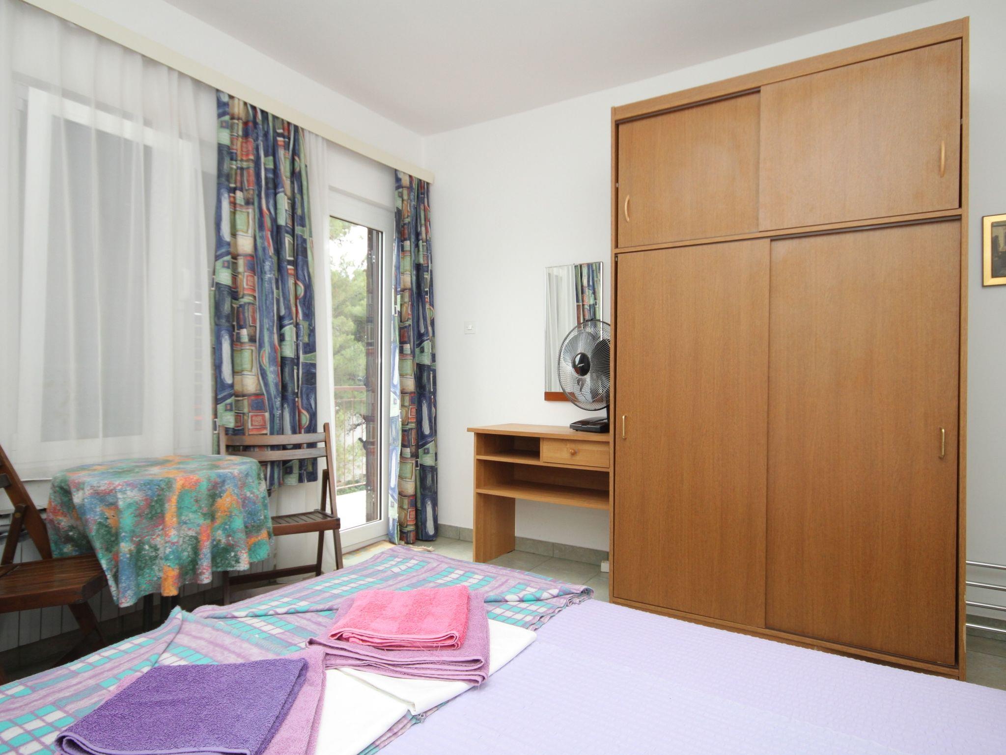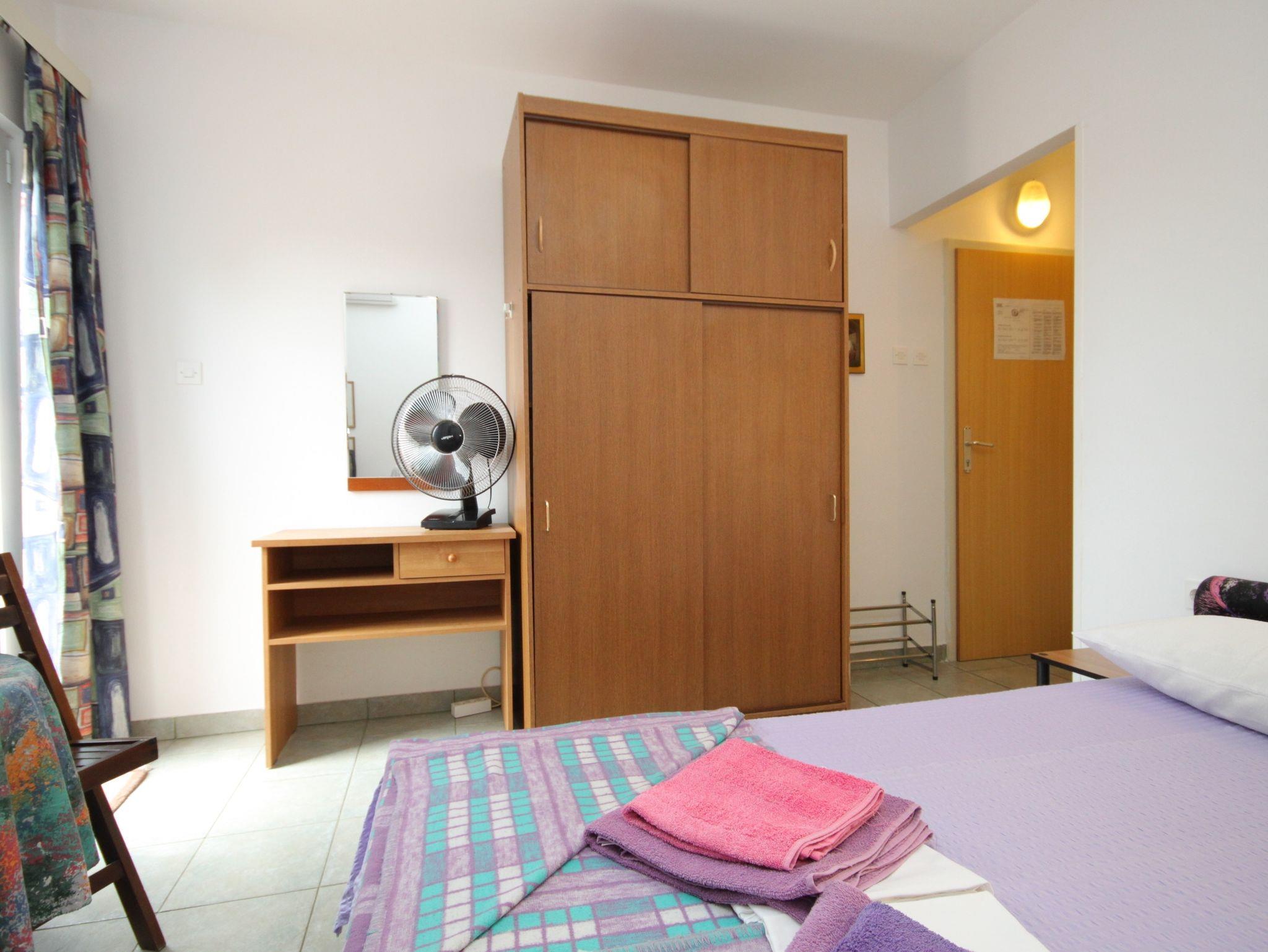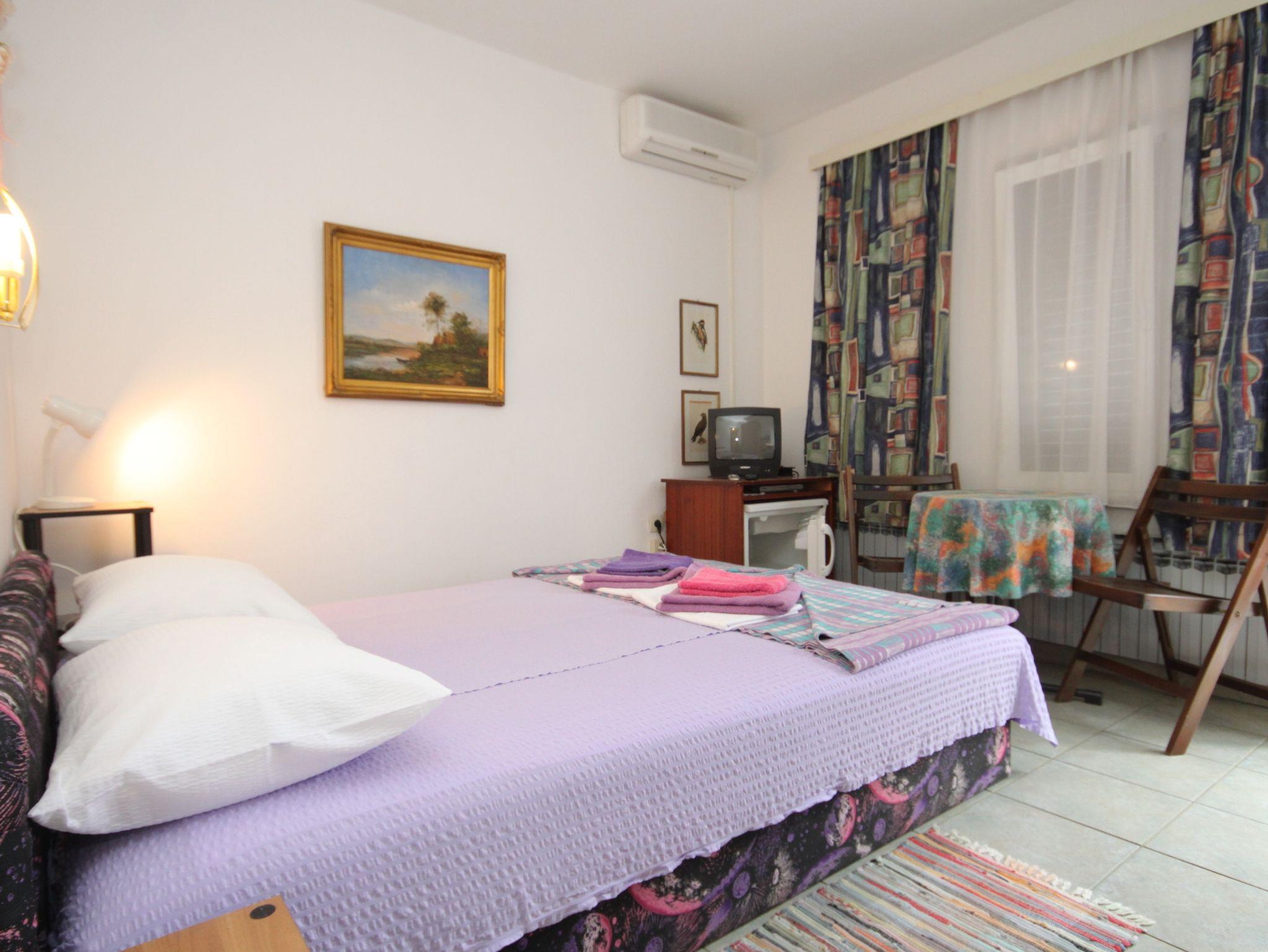 Zimmer bietet Platz für 2 Gäste. Die Betten sind in Schlafzimmern, die es 1 gibt, innerhalb einer Gesamtfläche von 15m2, angeordnet. Die Gäste haben einen eigenen Balkon zur Verfügung, auf der sie in warmen Sommernächten genießen können. Es ist erlaubt, Speisen auf dem Gemeinschafts-Grill vorzubereiten. In der Unterkunftseinheit besteht die Möglichkeit des Mitbringens von Haustieren gegen Aufpreis. Die reservierte Unterkunftseinheit ist ein Zimmer mit eigenem Badezimmer ohne die Möglichkeit der Nutzung einer Küche. IM PREIS INBEGRIFFEN: Kurtaxe, Endreinigung, Parkplatz, Internet, Bootsanlegeplatz, Bügeleisen, Bügelbrett, Föhn, tragbarer Grill, Sonnenschirm. VERBINDLICHE ZUSÄTZLICHE KOSTEN: Aufzahlung für Kurzaufenthalte (prozentualer Zuschlag pro Nächtigungsanzahl: 30% - 1, 20% - 2, 10% - 3). UNVERBINDLICHE ZUSÄTZLICHE KOSTEN: Klimatisierung (5,00 € pro Nacht), Haustiere (5,00 € pro Nacht). Die Verfügbarkeit zusätzlicher Dienstleistungen in Ihrem reservierten Termin und die Preise derselben (falls nicht aufgeführt) müssen im Voraus überprüft werden. Zusätzliche Dienstleistungen die in der Zahlungsaufforderung nicht aufgeführt sind werden direkt beim Vermieter bezahlt, angenommen der Gast nutzt auch diese. Ermäßigung auf den Grundpreis: Gratistag 14=13 (bei einem Aufenthalt von 14 Tagen oder mehr erhalten Sie einen Gratistag für den Aufenthalt bis 31.12.26).