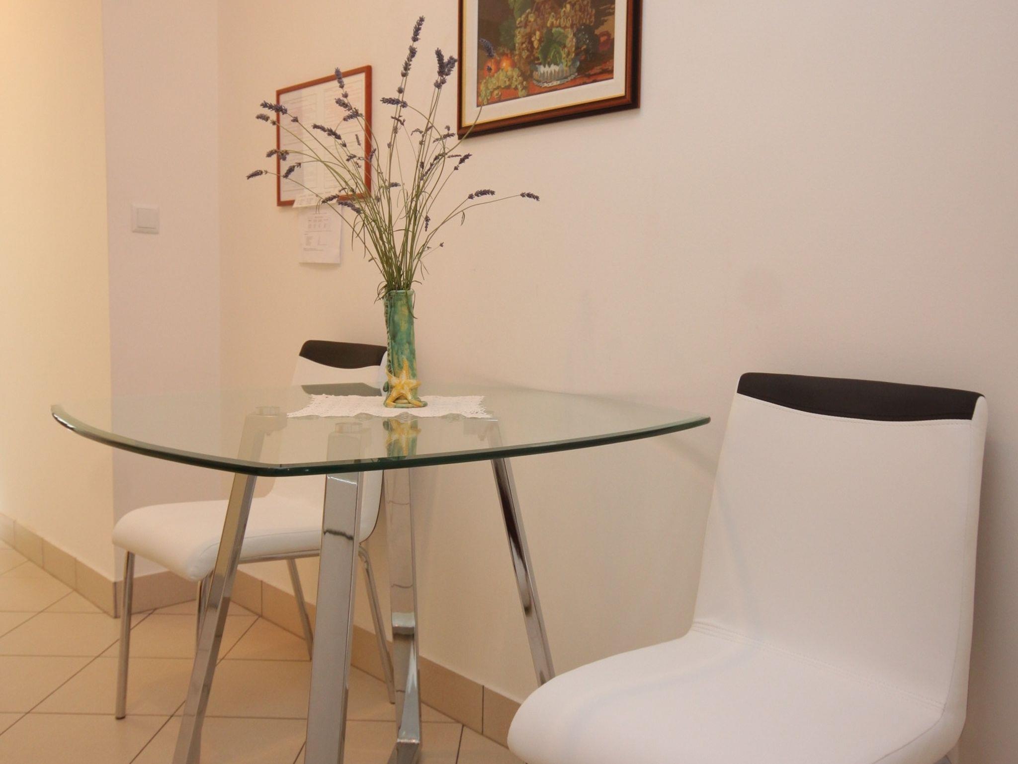 Ferienwohnung bietet Platz für 2 Gäste. Die Betten sind in Schlafzimmern, die es 1 gibt, innerhalb einer Gesamtfläche von 21m2, angeordnet. Die Gäste haben einen eigenen Balkon zur Verfügung, auf der sie in warmen Sommernächten genießen können. Das Apartment bietet Meerblick. Es ist erlaubt, Speisen auf dem Gemeinschafts-Grill vorzubereiten. IM PREIS INBEGRIFFEN: Kurtaxe, Endreinigung, Parkplatz, Internet. VERBINDLICHE ZUSÄTZLICHE KOSTEN: Aufzahlung für Kurzaufenthalte (prozentualer Zuschlag pro Nächtigungsanzahl: 30% - 1, 20% - 2, 10% - 3). UNVERBINDLICHE ZUSÄTZLICHE KOSTEN: Klimatisierung (5,00 € pro Nacht). Die Verfügbarkeit zusätzlicher Dienstleistungen in Ihrem reservierten Termin und die Preise derselben (falls nicht aufgeführt) müssen im Voraus überprüft werden. Zusätzliche Dienstleistungen die in der Zahlungsaufforderung nicht aufgeführt sind werden direkt beim Vermieter bezahlt, angenommen der Gast nutzt auch diese.