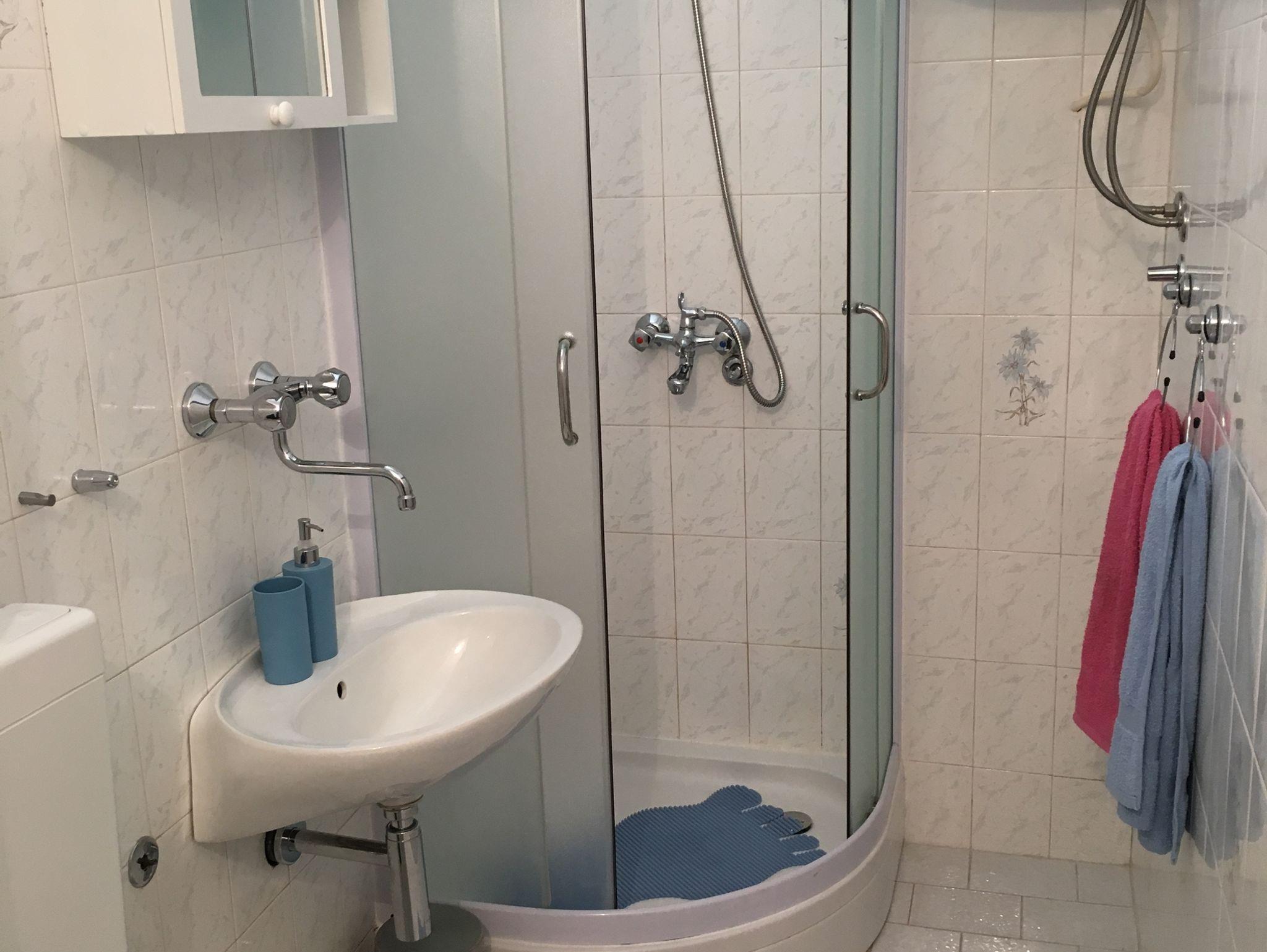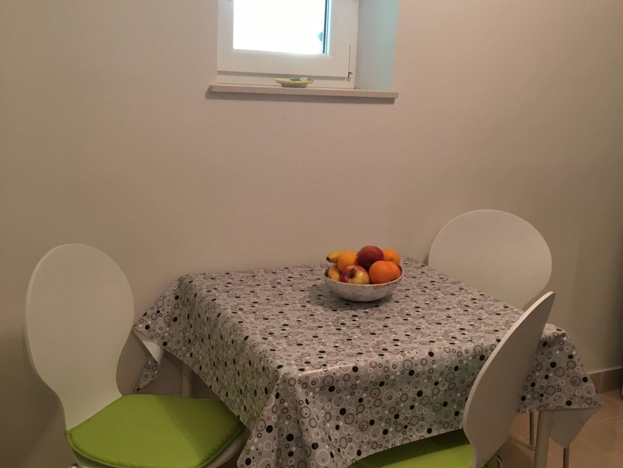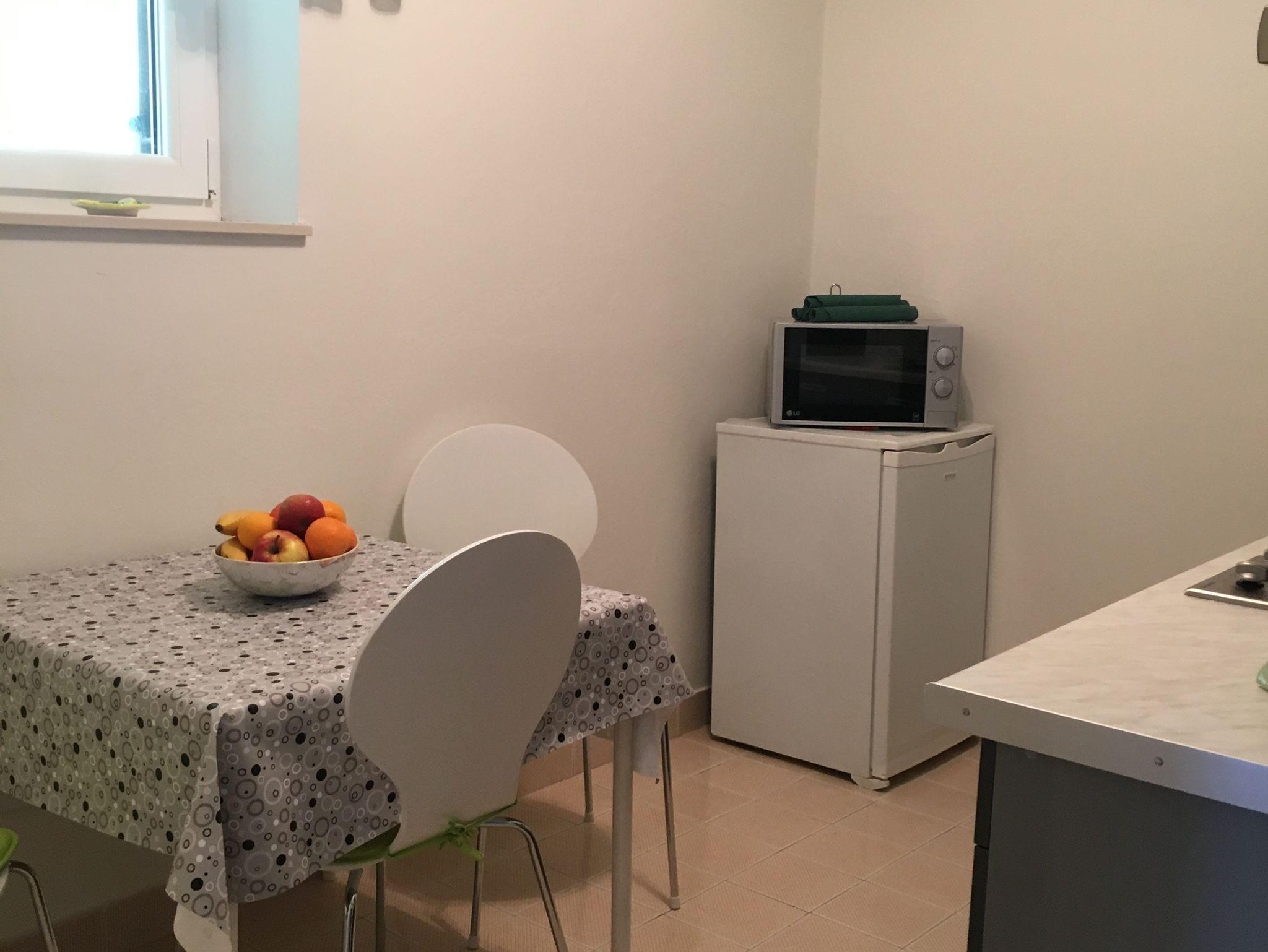 Studio bietet Platz für 3 Gäste. Die Betten sind in Schlafzimmern, die es 1 gibt, und in Wohnzimmer, innerhalb einer Gesamtfläche von 30m2, angeordnet. Die Gäste haben eine eigene Terrasse zur Verfügung, auf der sie in warmen Sommernächten genießen können. Das Studio-Apartment bietet Meerblick. Es ist erlaubt, Speisen auf dem Gemeinschafts-Grill vorzubereiten. In der Unterkunftseinheit besteht die Möglichkeit des Mitbringens von Haustieren gegen Aufpreis. IM PREIS INBEGRIFFEN: Kurtaxe, Endreinigung, Parkplatz, Internet, Wäschewaschen, Kinderbett, Bügeleisen, Bügelbrett, Föhn, Sonnenschirm. VERBINDLICHE ZUSÄTZLICHE KOSTEN: Aufzahlung für Kurzaufenthalte (prozentualer Zuschlag pro Nächtigungsanzahl: 30% - 1, 20% - 2, 10% - 3). UNVERBINDLICHE ZUSÄTZLICHE KOSTEN: Klimatisierung (5,00 € pro Nacht), Haustiere (5,00 € pro Nacht). Die Verfügbarkeit zusätzlicher Dienstleistungen in Ihrem reservierten Termin und die Preise derselben (falls nicht aufgeführt) müssen im Voraus überprüft werden. Zusätzliche Dienstleistungen die in der Zahlungsaufforderung nicht aufgeführt sind werden direkt beim Vermieter bezahlt, angenommen der Gast nutzt auch diese. Ermäßigung auf den Grundpreis: Gratistag 14=13 (bei einem Aufenthalt von 14 Tagen oder mehr erhalten Sie einen Gratistag für den Aufenthalt bis 31.12.26).