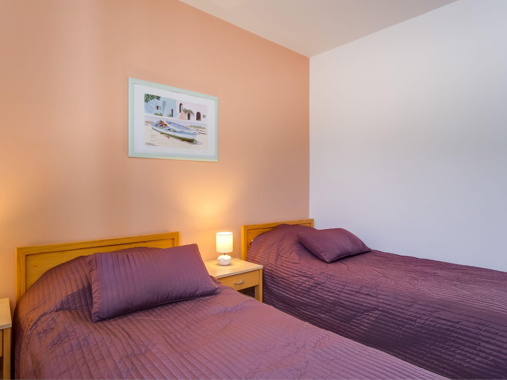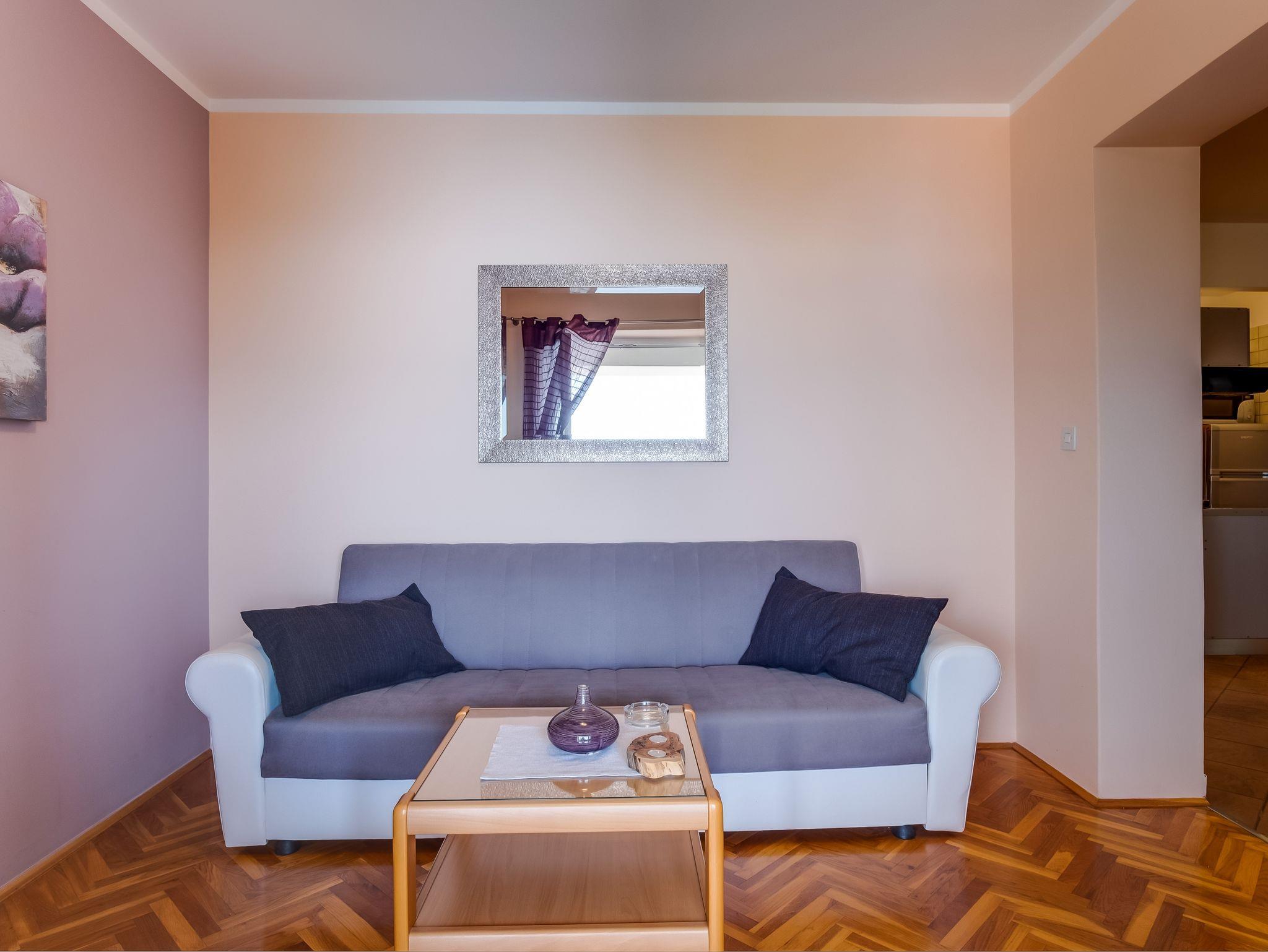 Ferienwohnung bietet Platz für 5 Gäste. Die Betten sind in Schlafzimmern, die es 2 gibt, und in Wohnzimmer, innerhalb einer Gesamtfläche von 47m2, angeordnet. Die Gäste haben eine eigene Terrasse zur Verfügung, auf der sie in warmen Sommernächten genießen können. Das Apartment bietet Meerblick. Es ist erlaubt, Speisen auf dem Gemeinschafts-Grill vorzubereiten. IM PREIS INBEGRIFFEN: Kurtaxe, Endreinigung, Klimatisierung, Parkplatz, Internet, Wäschewaschen, Bügeleisen, Bügelbrett, Föhn. VERBINDLICHE ZUSÄTZLICHE KOSTEN: Aufzahlung für Kurzaufenthalte (prozentualer Zuschlag pro Nächtigungsanzahl: 30% - 1, 20% - 2, 10% - 3). UNVERBINDLICHE ZUSÄTZLICHE KOSTEN: Frühstück (7,00 €, 50% Nachlass für Kinder zwischen 4 und 12 Jahren, Kinder bis 4 Jahre sind frei.), Fahrrad (7,00 € täglich (pro Stück)). Die Verfügbarkeit zusätzlicher Dienstleistungen in Ihrem reservierten Termin und die Preise derselben (falls nicht aufgeführt) müssen im Voraus überprüft werden. Zusätzliche Dienstleistungen die in der Zahlungsaufforderung nicht aufgeführt sind werden direkt beim Vermieter bezahlt, angenommen der Gast nutzt auch diese. Ermäßigung auf den Grundpreis: Gratistag 14=13 (bei einem Aufenthalt von 14 Tagen oder mehr erhalten Sie einen Gratistag für den Aufenthalt bis 31.12.26).