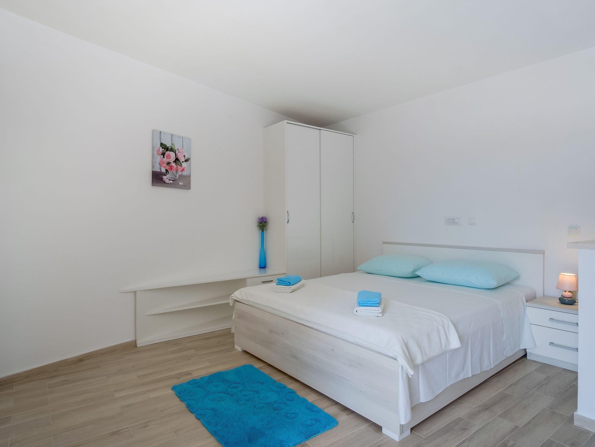 Studio bietet Platz für 2 Gäste. Die Betten sind in Schlafzimmern, die es 1 gibt, innerhalb einer Gesamtfläche von 37m2, angeordnet. Die Gäste haben eine eigene Terrasse zur Verfügung, auf der sie in warmen Sommernächten genießen können. Das Studio-Apartment bietet Meerblick. Es ist erlaubt, Speisen auf dem Gemeinschafts-Grill vorzubereiten. In der Unterkunftseinheit besteht die Möglichkeit des Mitbringens von Haustieren gegen Aufpreis. IM PREIS INBEGRIFFEN: Kurtaxe, Endreinigung, Klimatisierung, Parkplatz, Internet, Bügeleisen, Bügelbrett, Föhn. VERBINDLICHE ZUSÄTZLICHE KOSTEN: Aufzahlung für Kurzaufenthalte (prozentualer Zuschlag pro Nächtigungsanzahl: 30% - 1, 20% - 2, 10% - 3). UNVERBINDLICHE ZUSÄTZLICHE KOSTEN: Haustiere (5,00 € pro Nacht). Die Verfügbarkeit zusätzlicher Dienstleistungen in Ihrem reservierten Termin und die Preise derselben (falls nicht aufgeführt) müssen im Voraus überprüft werden. Zusätzliche Dienstleistungen die in der Zahlungsaufforderung nicht aufgeführt sind werden direkt beim Vermieter bezahlt, angenommen der Gast nutzt auch diese.