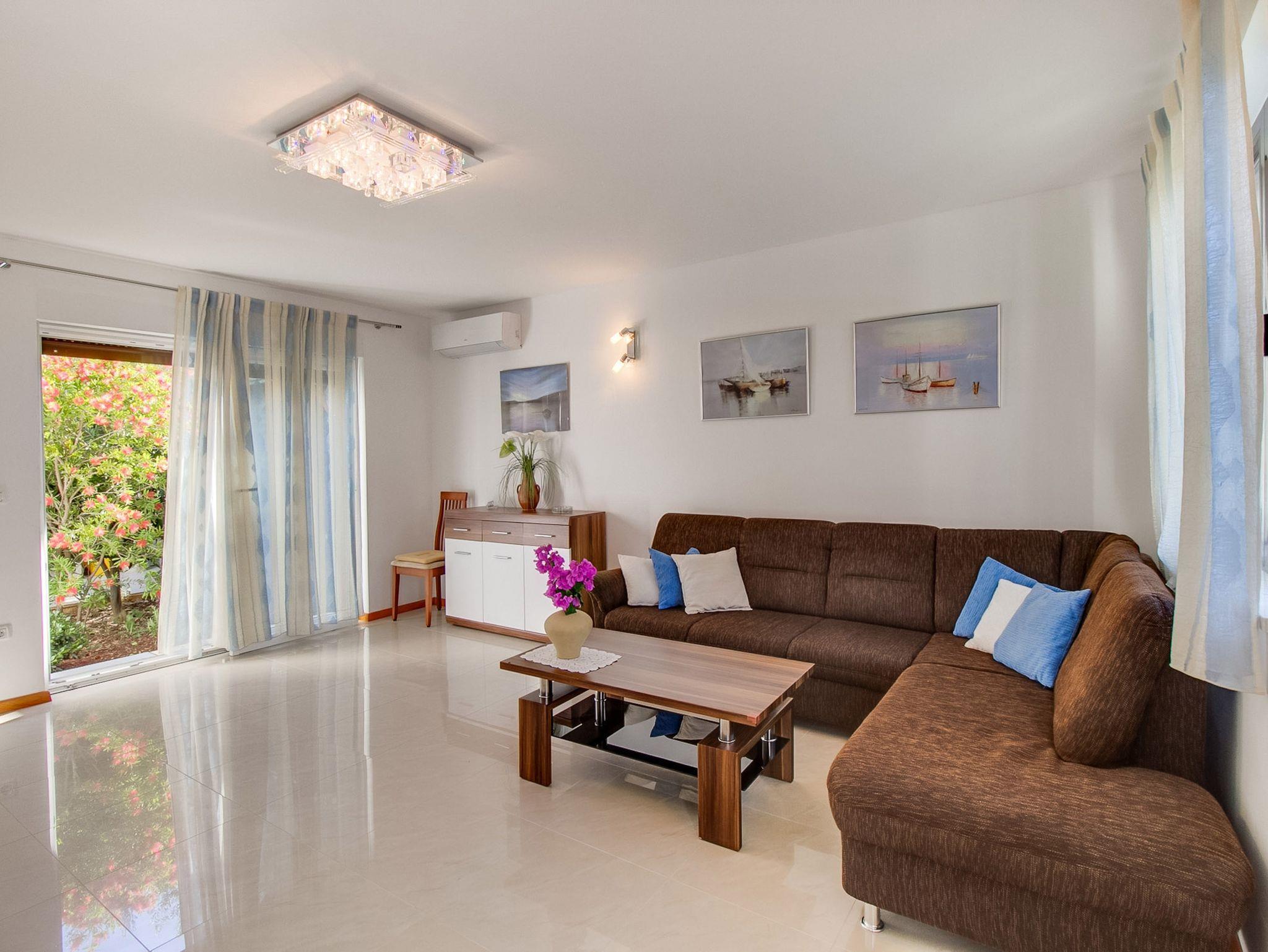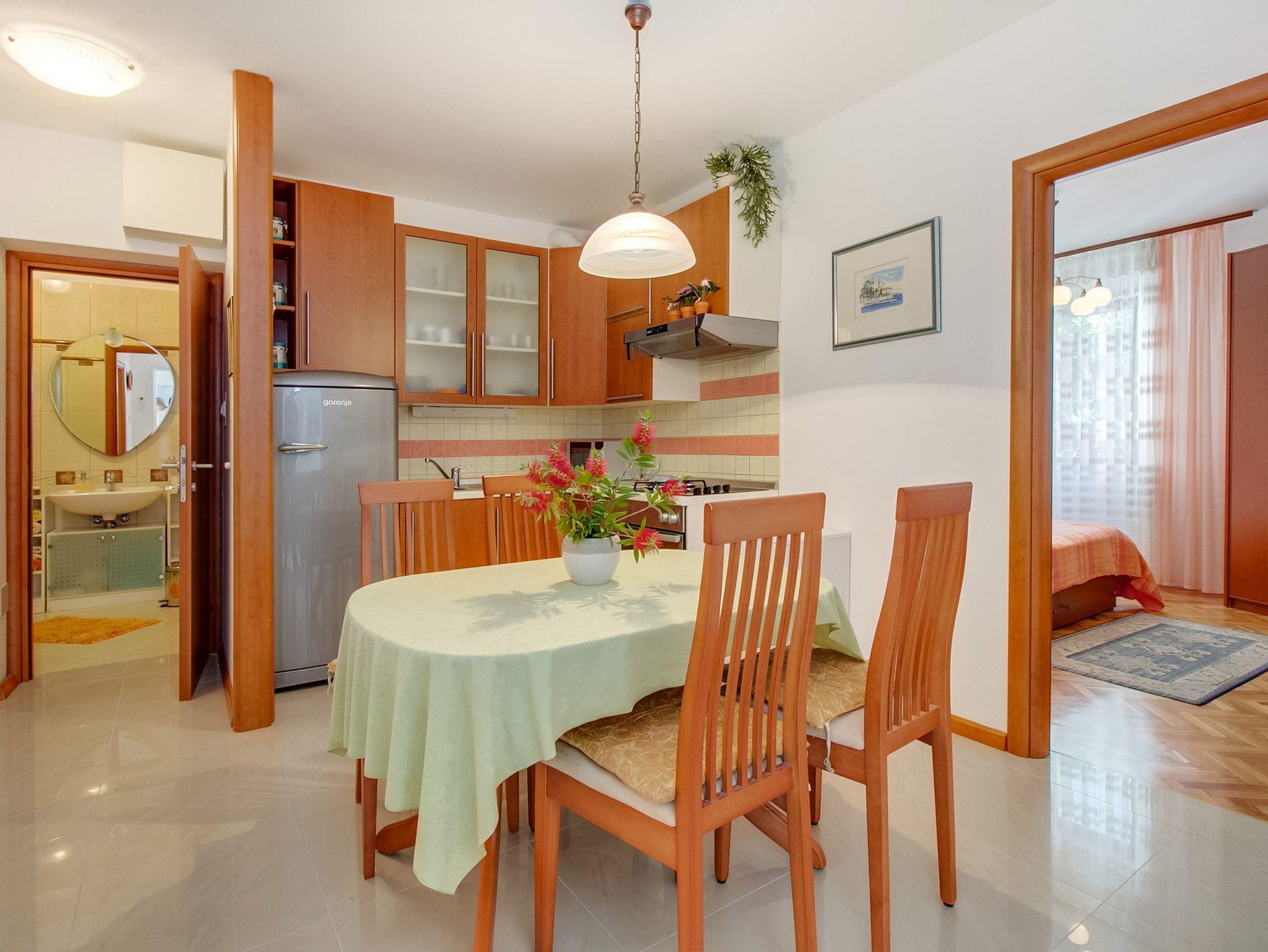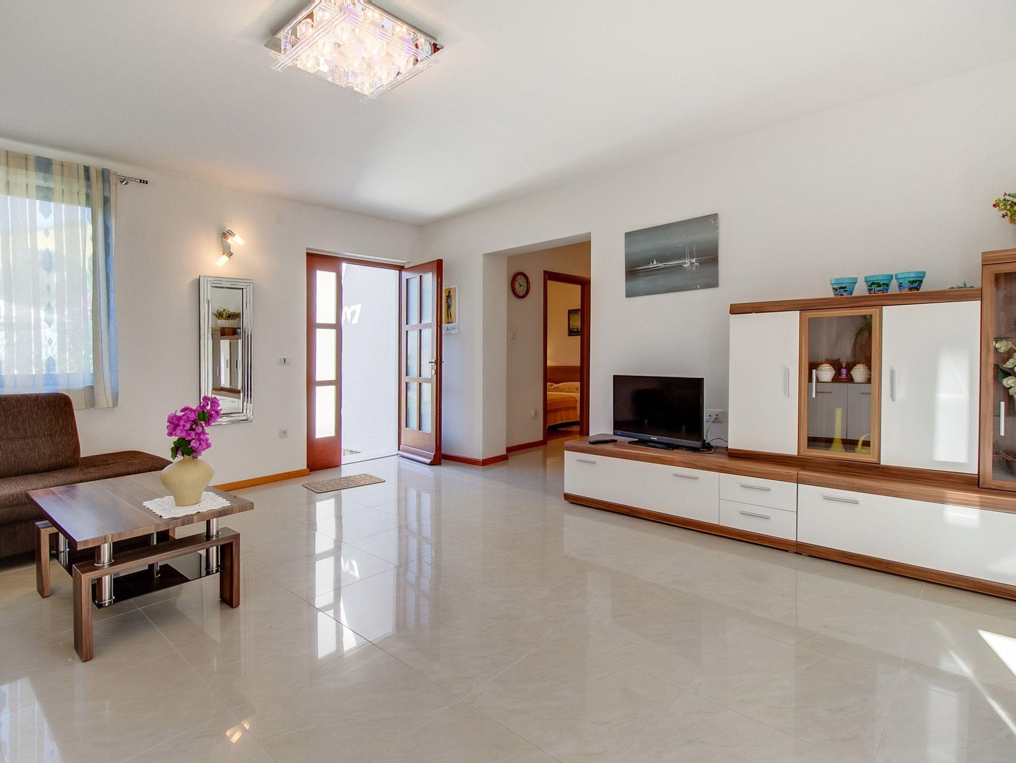 Ferienwohnung bietet Platz für 4 Gäste. Die Betten sind in Schlafzimmern, die es 2 gibt, innerhalb einer Gesamtfläche von 61m2, angeordnet. Die Gäste haben eine eigene Terrasse zur Verfügung, auf der sie in warmen Sommernächten genießen können. Für vollen Genuss und Entspannung gibt es einen privaten Grill für Gäste dieser Unterkunft. IM PREIS INBEGRIFFEN: Kurtaxe, Endreinigung, Klimatisierung, Parkplatz, Internet, Wäschewaschen, Kinderbett, Bügeleisen, Bügelbrett, Föhn. VERBINDLICHE ZUSÄTZLICHE KOSTEN: Aufzahlung für Kurzaufenthalte (prozentualer Zuschlag pro Nächtigungsanzahl: 30% - 1, 20% - 2, 10% - 3). Die Verfügbarkeit zusätzlicher Dienstleistungen in Ihrem reservierten Termin und die Preise derselben (falls nicht aufgeführt) müssen im Voraus überprüft werden. Zusätzliche Dienstleistungen die in der Zahlungsaufforderung nicht aufgeführt sind werden direkt beim Vermieter bezahlt, angenommen der Gast nutzt auch diese. Ermäßigung auf den Grundpreis: Gratistag 14=13 (bei einem Aufenthalt von 14 Tagen oder mehr erhalten Sie einen Gratistag für den Aufenthalt bis 31.12.26).