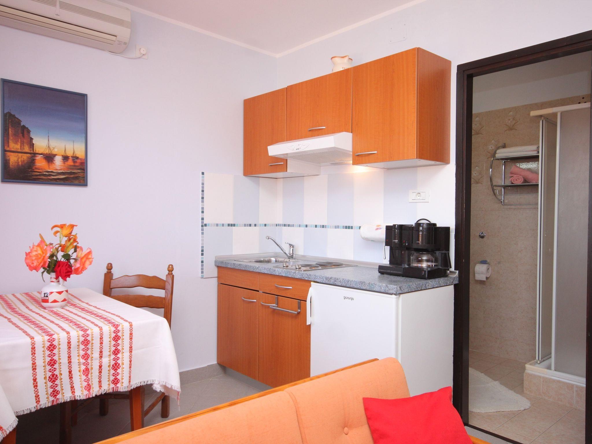 Ferienwohnung bietet Platz für 2 Gäste. Die Betten sind in Schlafzimmern, die es 1 gibt, innerhalb einer Gesamtfläche von 29m2, angeordnet. Die Gäste haben einen eigenen Balkon zur Verfügung, auf der sie in warmen Sommernächten genießen können. Das Apartment bietet Meerblick. Es ist erlaubt, Speisen auf dem Gemeinschafts-Grill vorzubereiten. IM PREIS INBEGRIFFEN: Kurtaxe, Endreinigung, Klimatisierung, Parkplatz, Internet, Kinderbett, Bügeleisen, Bügelbrett, Föhn. VERBINDLICHE ZUSÄTZLICHE KOSTEN: Aufzahlung für Kurzaufenthalte (prozentualer Zuschlag pro Nächtigungsanzahl: 30% - 1, 20% - 2, 10% - 3). UNVERBINDLICHE ZUSÄTZLICHE KOSTEN: Wäschewaschen (5,00 € Waschen). Die Verfügbarkeit zusätzlicher Dienstleistungen in Ihrem reservierten Termin und die Preise derselben (falls nicht aufgeführt) müssen im Voraus überprüft werden. Zusätzliche Dienstleistungen die in der Zahlungsaufforderung nicht aufgeführt sind werden direkt beim Vermieter bezahlt, angenommen der Gast nutzt auch diese.
