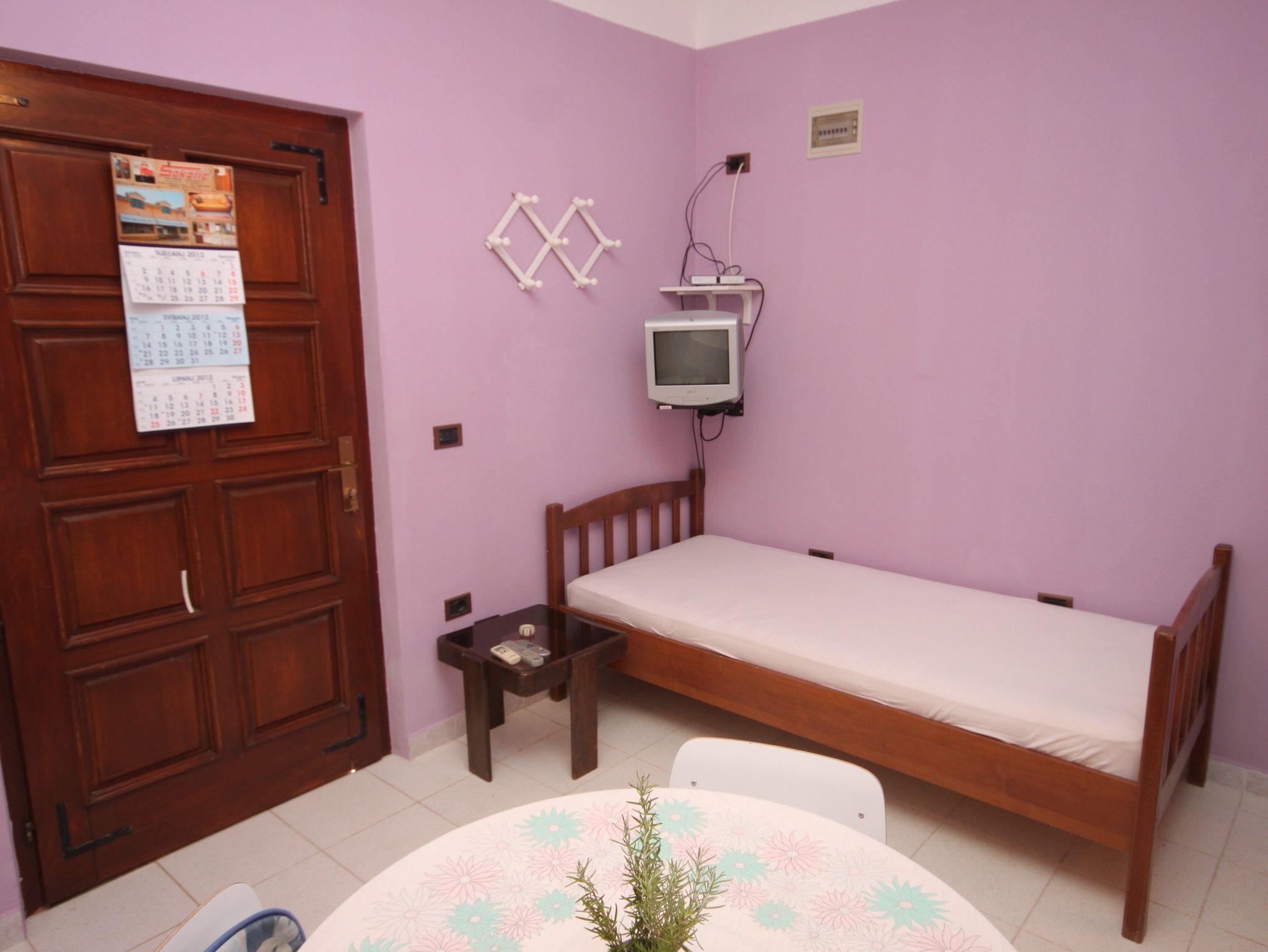 Ferienwohnung bietet Platz für 3 Gäste. Die Betten sind in Schlafzimmern, die es 1 gibt, und in Esszimmer, innerhalb einer Gesamtfläche von 25m2, angeordnet. Die Gäste haben eine eigene Terrasse zur Verfügung, auf der sie in warmen Sommernächten genießen können. Das Apartment bietet Meerblick. Es ist erlaubt, Speisen auf dem Gemeinschafts-Grill vorzubereiten. In der Unterkunftseinheit besteht die Möglichkeit des Mitbringens von Haustieren gegen Aufpreis. IM PREIS INBEGRIFFEN: Kurtaxe, Endreinigung, Klimatisierung, Parkplatz, Internet, Bügeleisen, Bügelbrett. VERBINDLICHE ZUSÄTZLICHE KOSTEN: Aufzahlung für Kurzaufenthalte (prozentualer Zuschlag pro Nächtigungsanzahl: 30% - 1, 20% - 2, 10% - 3). UNVERBINDLICHE ZUSÄTZLICHE KOSTEN: Bootsanlegeplatz (10,00 € pro Nacht), Haustiere (5,00 € pro Nacht). Die Verfügbarkeit zusätzlicher Dienstleistungen in Ihrem reservierten Termin und die Preise derselben (falls nicht aufgeführt) müssen im Voraus überprüft werden. Zusätzliche Dienstleistungen die in der Zahlungsaufforderung nicht aufgeführt sind werden direkt beim Vermieter bezahlt, angenommen der Gast nutzt auch diese.