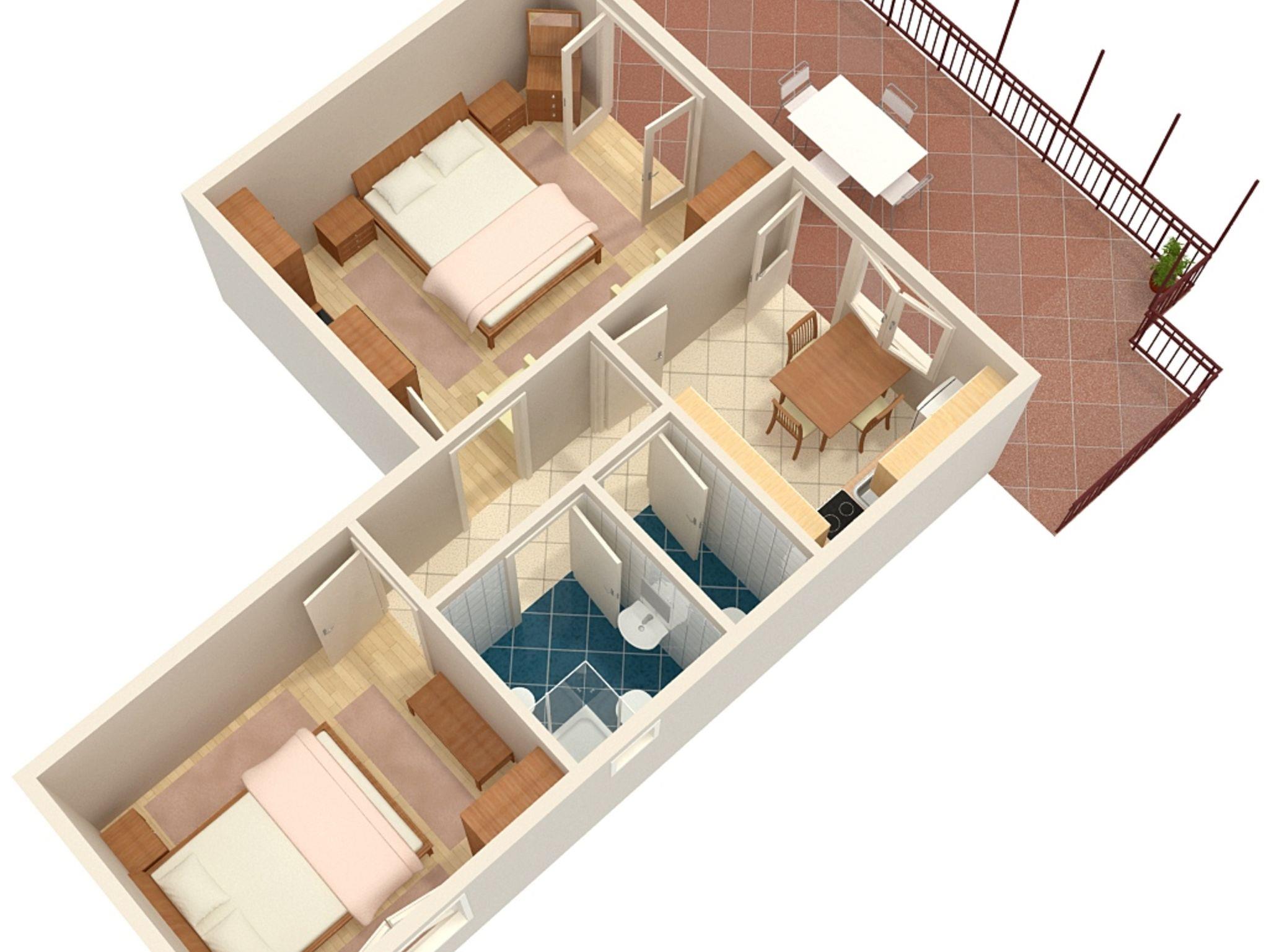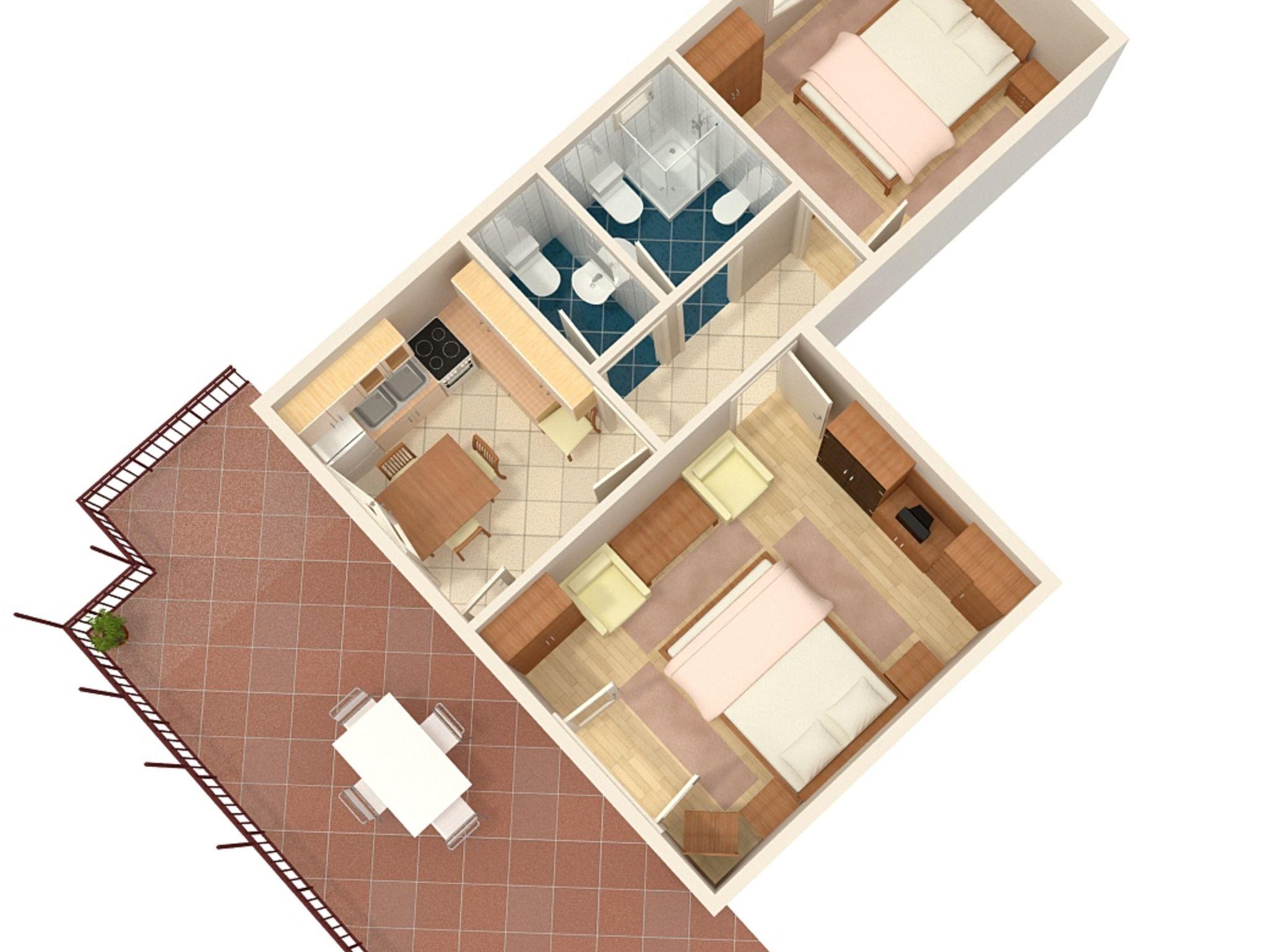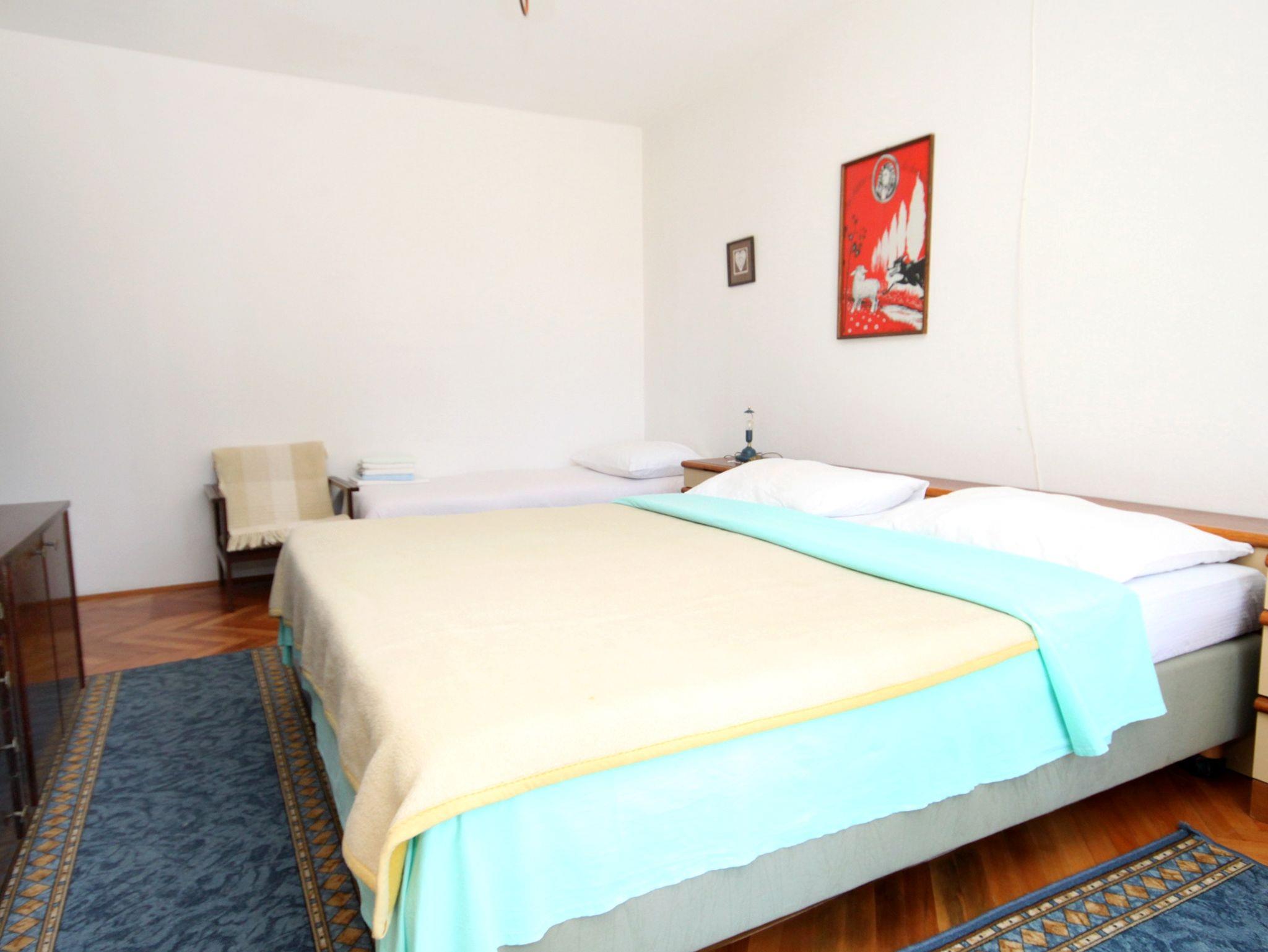 Ferienwohnung bietet Platz für 5 Gäste. Die Betten sind in Schlafzimmern, die es 2 gibt, innerhalb einer Gesamtfläche von 44m2, angeordnet. Die Gäste haben eine eigene Terrasse zur Verfügung, auf der sie in warmen Sommernächten genießen können. Das Apartment bietet Meerblick. Es ist erlaubt, Speisen auf dem Gemeinschafts-Grill vorzubereiten. In der Unterkunftseinheit besteht die Möglichkeit des Mitbringens von Haustieren gegen Aufpreis. IM PREIS INBEGRIFFEN: Kurtaxe, Endreinigung, Internet, Bügeleisen, Bügelbrett, Föhn. VERBINDLICHE ZUSÄTZLICHE KOSTEN: Aufzahlung für Kurzaufenthalte (prozentualer Zuschlag pro Nächtigungsanzahl: 30% - 1, 20% - 2, 10% - 3). UNVERBINDLICHE ZUSÄTZLICHE KOSTEN: Klimatisierung (10,00 € pro Nacht), Bootsanlegeplatz (12,00 € pro Nacht), Haustiere (10,00 € pro Nacht), Zusatzbett (8,00 € pro Nacht). Die Verfügbarkeit zusätzlicher Dienstleistungen in Ihrem reservierten Termin und die Preise derselben (falls nicht aufgeführt) müssen im Voraus überprüft werden. Zusätzliche Dienstleistungen die in der Zahlungsaufforderung nicht aufgeführt sind werden direkt beim Vermieter bezahlt, angenommen der Gast nutzt auch diese.