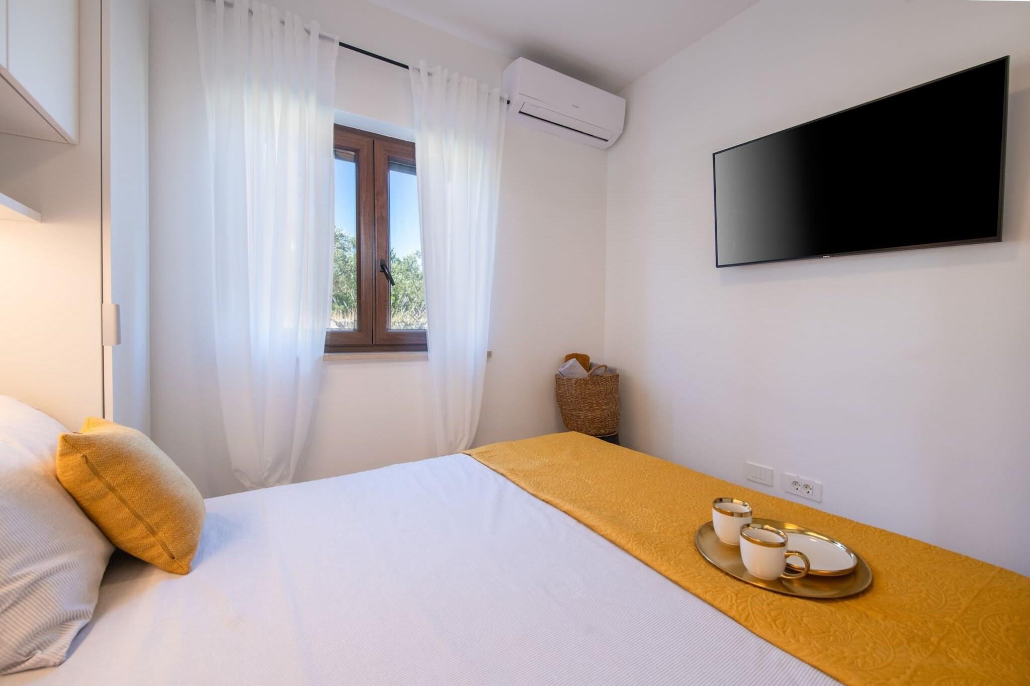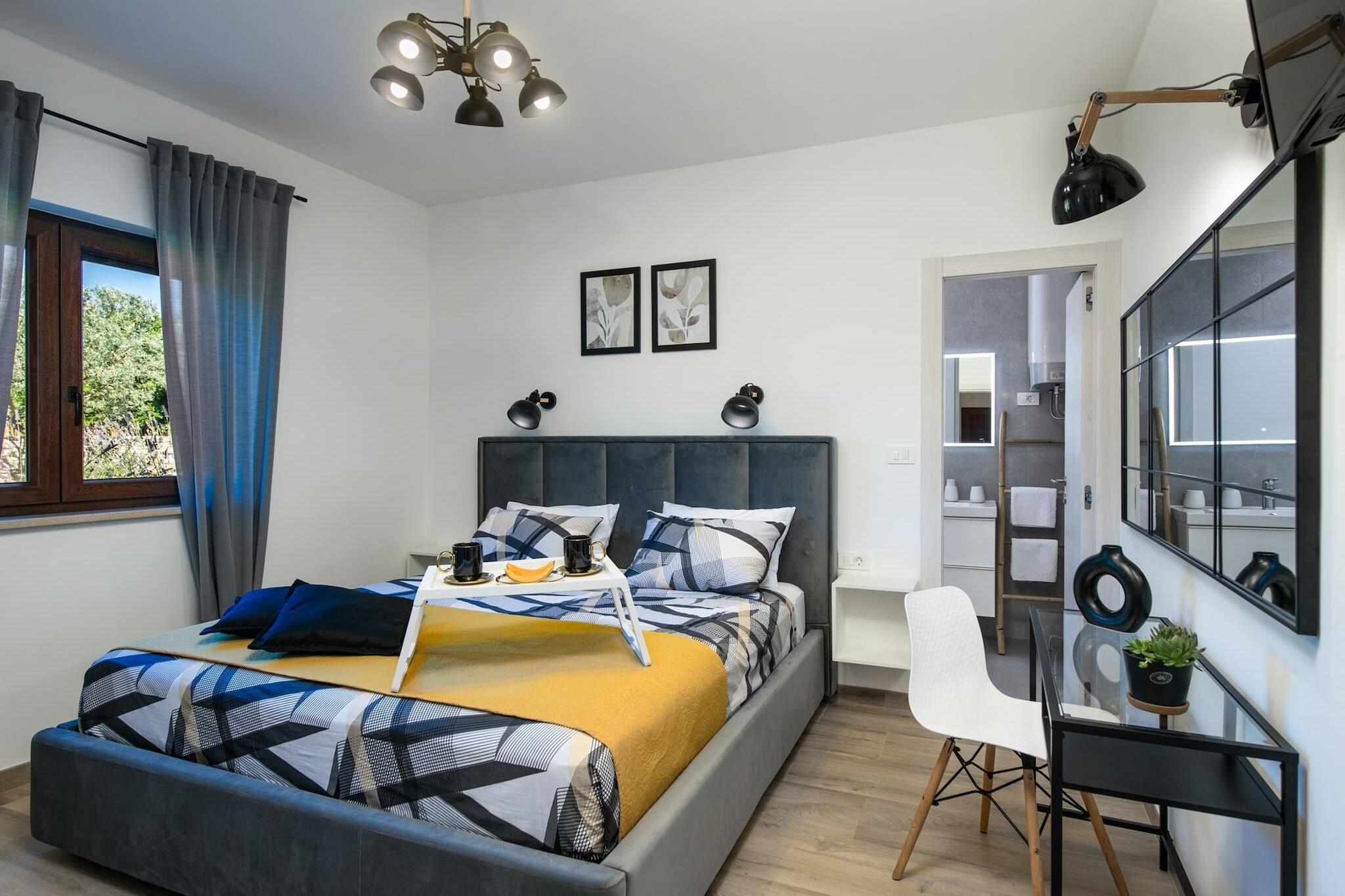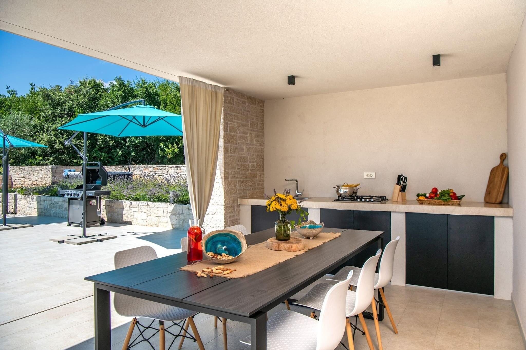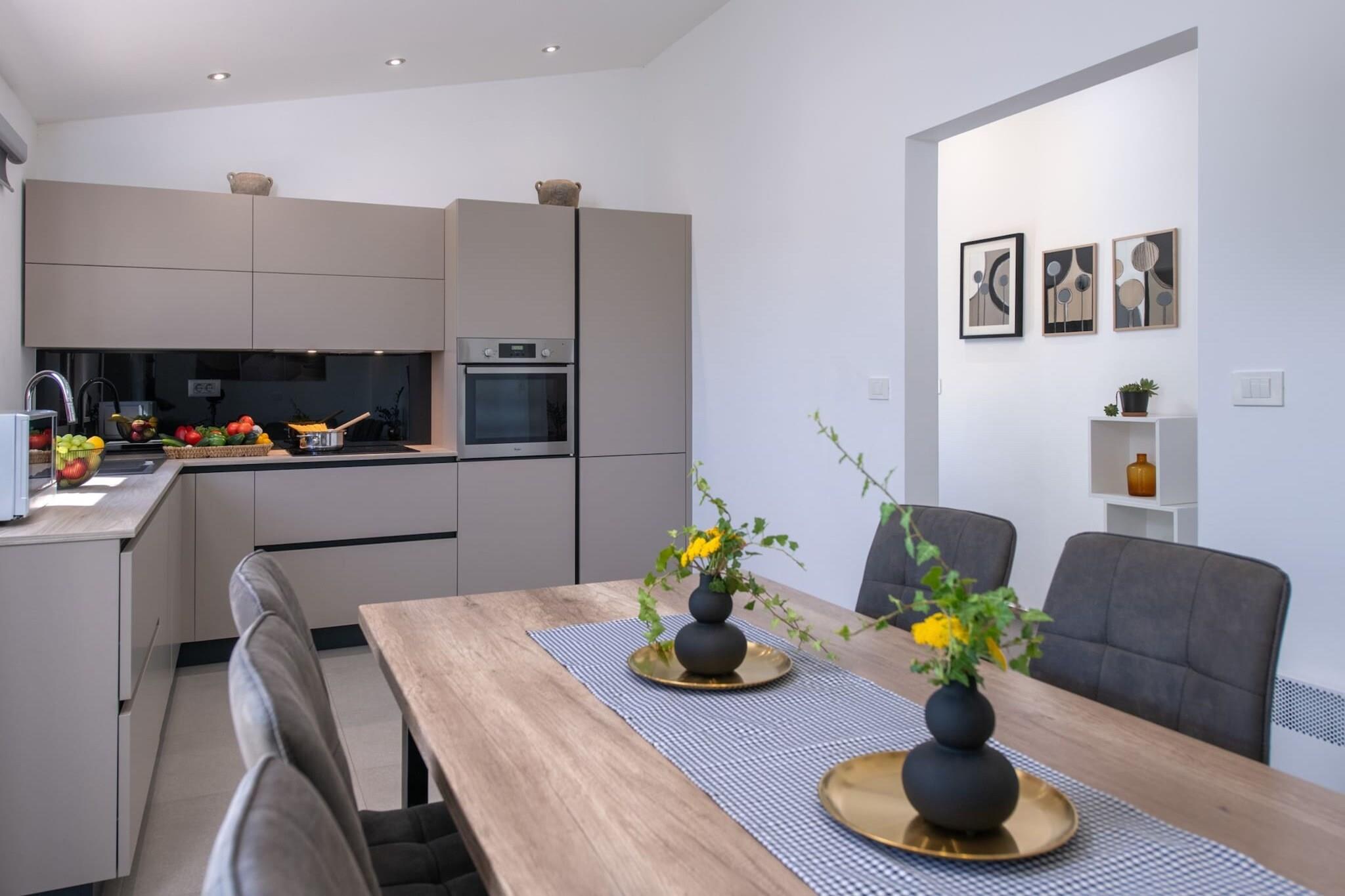The villa i Mali Vareški har 2 soveværelse(r) og kapacitet til 5 person(er) (max 4 voksne). Bolig på 70 m² gode møbler og køkken der har alt udstyr, med udsigt til have og swimming pool. Er beliggende 1 km fra supermarkedet, 1 km fra busstationen, 3 km from the restaurant, 3 km fra stenstranden, 12 km fra lufthavnen og er beliggende i et rolig område og omgivet af skov. Tilbyder have, terrassemøbler, indhegnet grund, terrasse, vaskemaskine, grill, strygejern, pengeskab, internet (wifi), hårtørrer, børneområde, jacuzzi, aircondition i hele ferielejligheden, swimming pool privat, utildækket parkering til den samme bygning, 2 Fjernsyn, satellit (Sprog: Engelsk). The amerikanske køkken, på induktion, med service og køleskab, mikroovn, ovn, fryser, opvaskemaskine, tallerkener/bestik, køkkenredskaber, kaffemaskine, brødrister, kedel, komfur, tallerkener og skåle.