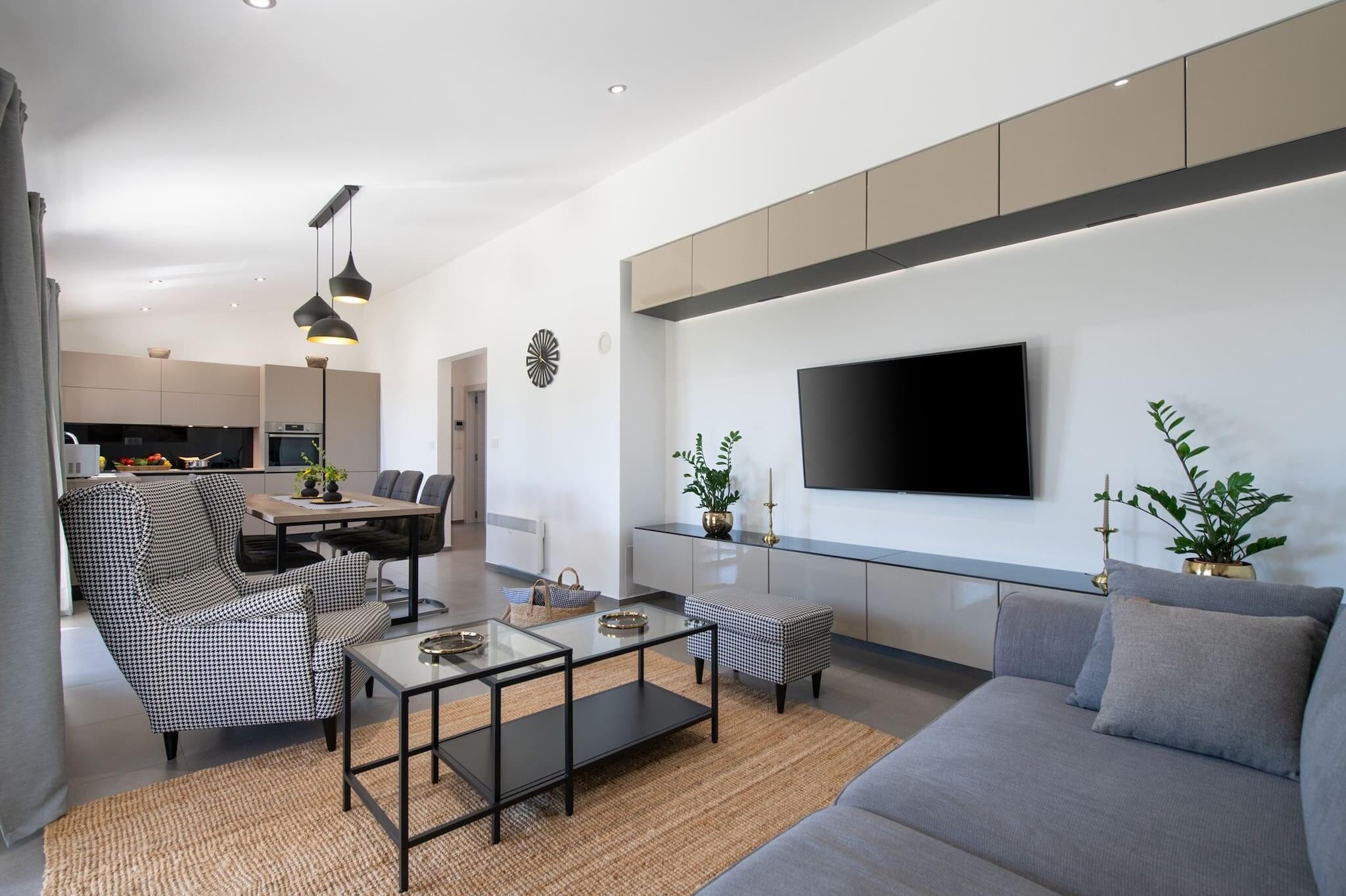 Stueetage: (åbent køkken(kogeplade, elkedel, brødrister, kaffemaskine, ovn, mikrobølgeovn, opvaskemaskine , køleskab, fryser, ), stue / spisestue(dobbeltsovesofa, Fjernsyn, spisebord, sofahjørne), soveværelse(dobbeltseng), soveværelse(king size-seng), badeværelse(bruser), badeværelse(bruser), Internetadgang) Havemøbler, Fjernsyn, hottub, vaskemaskine, patio, klimaanlæg, terrasse, have, have, solstole, grill, parkering, swimmingpool(privat), dart, barnestol, strygebræt, strygejern, føntørrer, crib(free),