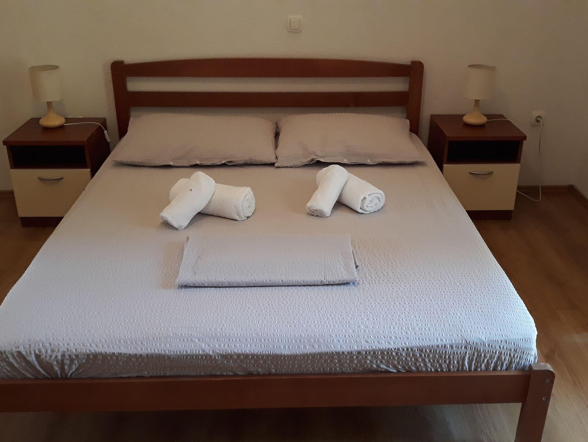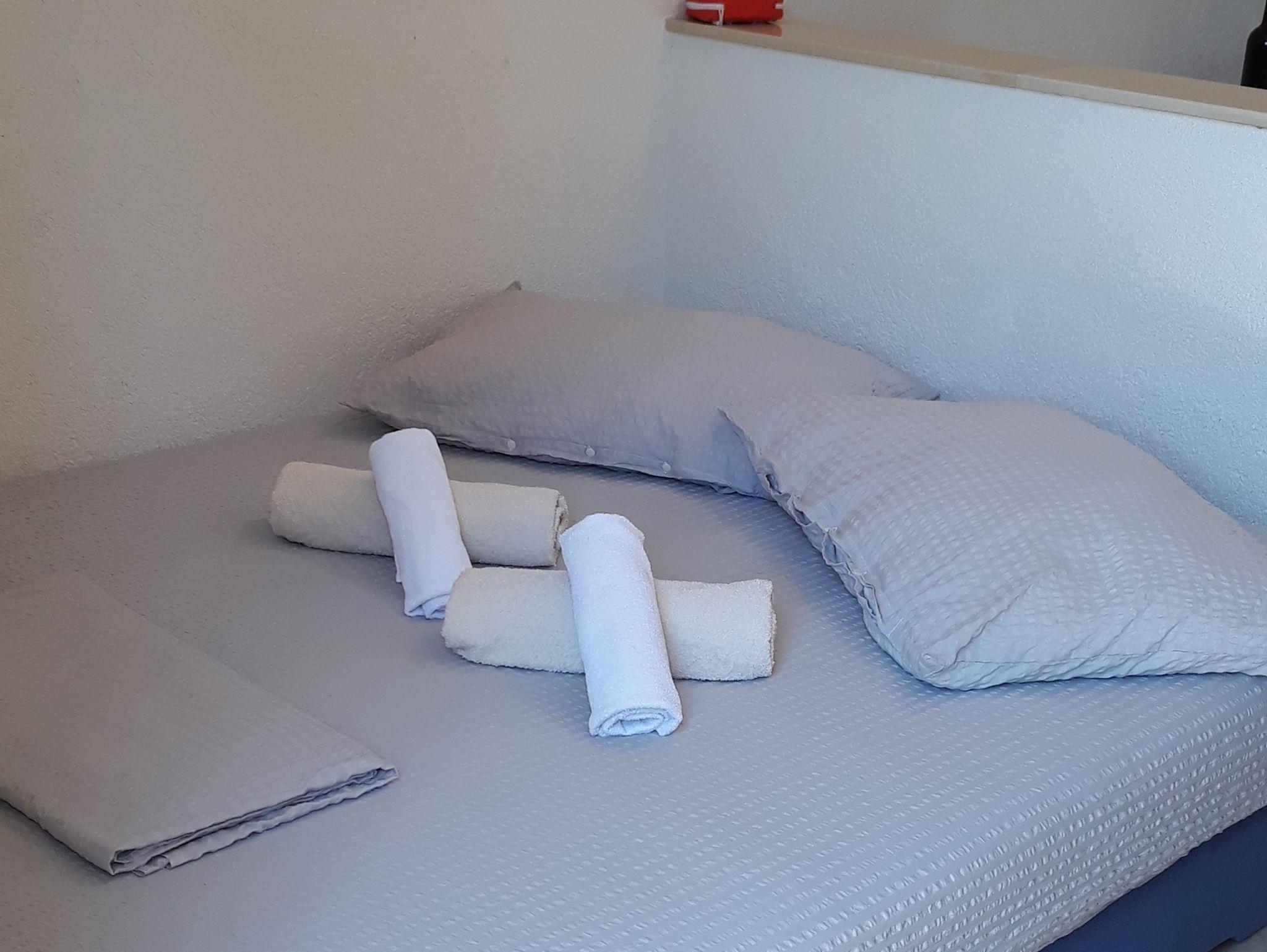 Ferienwohnung bietet Platz für 5 Gäste. Die Betten sind in Schlafzimmern, die es 1 gibt, und in Wohnzimmer, innerhalb einer Gesamtfläche von 35m2, angeordnet. Die Gäste haben eine eigene Terrasse zur Verfügung, auf der sie in warmen Sommernächten genießen können. Es ist erlaubt, Speisen auf dem Gemeinschafts-Grill vorzubereiten. IM PREIS INBEGRIFFEN: Kurtaxe, Endreinigung, Klimatisierung, Parkplatz, Internet, Bootsanlegeplatz. VERBINDLICHE ZUSÄTZLICHE KOSTEN: Aufzahlung für Kurzaufenthalte (prozentualer Zuschlag pro Nächtigungsanzahl: 30% - 1, 20% - 2, 10% - 3). Die Verfügbarkeit zusätzlicher Dienstleistungen in Ihrem reservierten Termin und die Preise derselben (falls nicht aufgeführt) müssen im Voraus überprüft werden. Zusätzliche Dienstleistungen die in der Zahlungsaufforderung nicht aufgeführt sind werden direkt beim Vermieter bezahlt, angenommen der Gast nutzt auch diese.